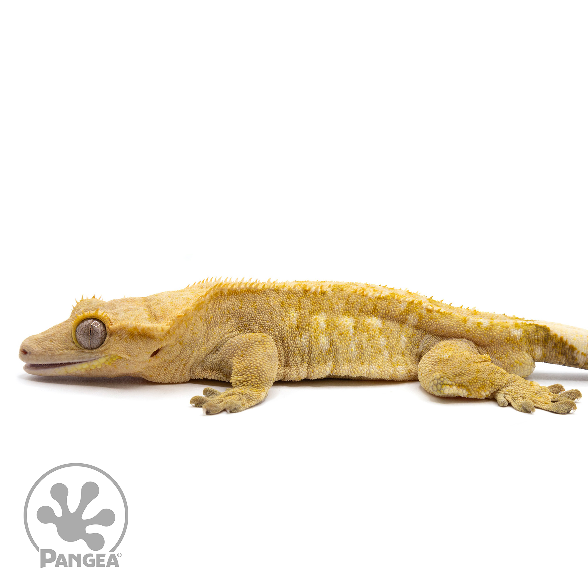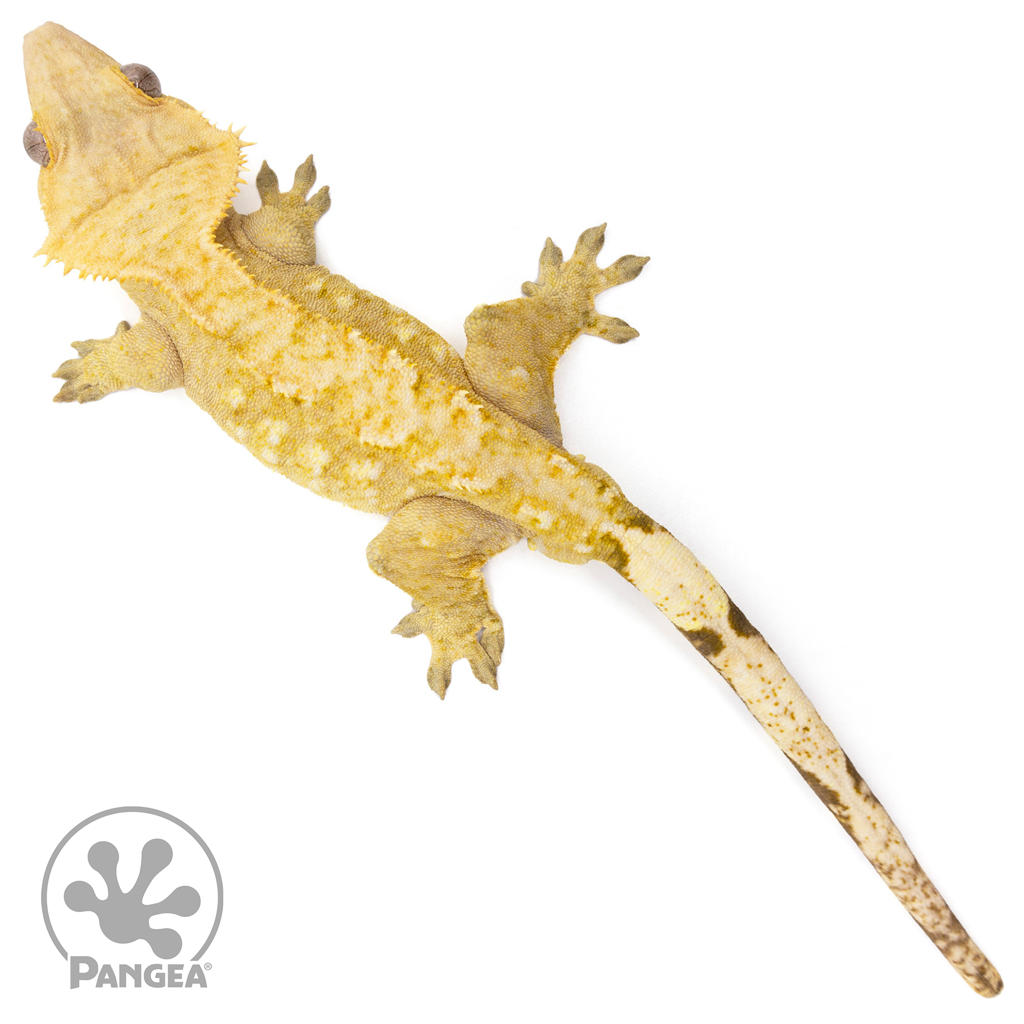 This Male Brindle Crested Gecko has a unique, striking appearance with his brindle pattern, white detailing, and yellow base. Make your enclosure stand out with this one-of-a-kind reptile.