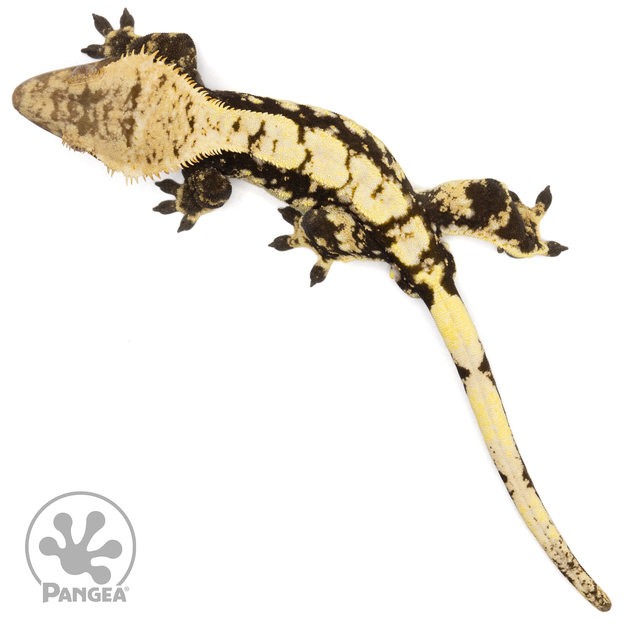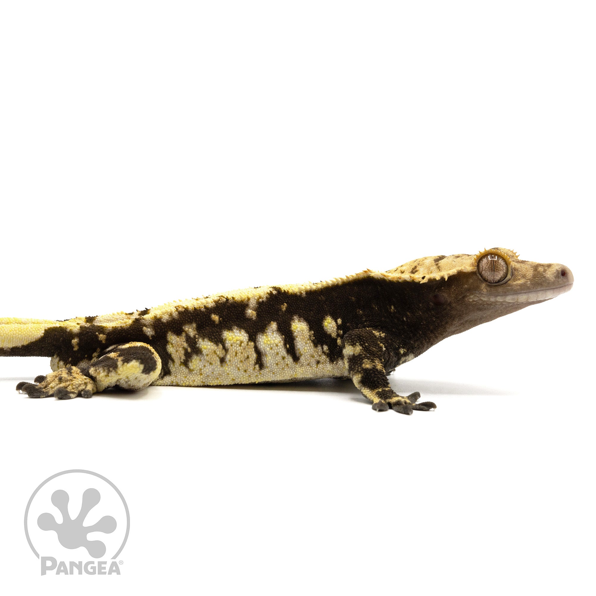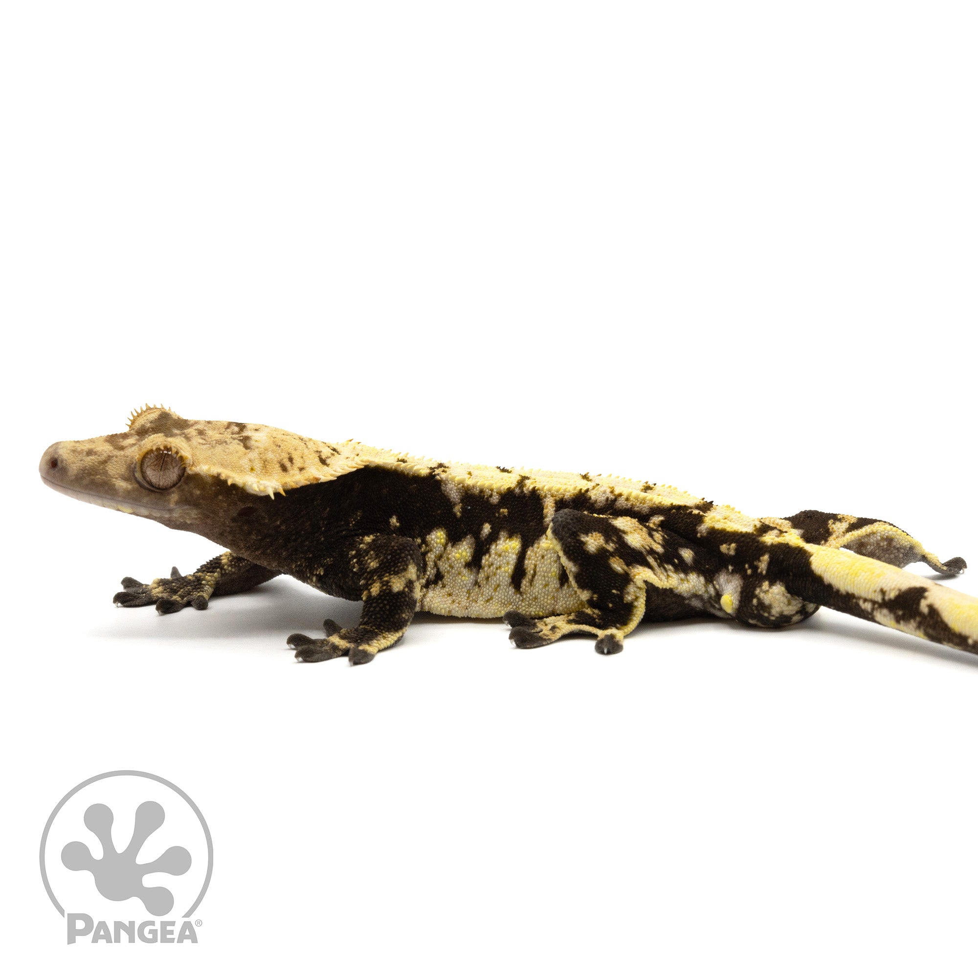 The Male Harlequin Crested Gecko Cr-1607 boasts a high contrasted creamy harlequin pattern set against a deep black base. With his readiness to breed, he makes a great choice for hobbyists looking to expand their collection.