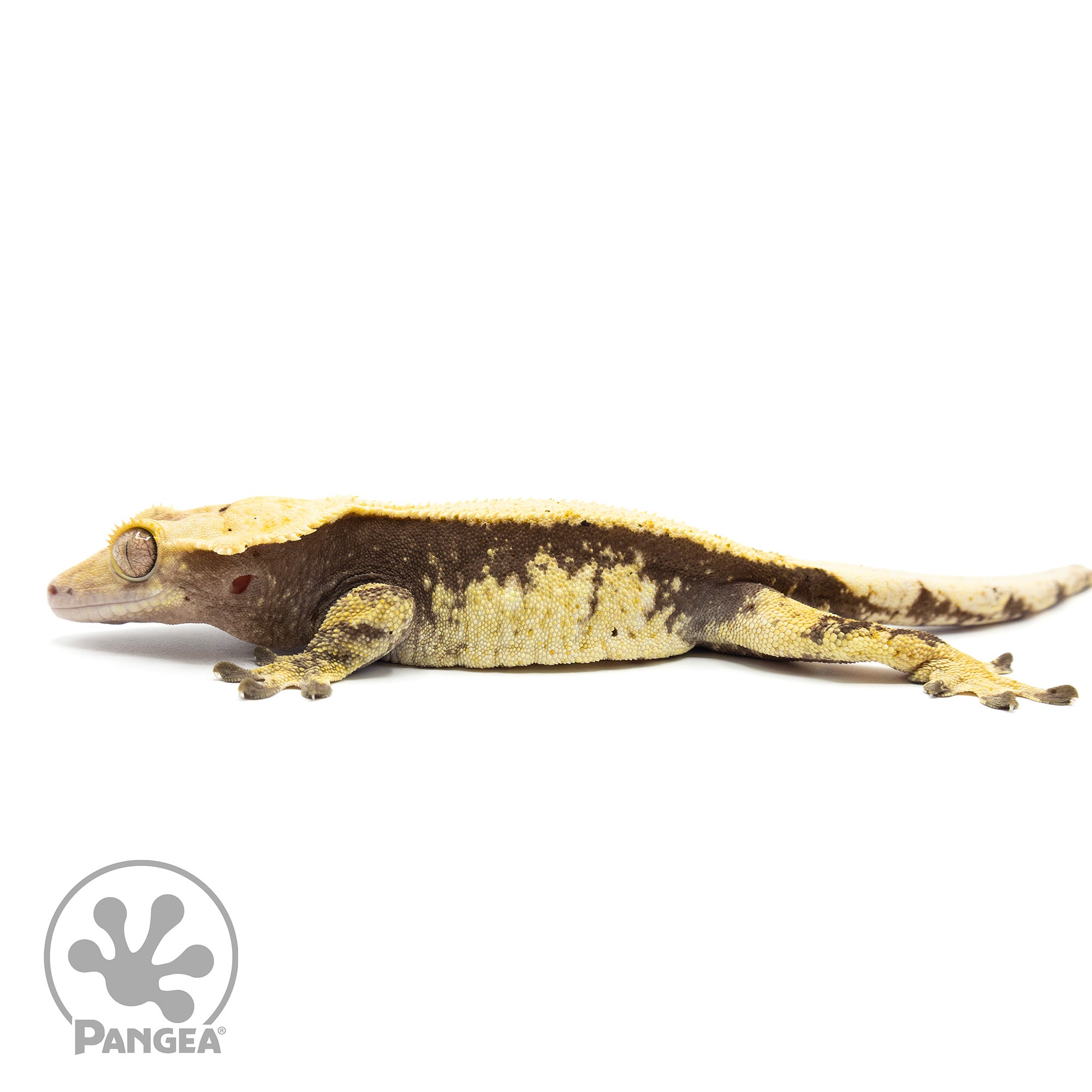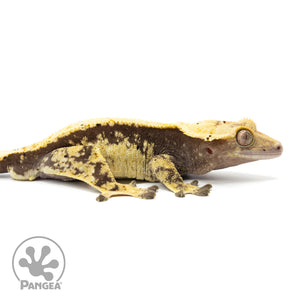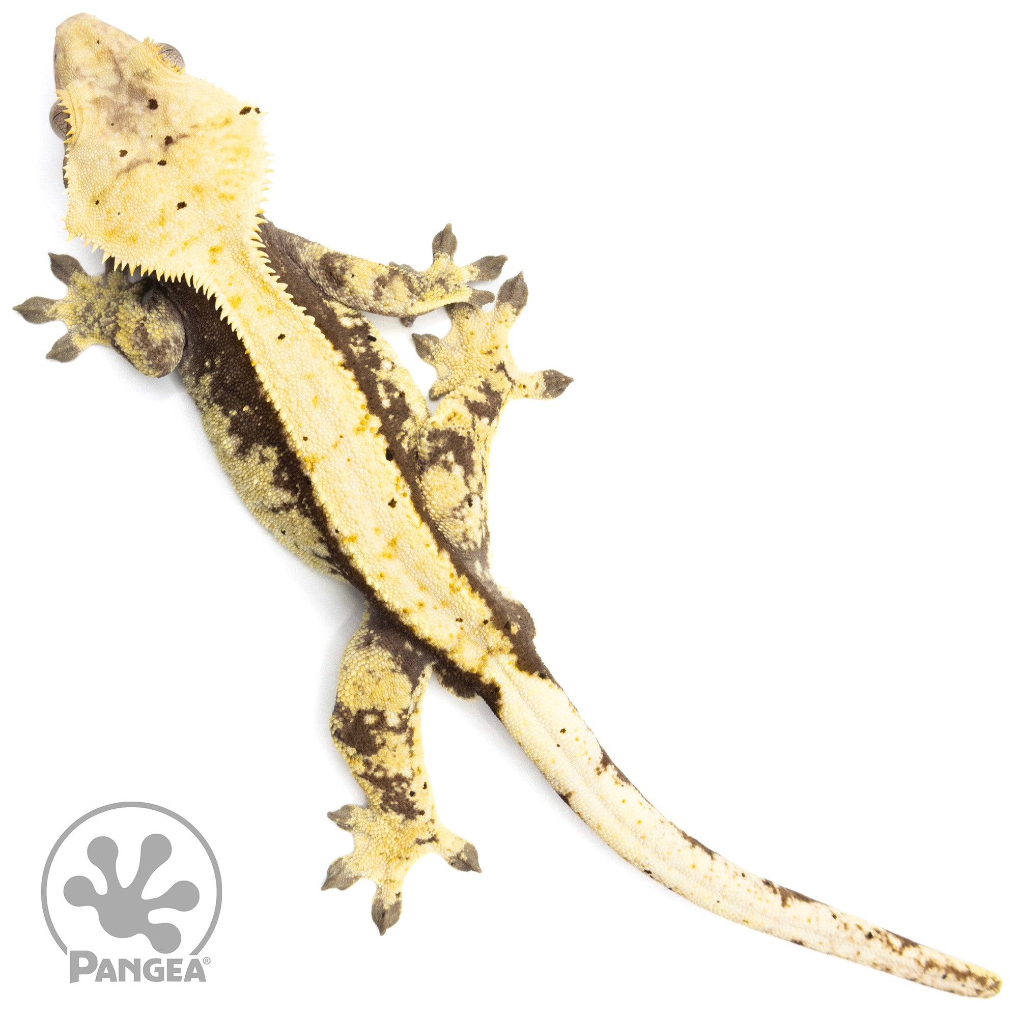 Introducing the Male Solid Back Crested Gecko CR-1586, featuring an eye-catching creamy yellow white wall pattern with a solid back dorsal, dalmatian markings, and dark base. This gecko is perfect for any collection and is ready to breed!
