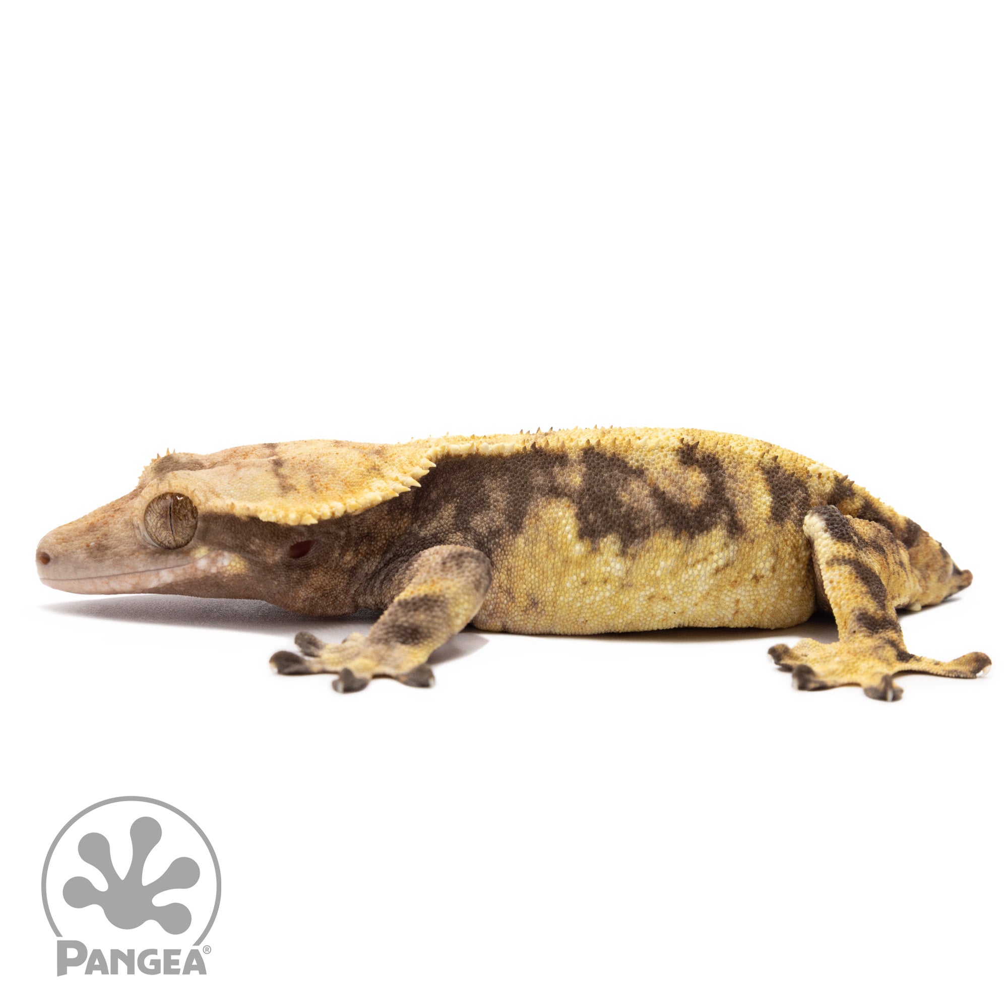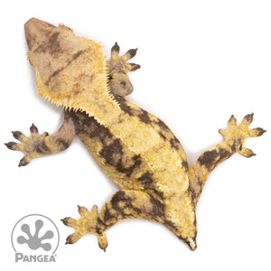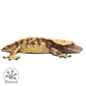 The Female Extreme Harlequin Crested Gecko Cr-2348 showcases a stunning combination of a dark base and vibrant yellow extreme pattern. This gecko is ready to breed, making her a must-have for reptile enthusiasts and breeders.