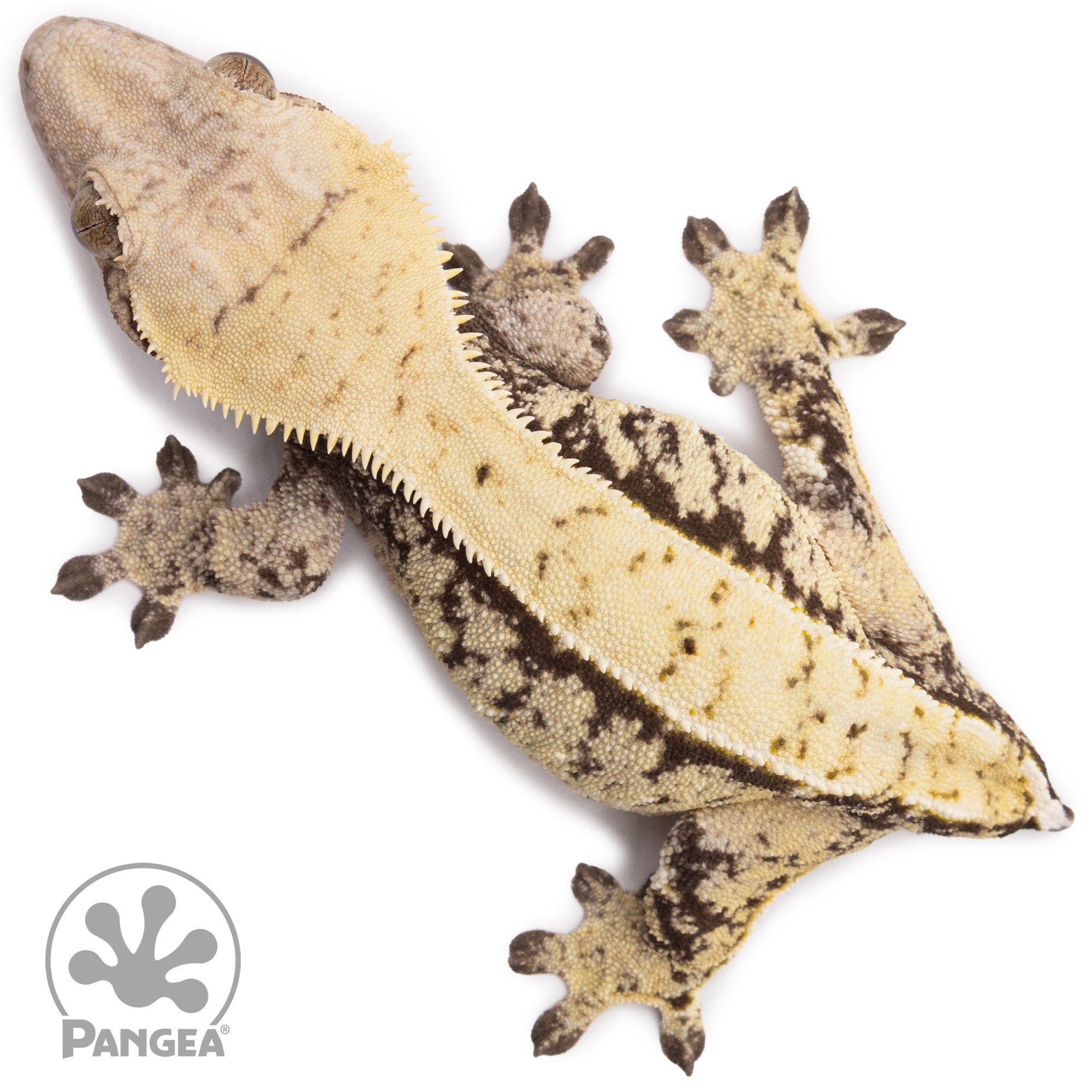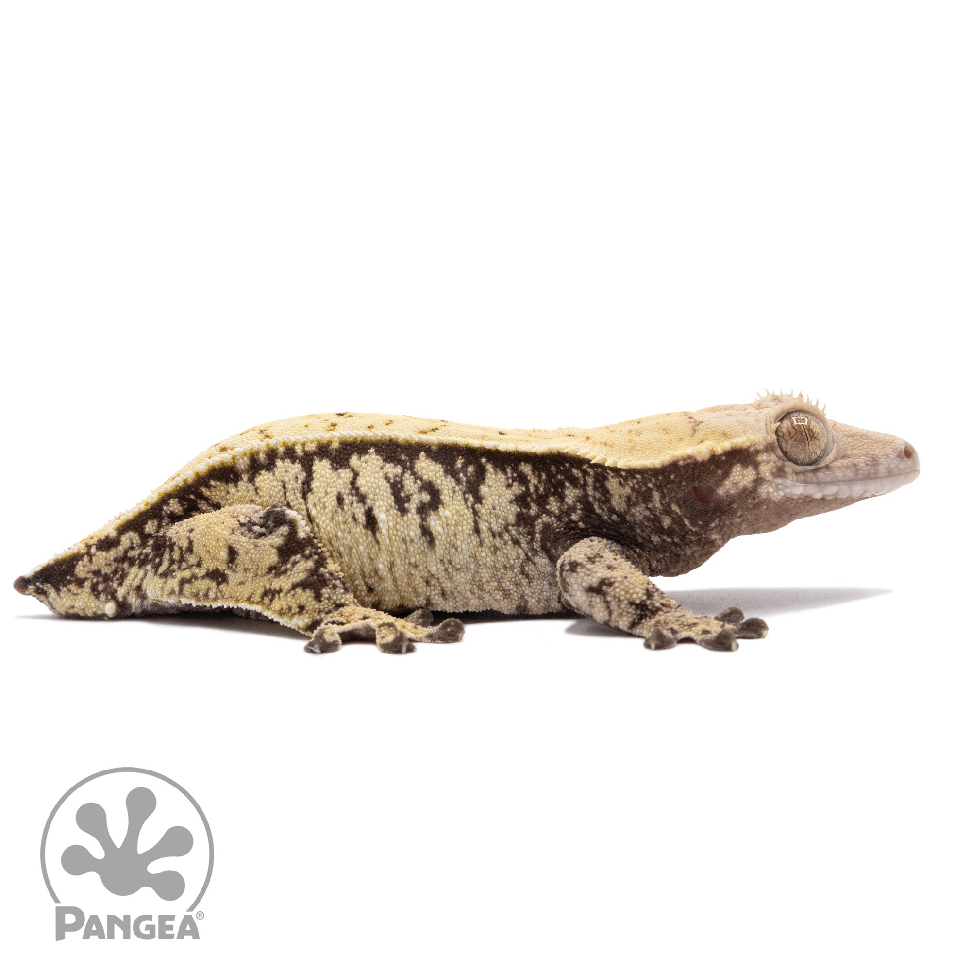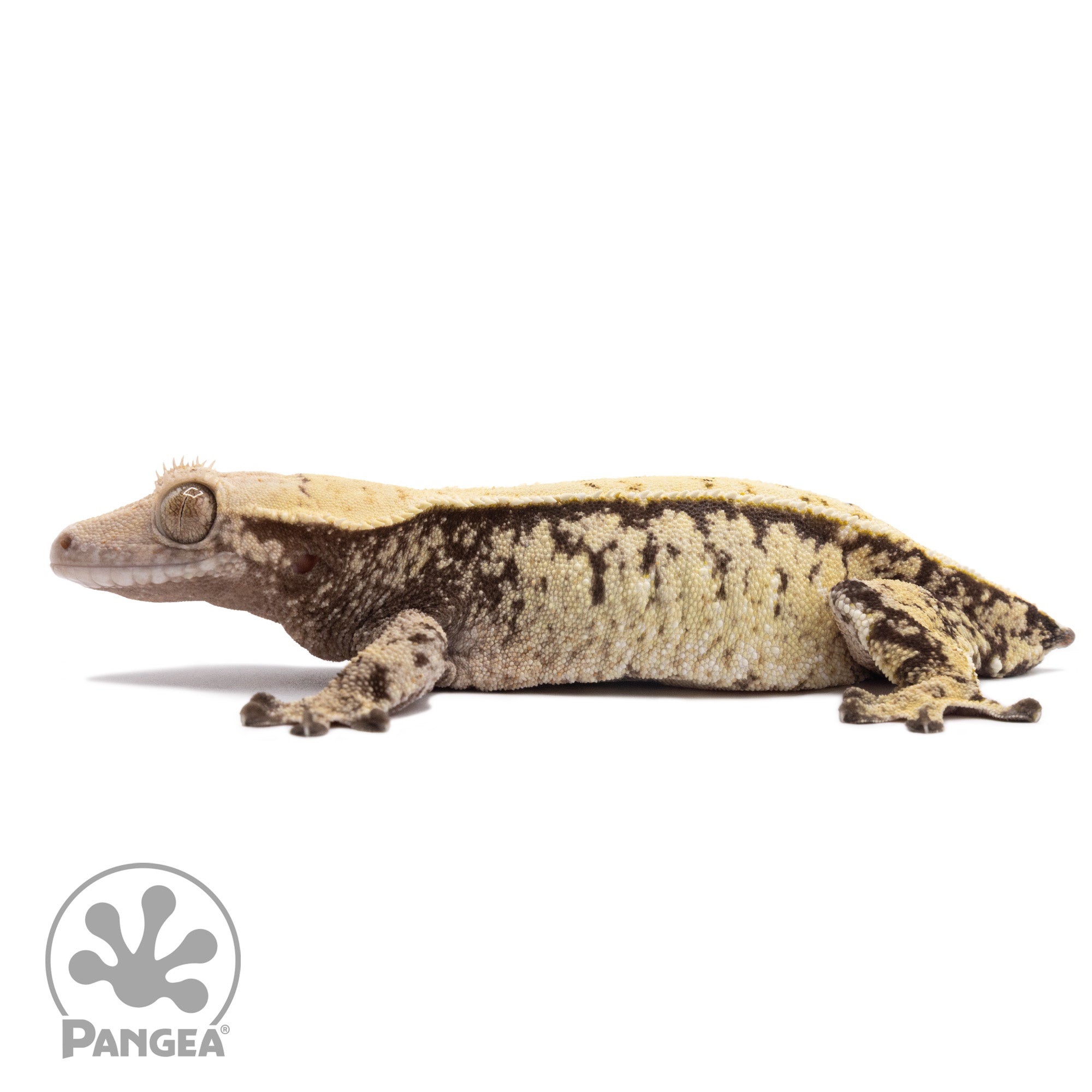 This Female Extreme Reverse Pinstripe Crested Gecko Cr-1902 features an Extreme Harlequin pattern with a Reverse Pinstripe and Cream detailing along a dark base. This gecko is ready to breed and ready to be a stunning and desirable addition to your collection.