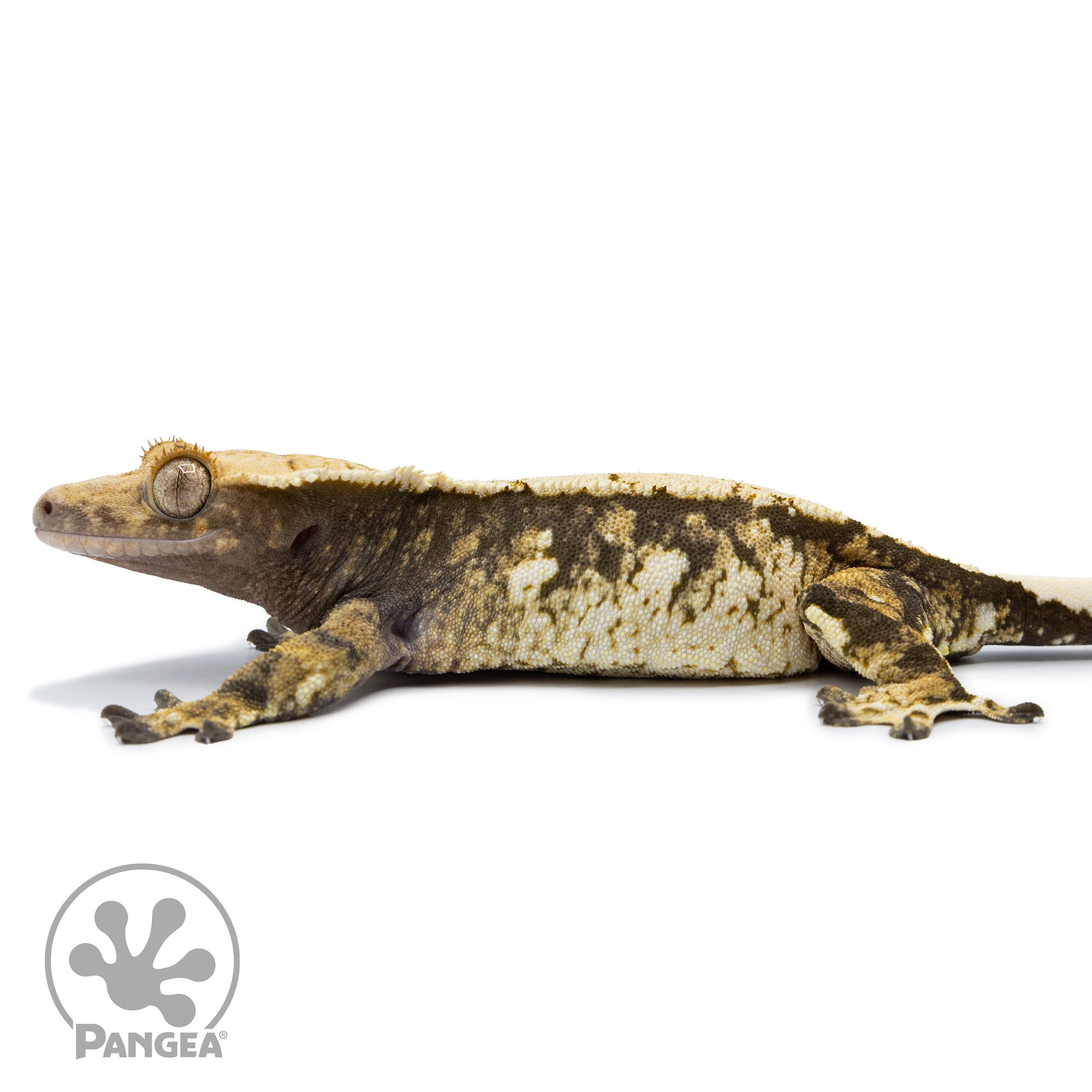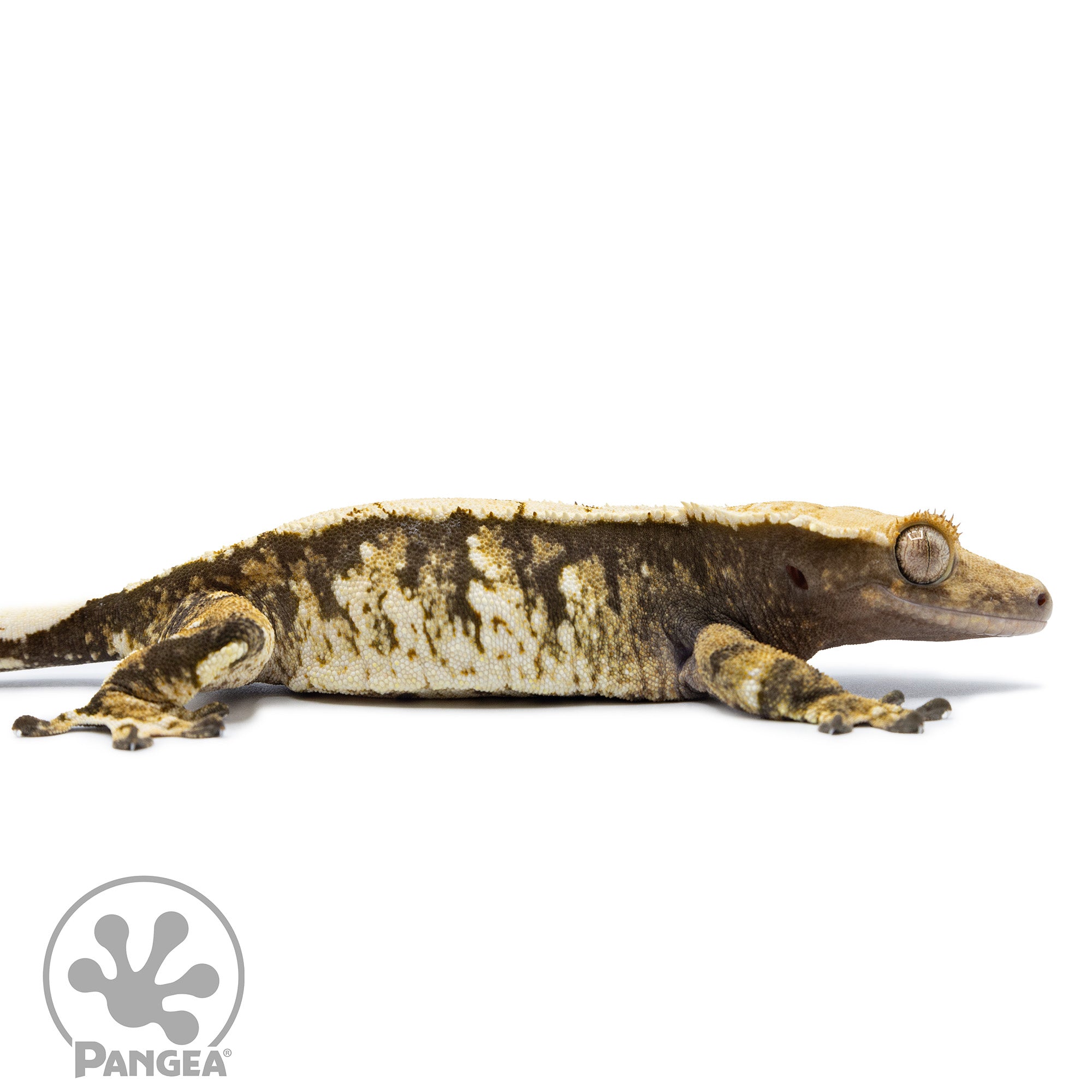 The Female Tricolor Extreme Harlequin Crested Gecko CR-2513 showcases an extreme harlequin pattern with a dark base. Ready to breed, this gecko is a prime choice for reptile enthusiasts looking to add a unique and colorful addition to their collection.