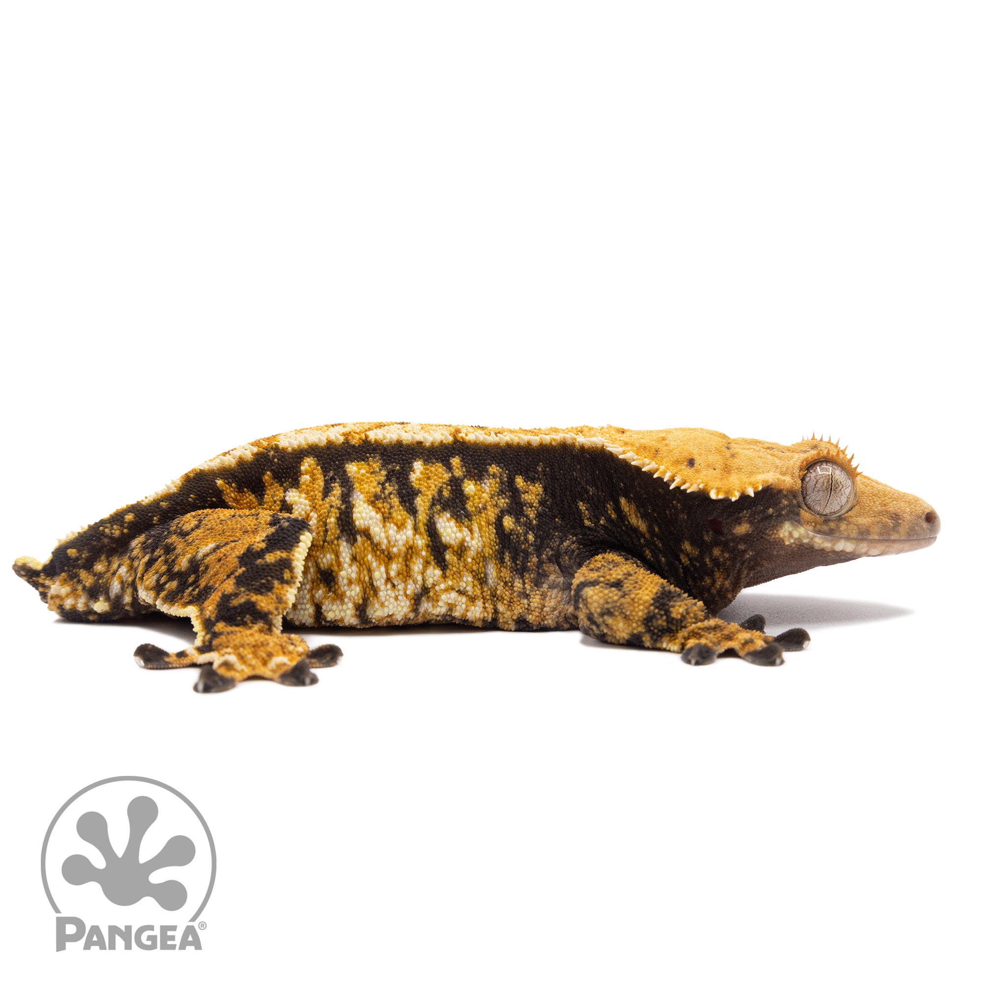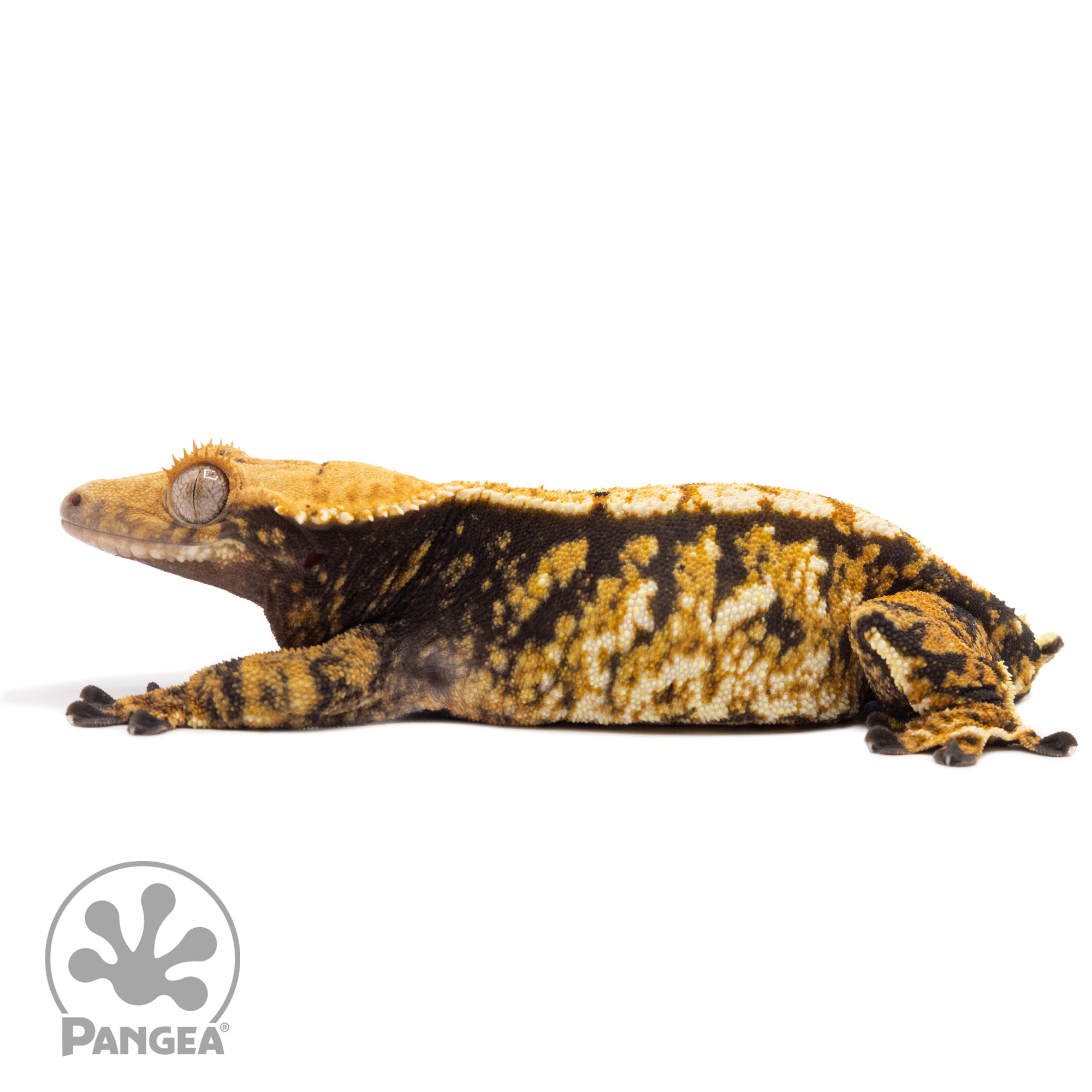 This Female Tricolor Extreme Harlequin Crested Gecko Cr-1528 is a stunning sight to behold with her extreme tricolor palette—yellow, cream, and a dark base to tie it all together! Plus she is breeder-ready, a perfect tricolor for any collection!