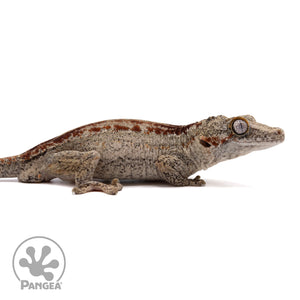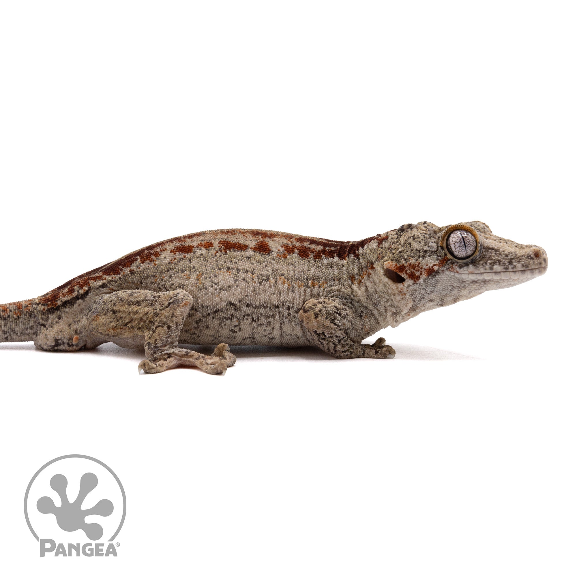 The Male Red Stripe Gargoyle Gecko Ga-0280 boasts a unique pattern with red stripes and a gray base, accented with an orange spectacles. This striking gecko is not only visually appealing, but also ready to breed, making him a valuable addition to any breeding program.