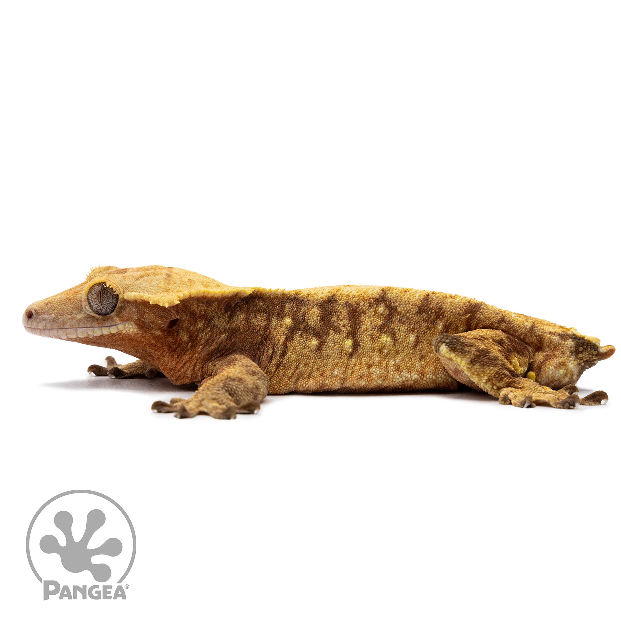 This male Harlequin Crested Gecko (Cr-2655) boasts a vibrant, extreme orange pattern with a deep red base. He also features unique yellow portholes that add even more character to his already striking appearance. With his readiness to breed, this gecko is the perfect addition to any breeding program.