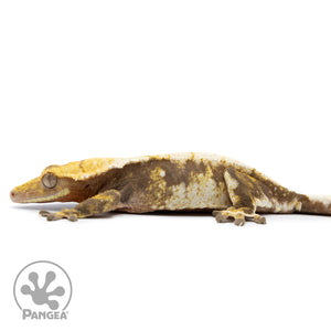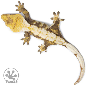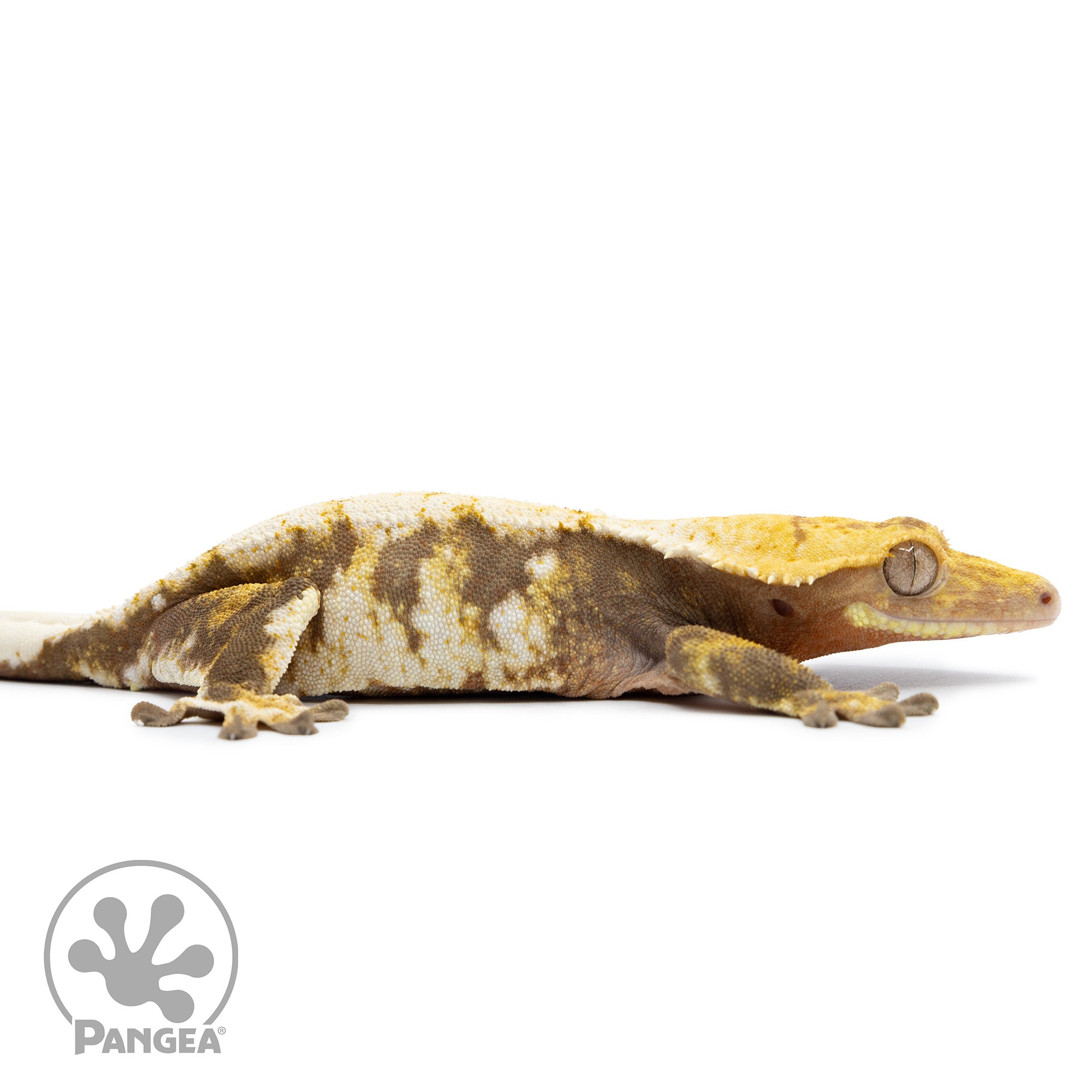 This Female Tricolor Extreme Harlequin Crested Gecko Cr-2534 features a stunning combination of yellow and white patterns on a dark base. Ready to breed, this unique gecko is the perfect addition to any collection.