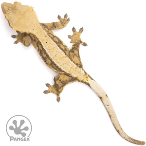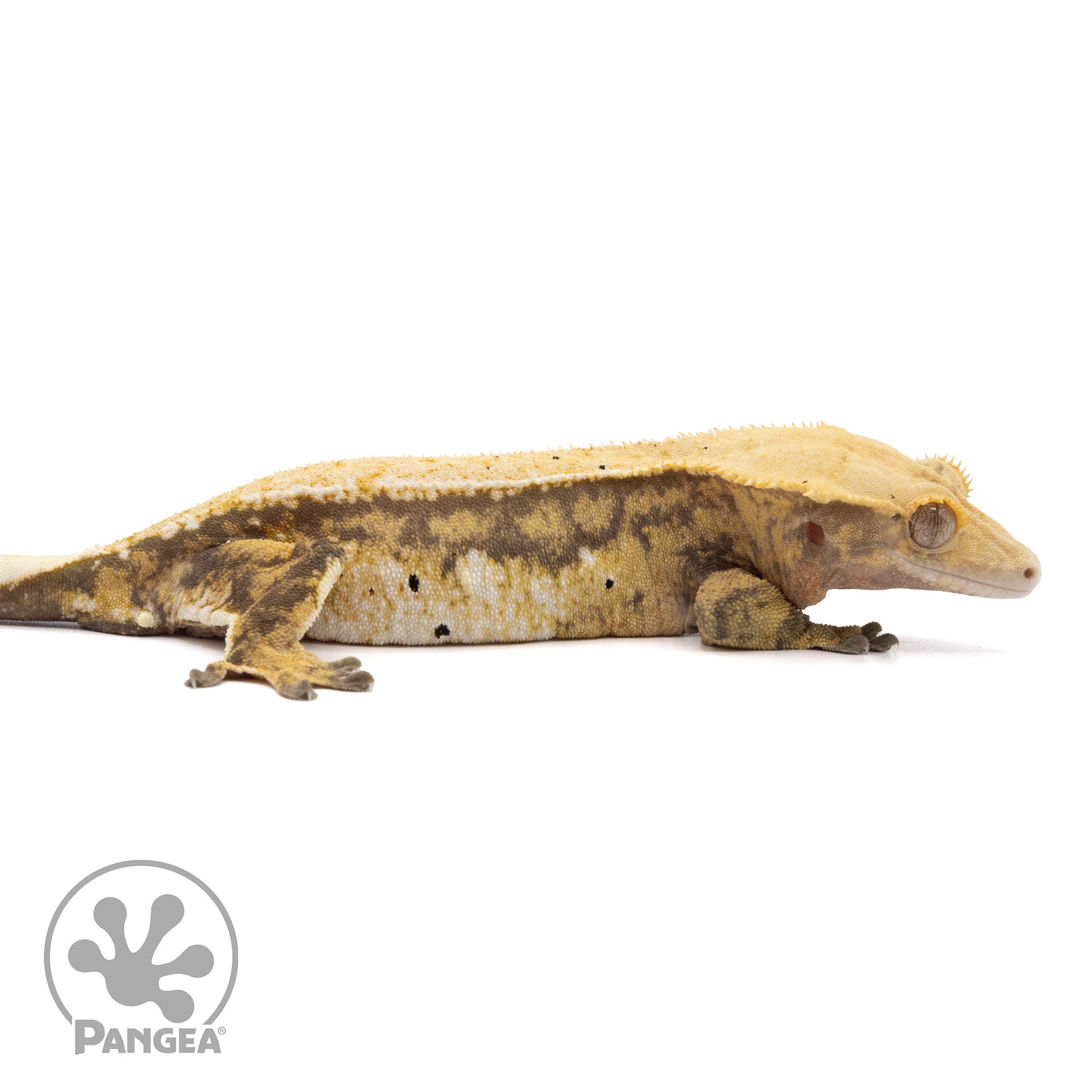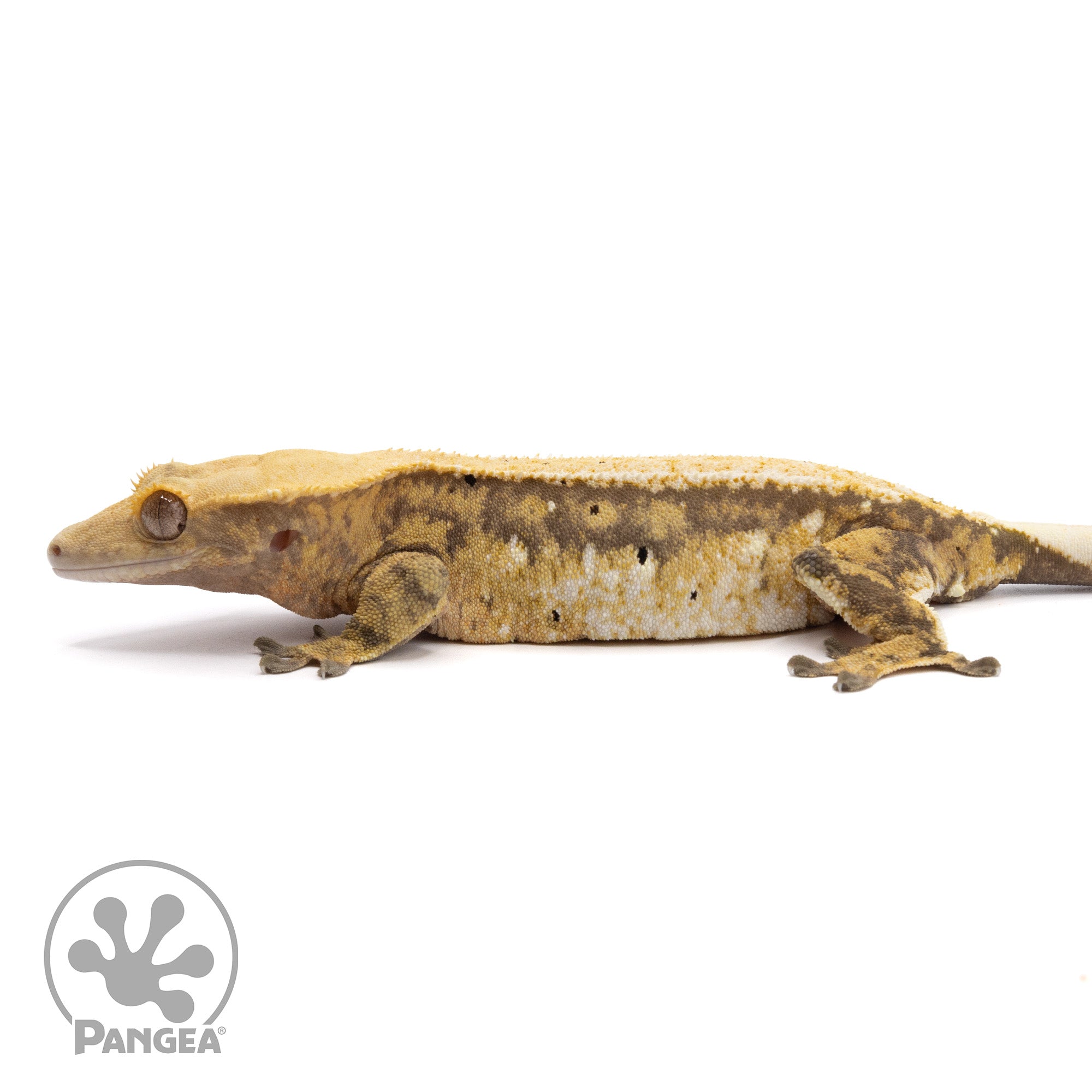 Ready to breed! This female tricolor harlequin crested gecko (Cr-2026) has a stunning pattern of yellow and white with a dark base, accented with dalmatian spots. She will make a great gecko for any reptile enthusiast!