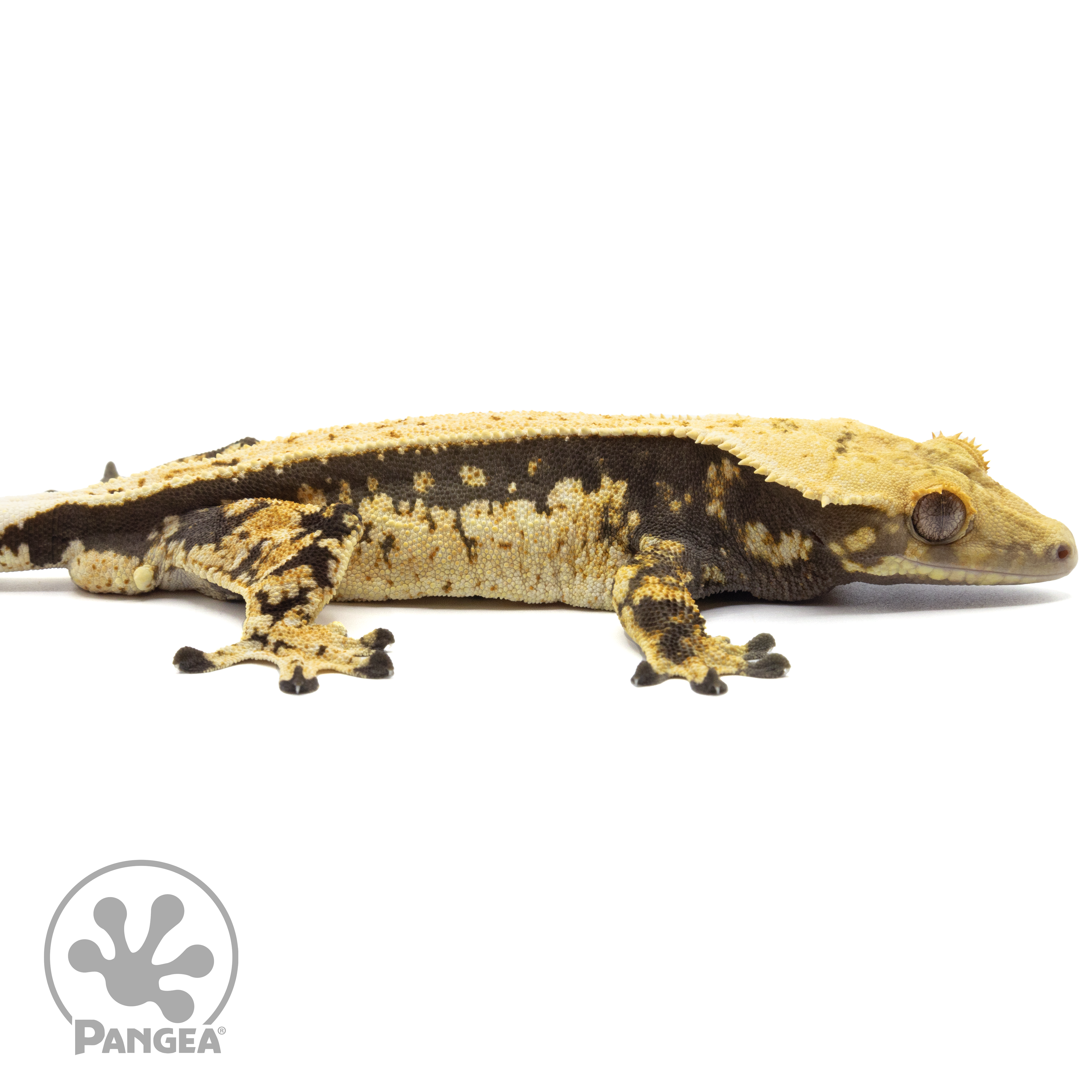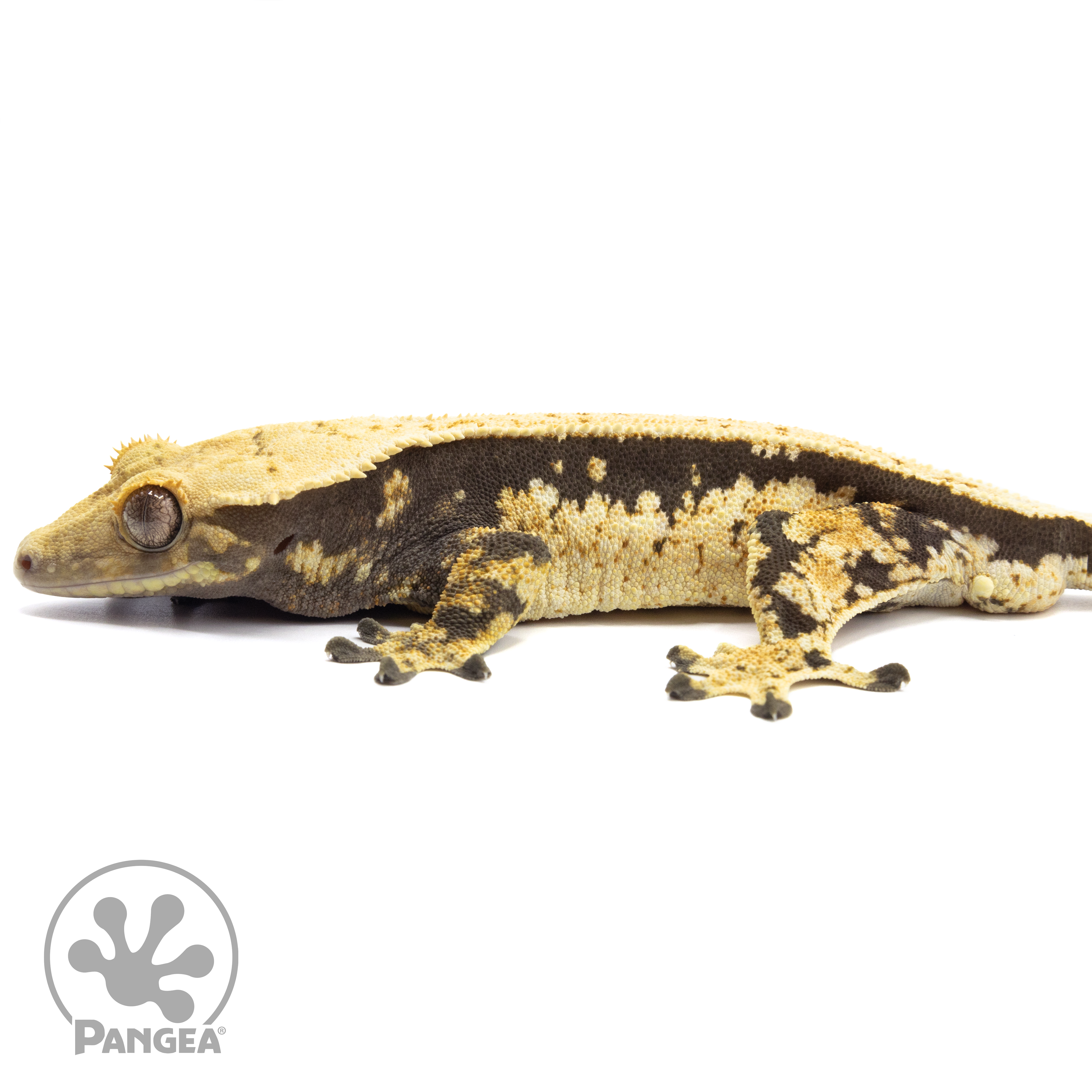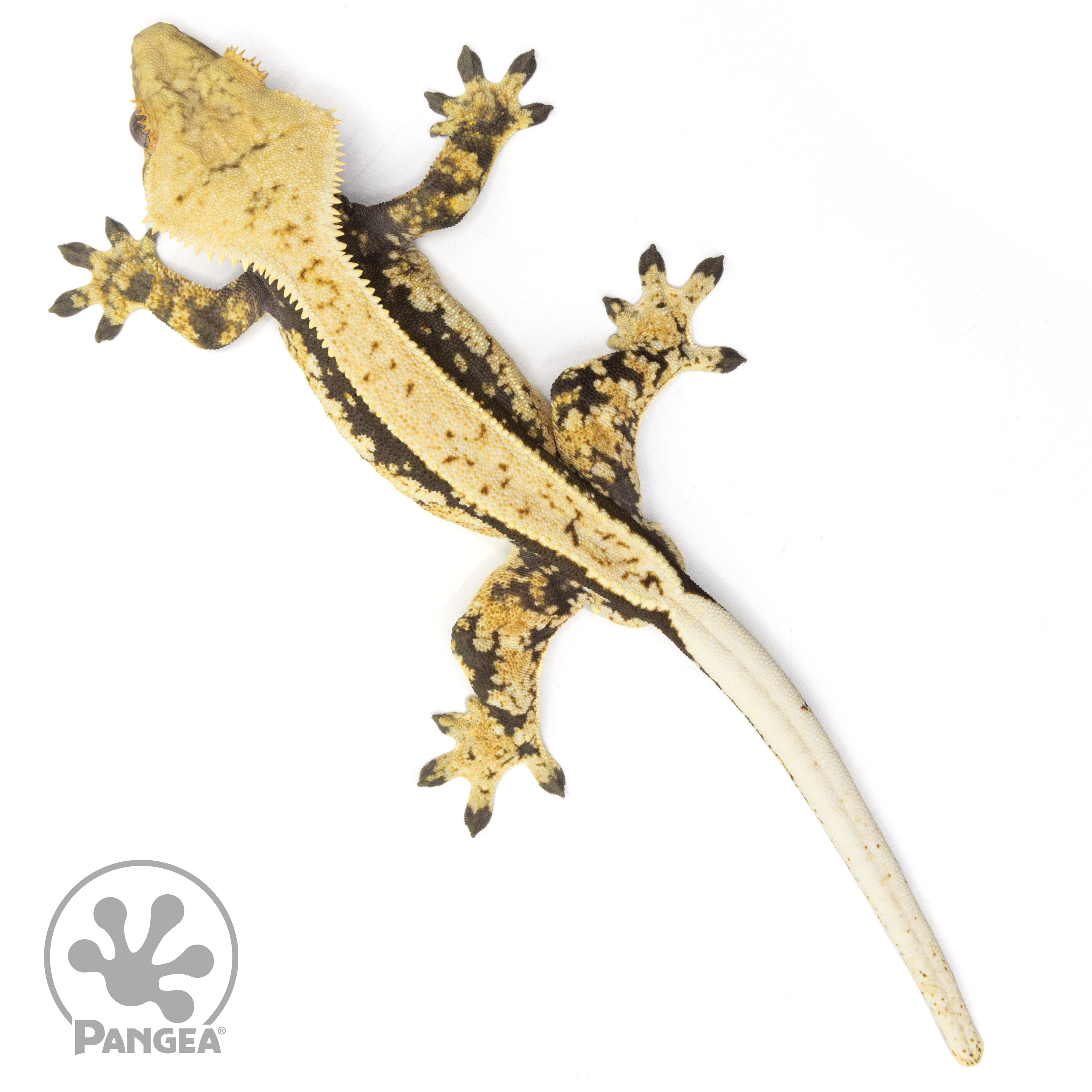 This Male Tricolor Pinstripe Crested Gecko has a beautiful combination of yellow and cream patterns on a dark base. With its striking colors and full pinstripe down his dorsal, this gecko is ready to breed and add a stunning touch to your reptile collection!