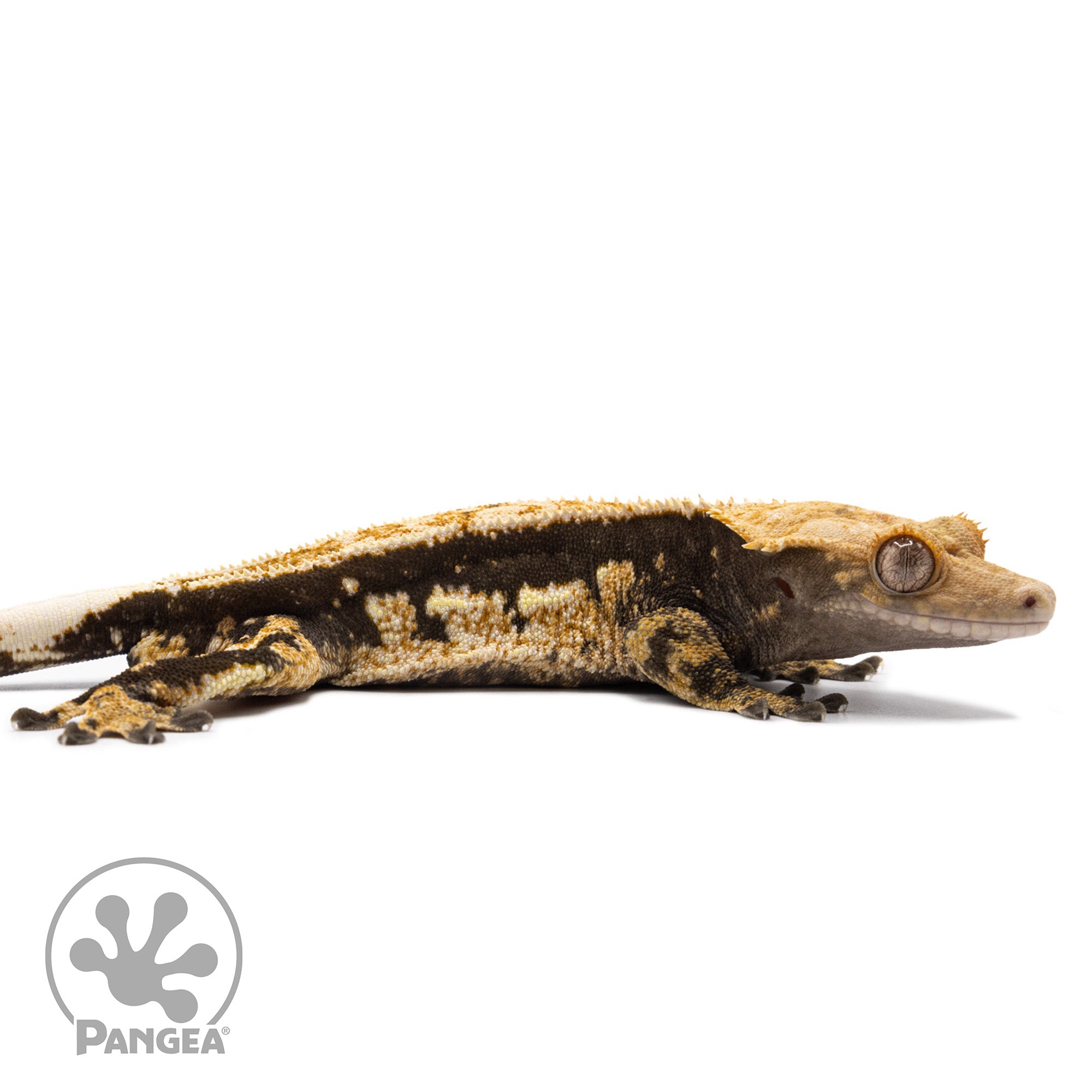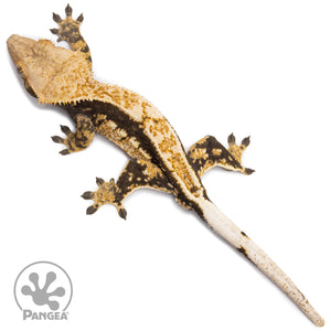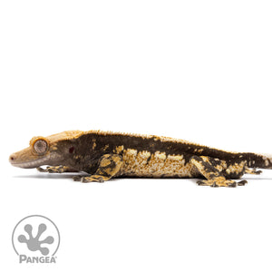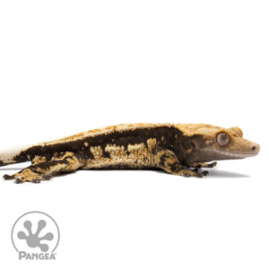 This male tricolor quadstripe crested gecko (CR-2748) boasts a deep dark base and vibrant orange and cream pattern giving him his tricoloration. With he also features a partial pinstripe down his dorsal with quadstripe lines on his sides. This gecko is not only aesthetically pleasing, but also ready to breed. A stunning addition to any reptile collection!