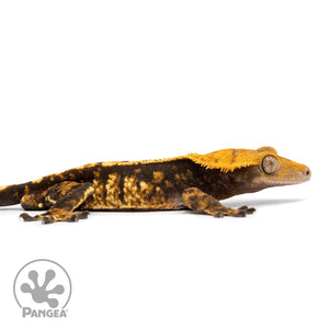 This Male Tricolor Harlequin Crested Gecko has a striking appearance with his harlequin tricolor pattern in vibrant orange and cream set upon a dark base. This gecko is ready to breed and will make a beautiful addition to any collection.