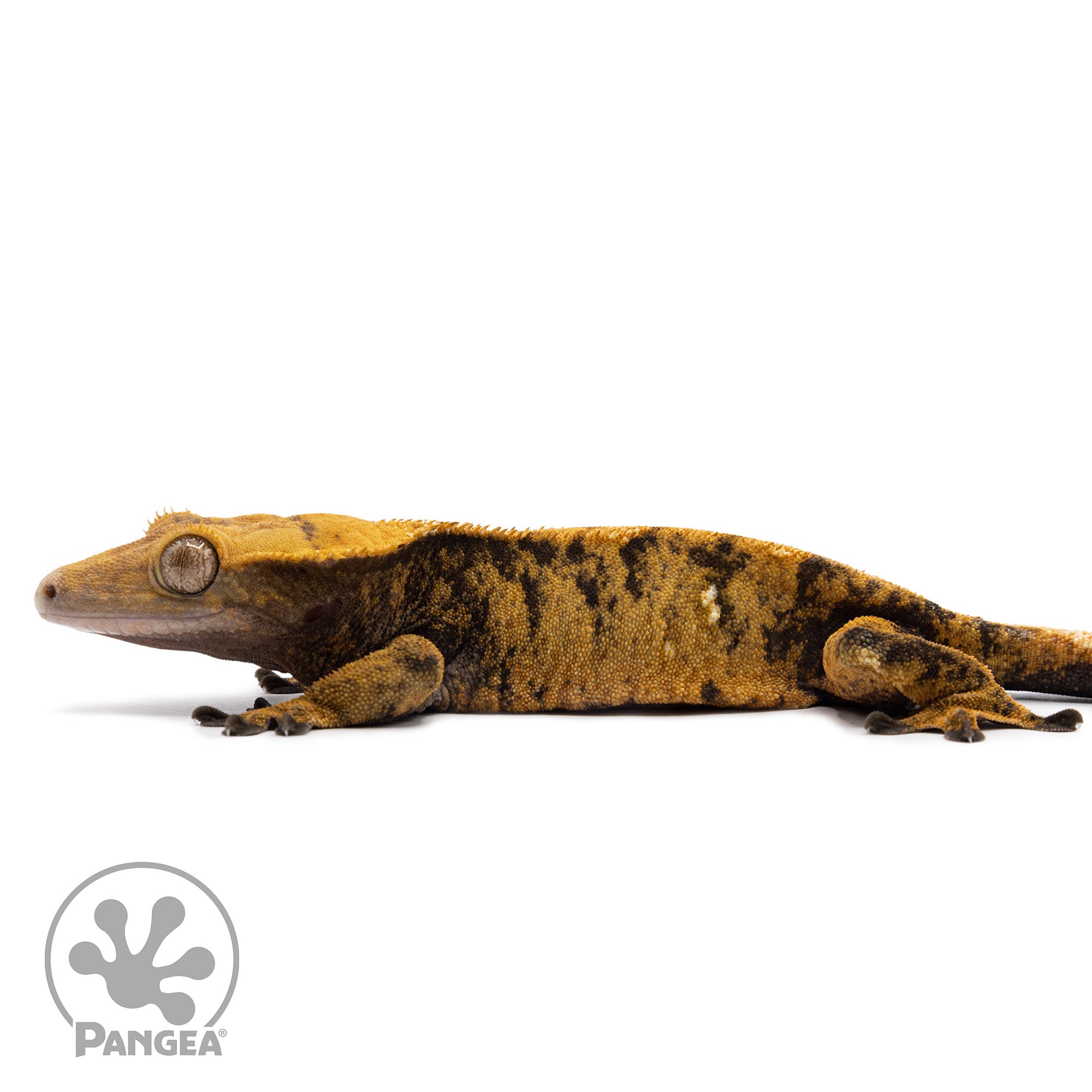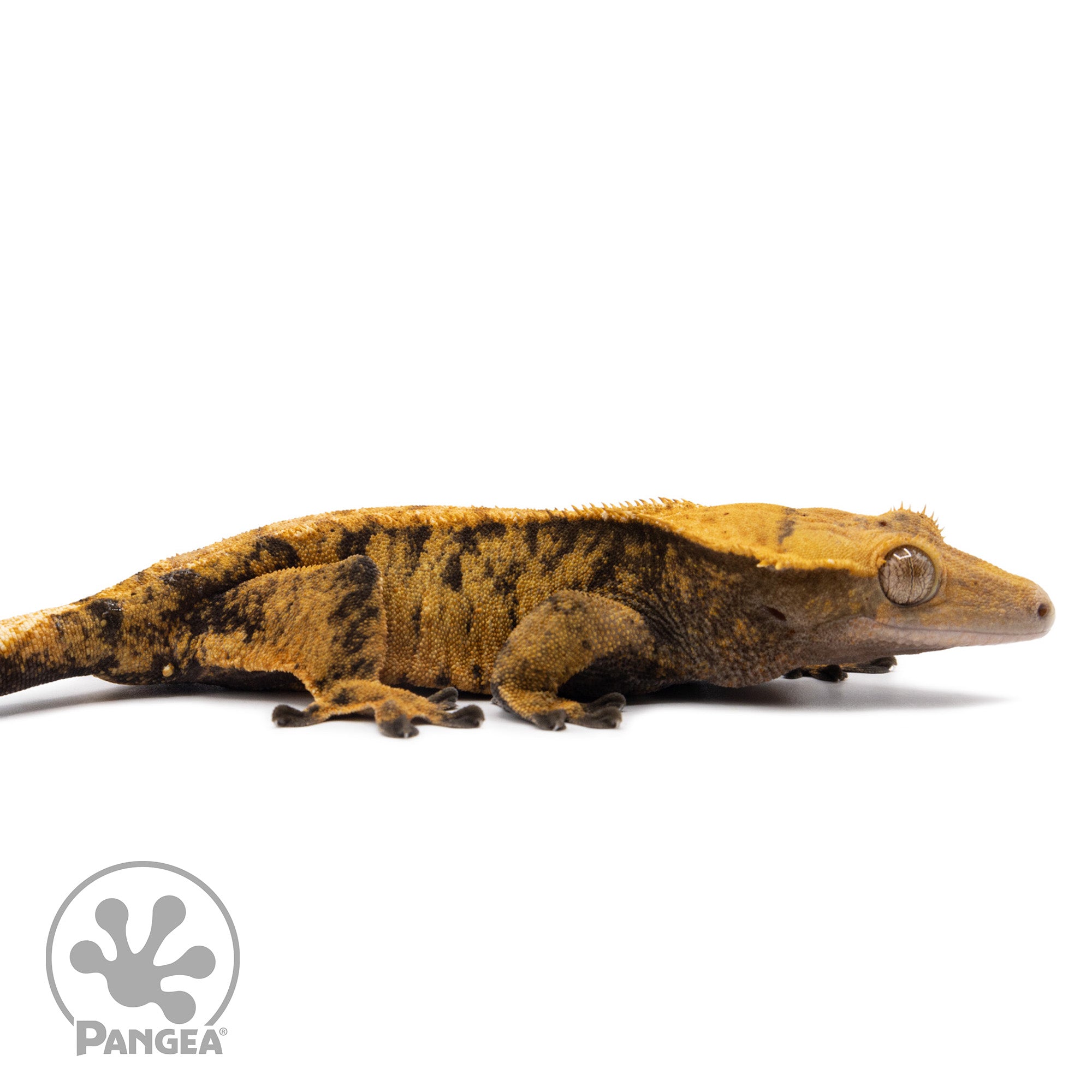 This Male XXX Crested Gecko Cr-2581 features an Extreme Harlequin design with a Halloween black base and vibrant orange pattern. With its unique XXX feature, this gecko is ready to breed and make a striking addition to any collection.
