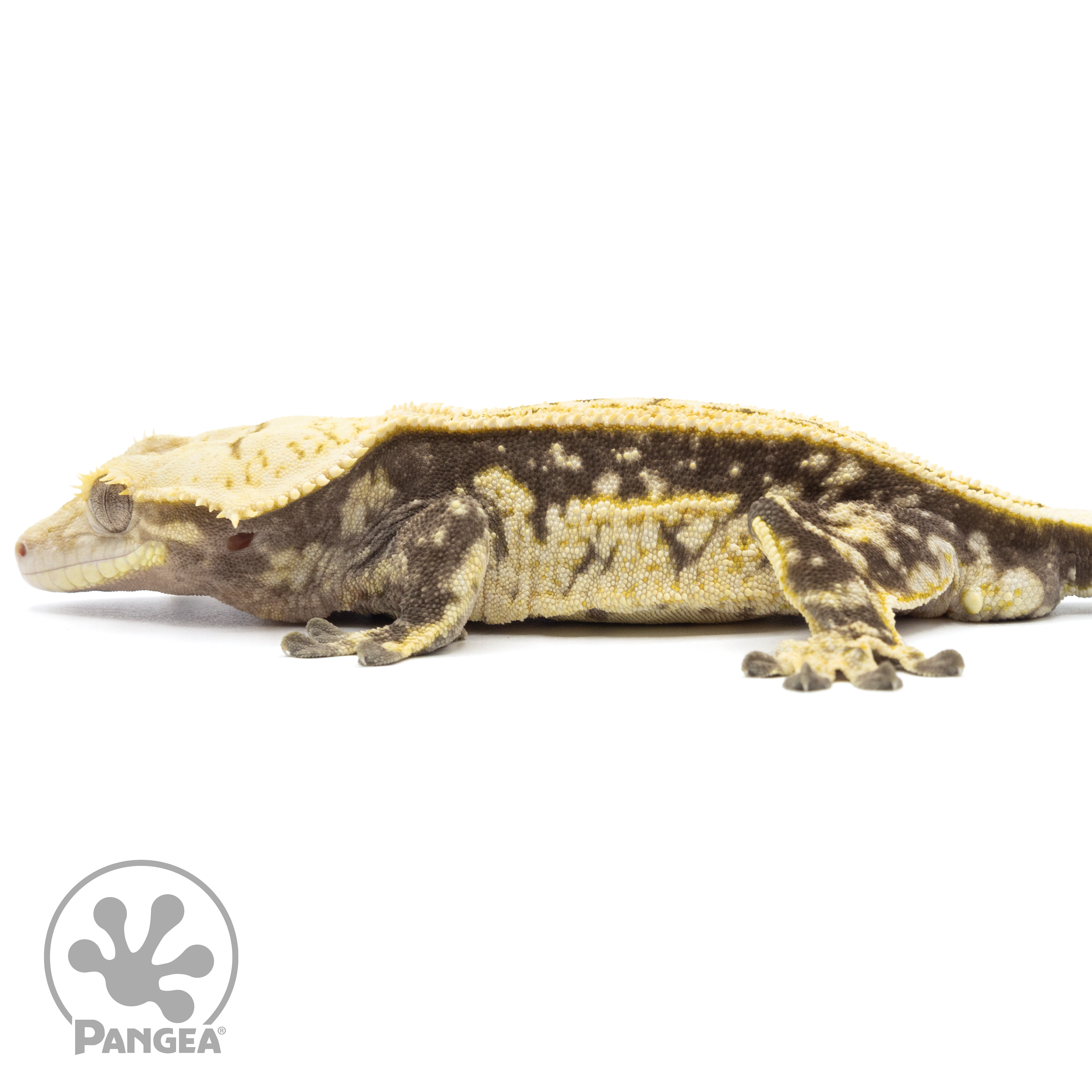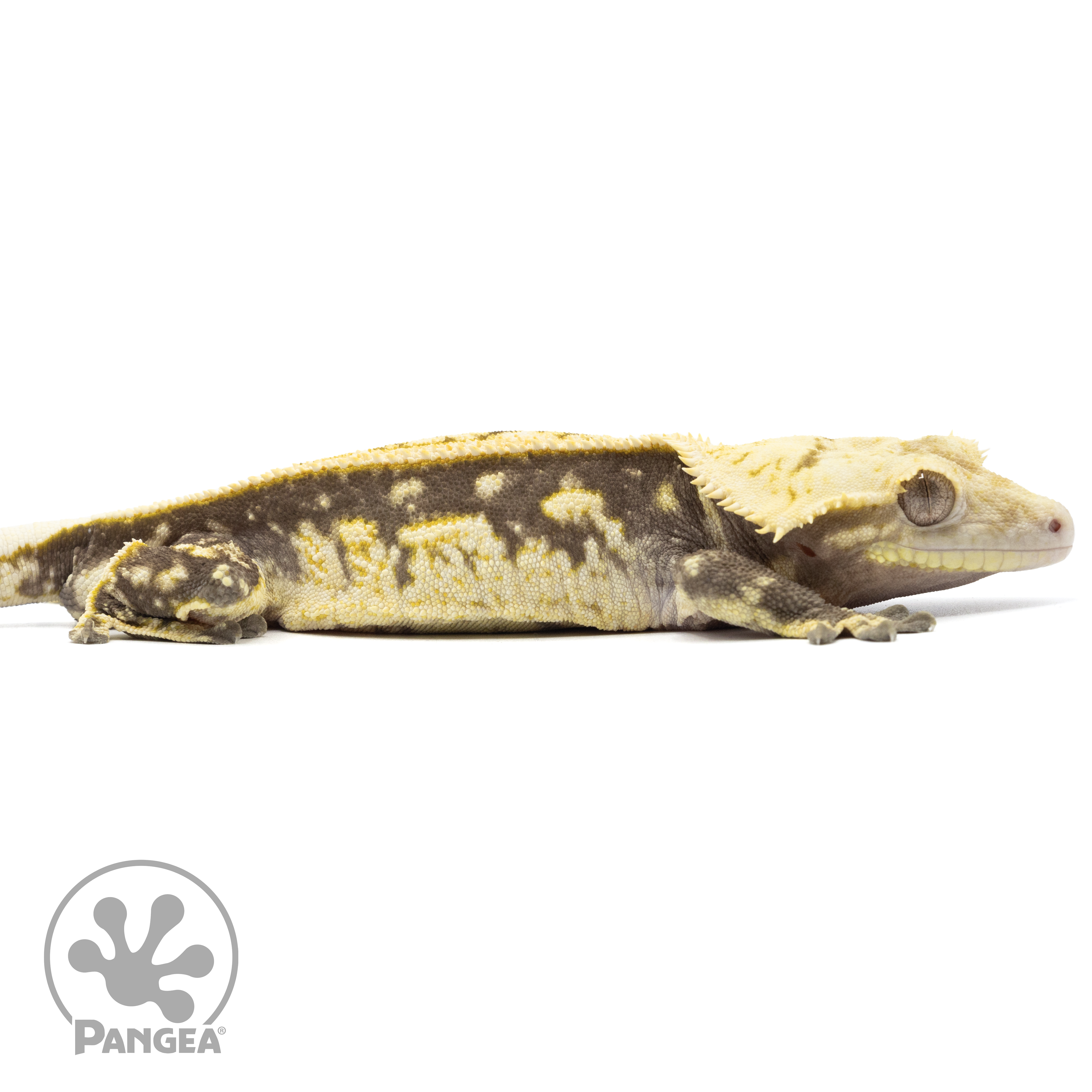 This Male Pinstripe Crested Gecko Cr-1704 has a beautiful harlequin and pinstripe cream pattern on a dark base. He is also ready to breed, making him a great choice for a breeding program.