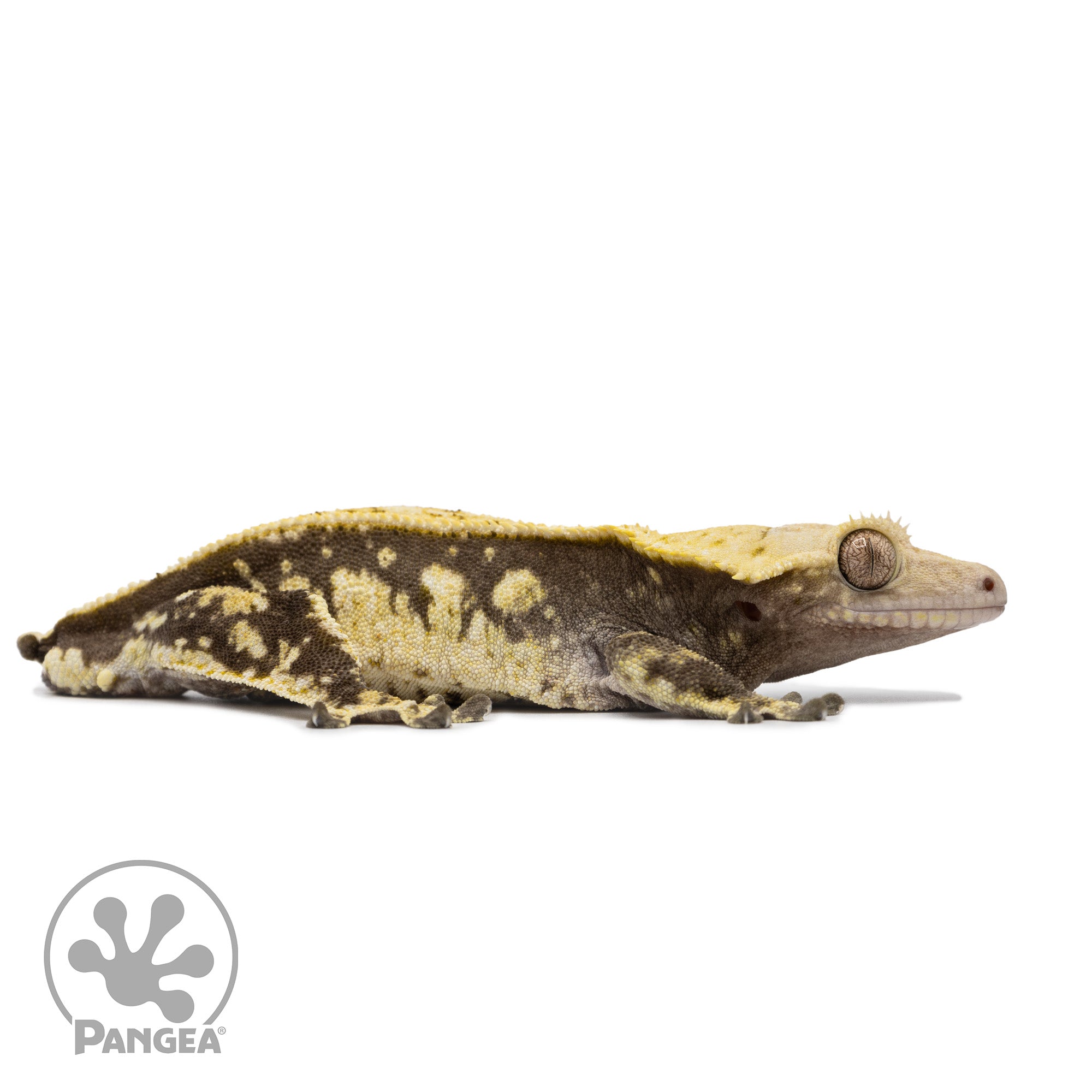 Discover the stunning beauty of the Male Pinstripe Crested Gecko Cr-2560. With a unique combination of pinstripe, harlequin, and cream pattern on a dark base, this gecko will surely catch your eye. Plus, he's ready to breed!