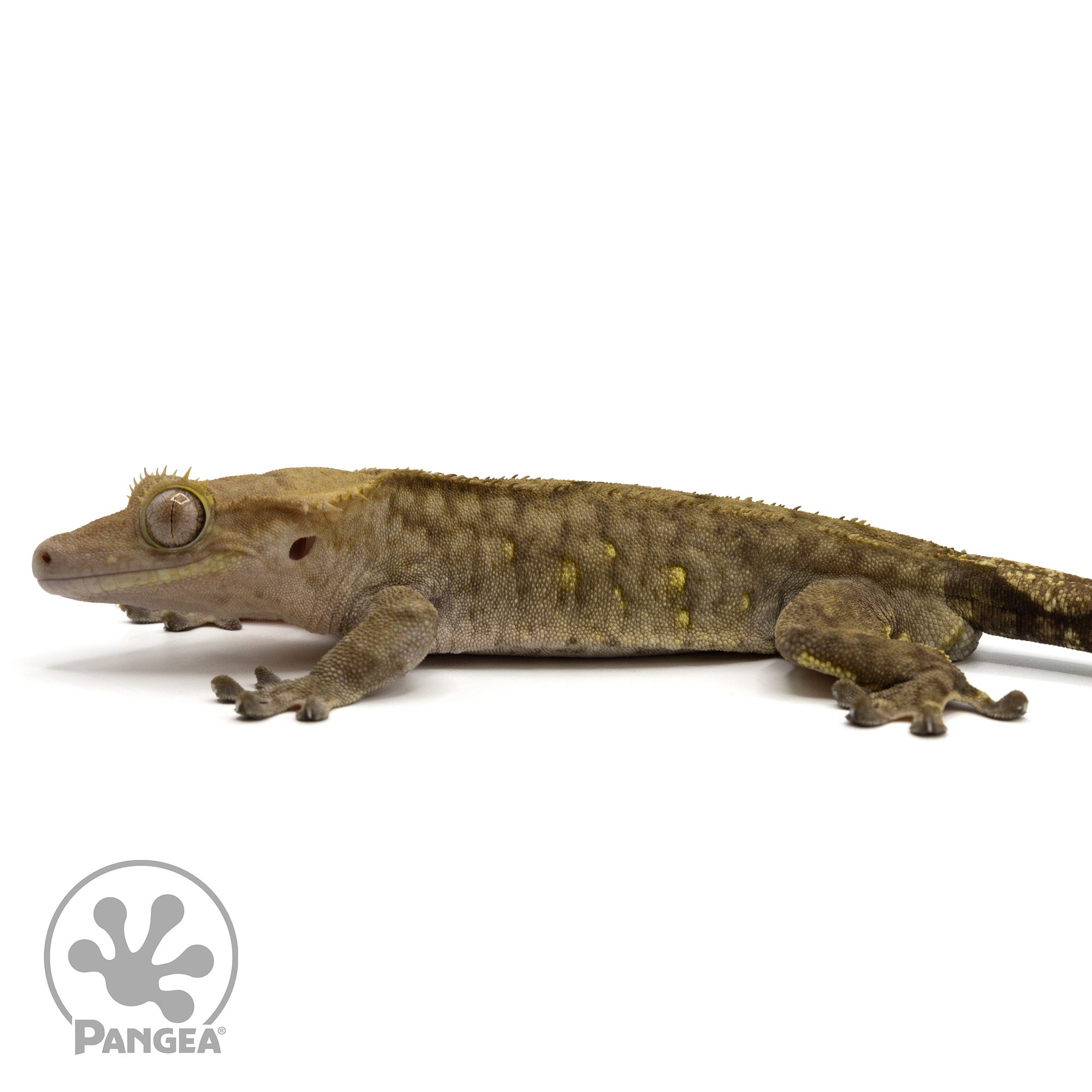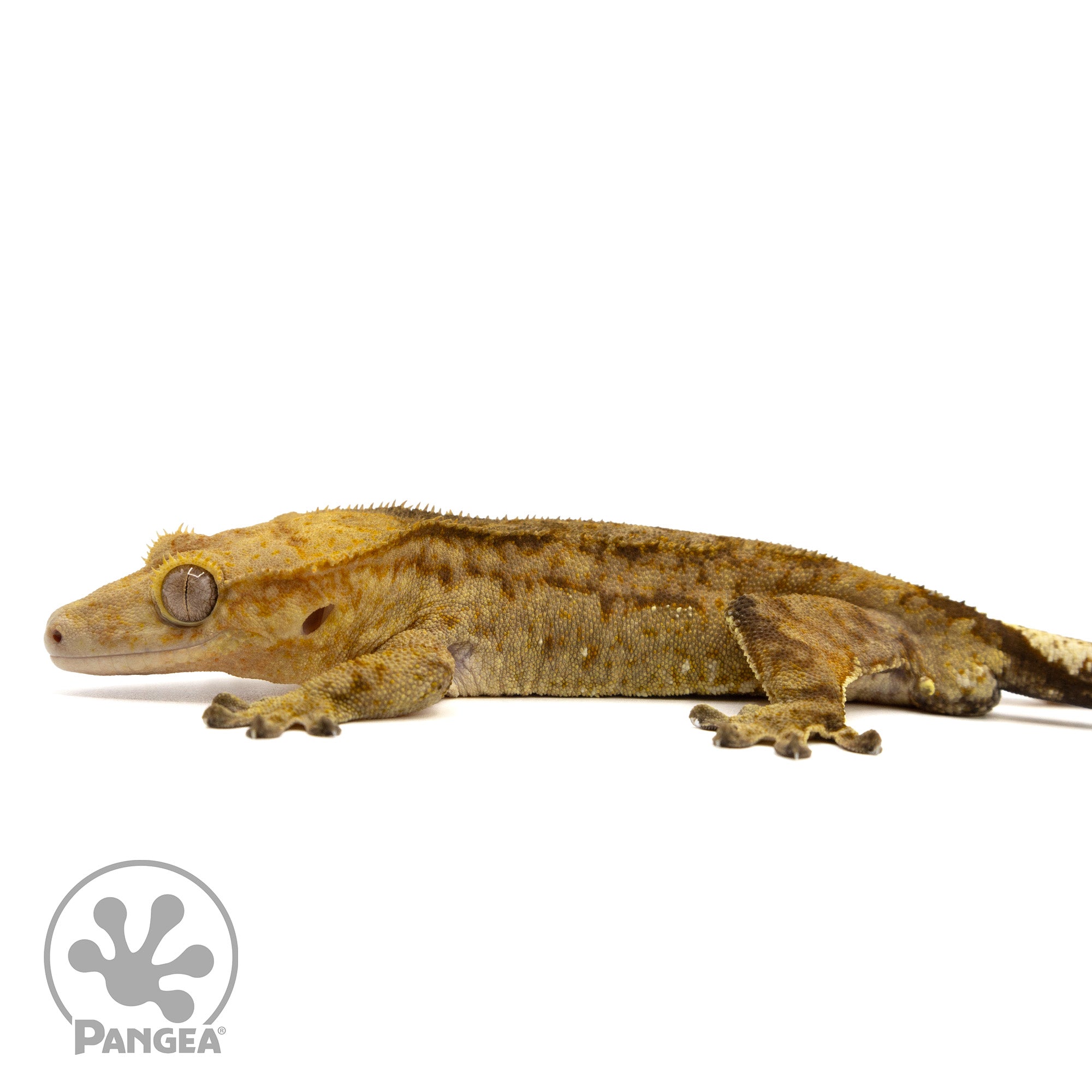Both a description and a trait, Tiger is found in all Crested Geckos with varying expression as one of the fixed traits in the total population. This trait is typically characterized by dark bands that transverse perpendicular to a Crested Gecko's spine and subsequently pinstripe as well. These dark bands can be manipulated by many traits resulting in reverse pinstripe, freckling, and more. Generally, Tiger is a dark brown but can be seen in other shades and even red!