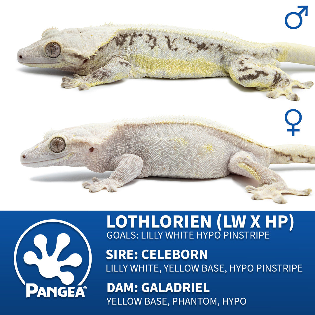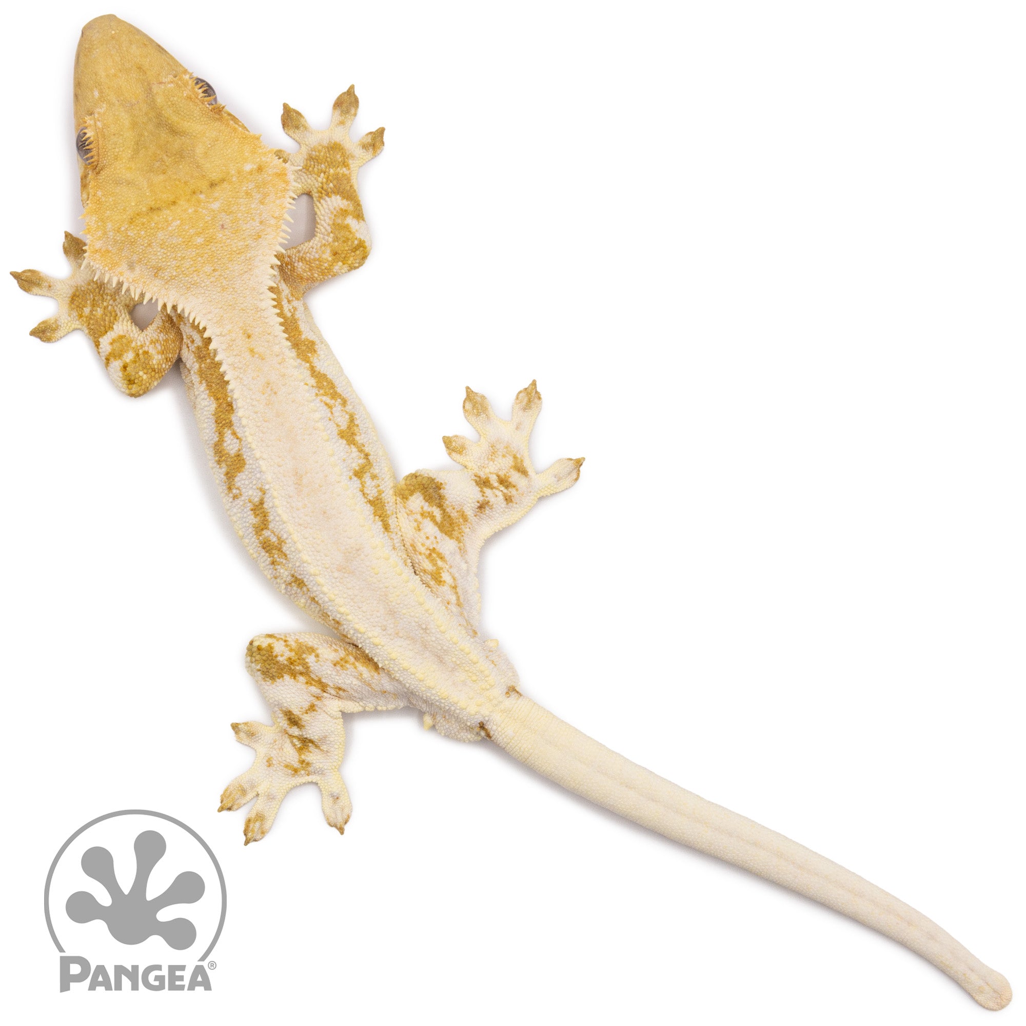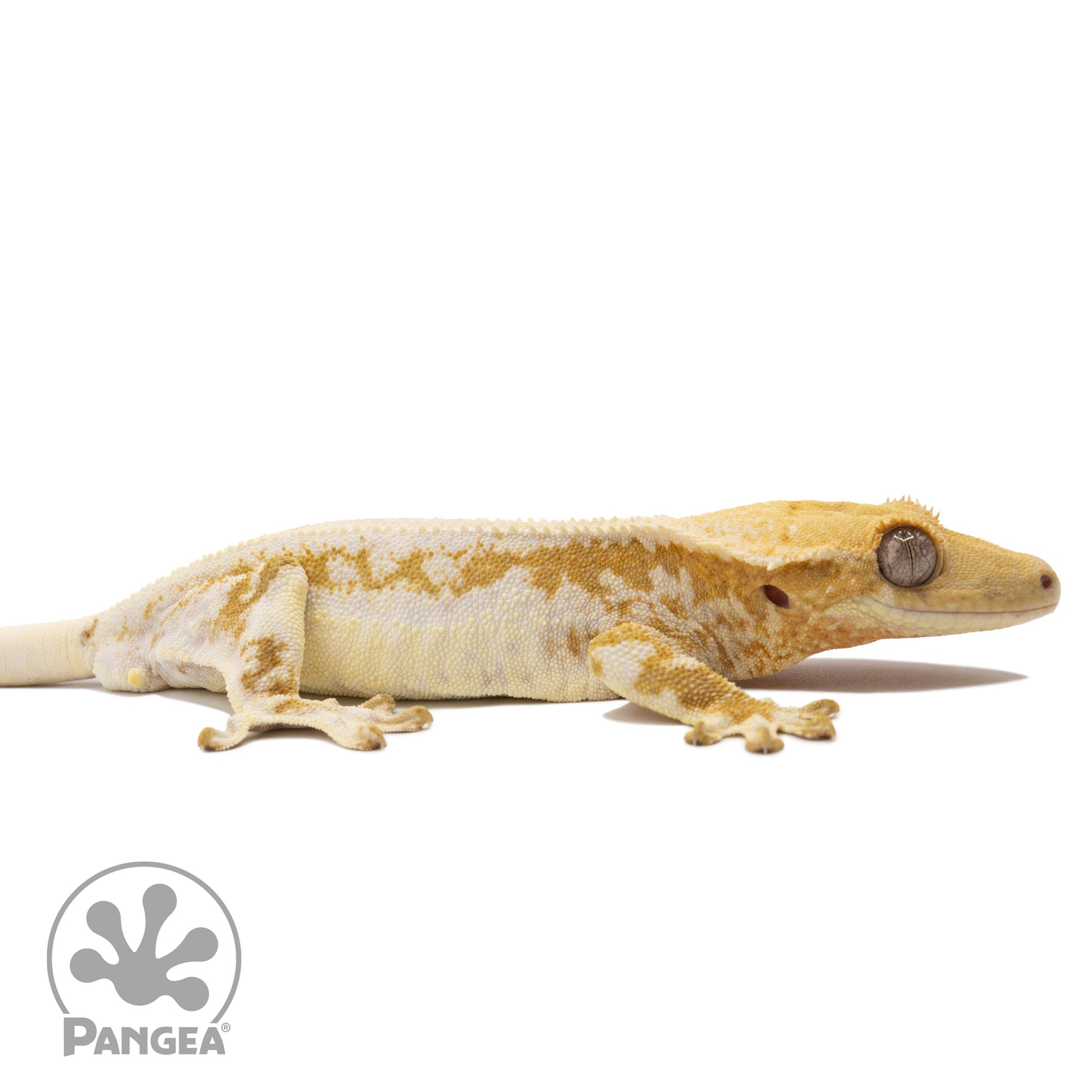 This Male Crested Gecko features an Extreme Harlequin pattern with a Pinstripe design and a striking combination of Lilly White and Yellow coloring. Ready to breed, this gecko is sure to make a stunning addition to any collection.