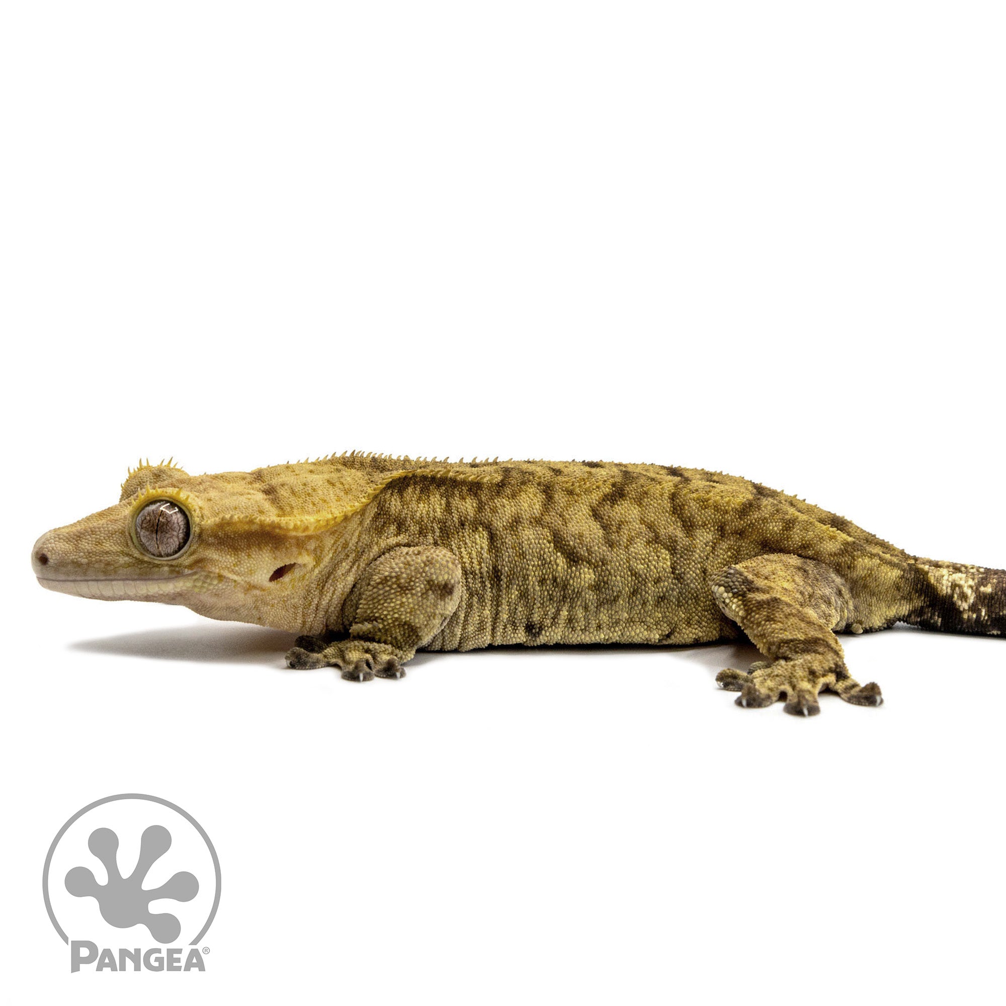 Introducing the female brindle crested gecko Cr-2418. She features a stunning brindle pattern set over a yellow base. Plus, she is ready to breed, making her the perfect addition to any collection!