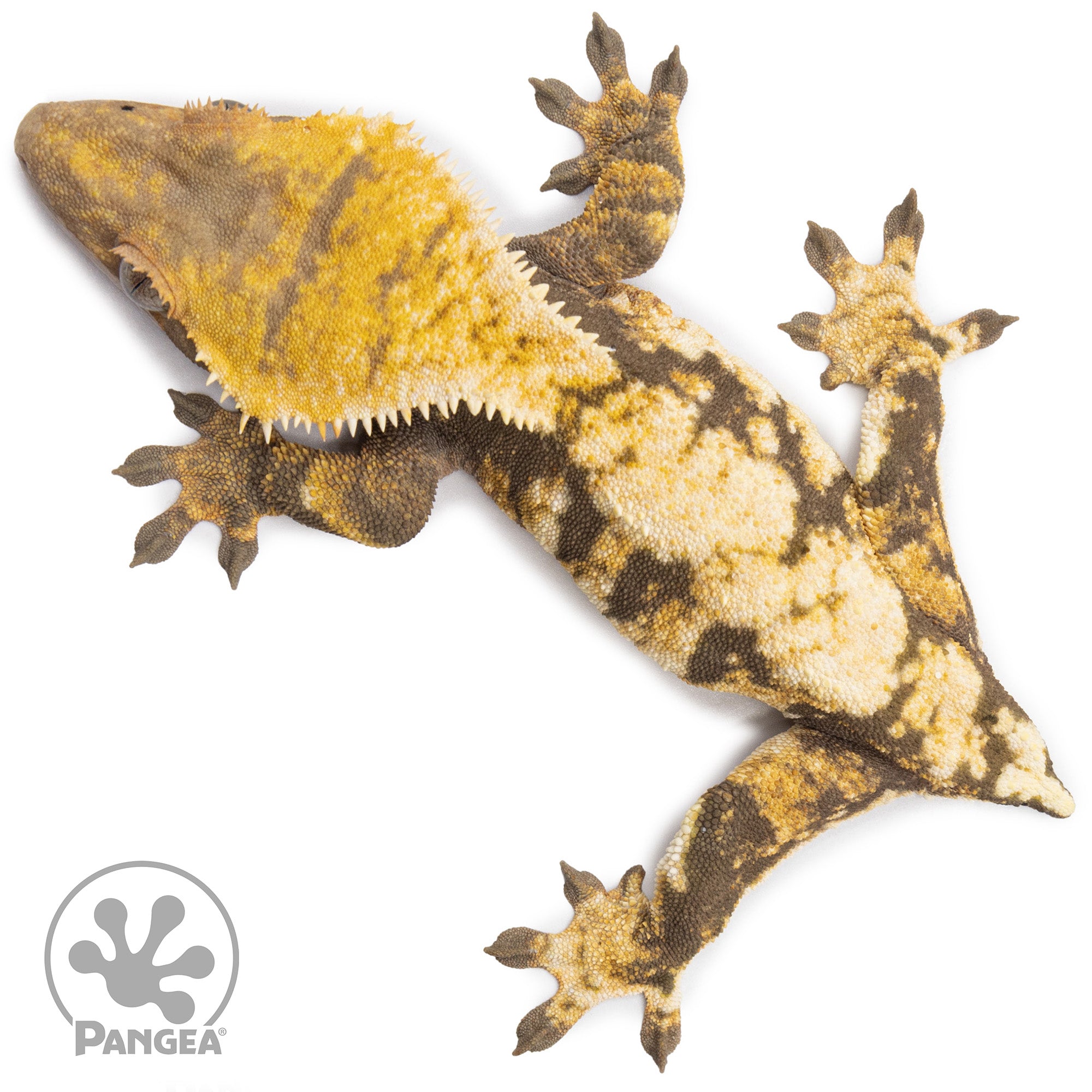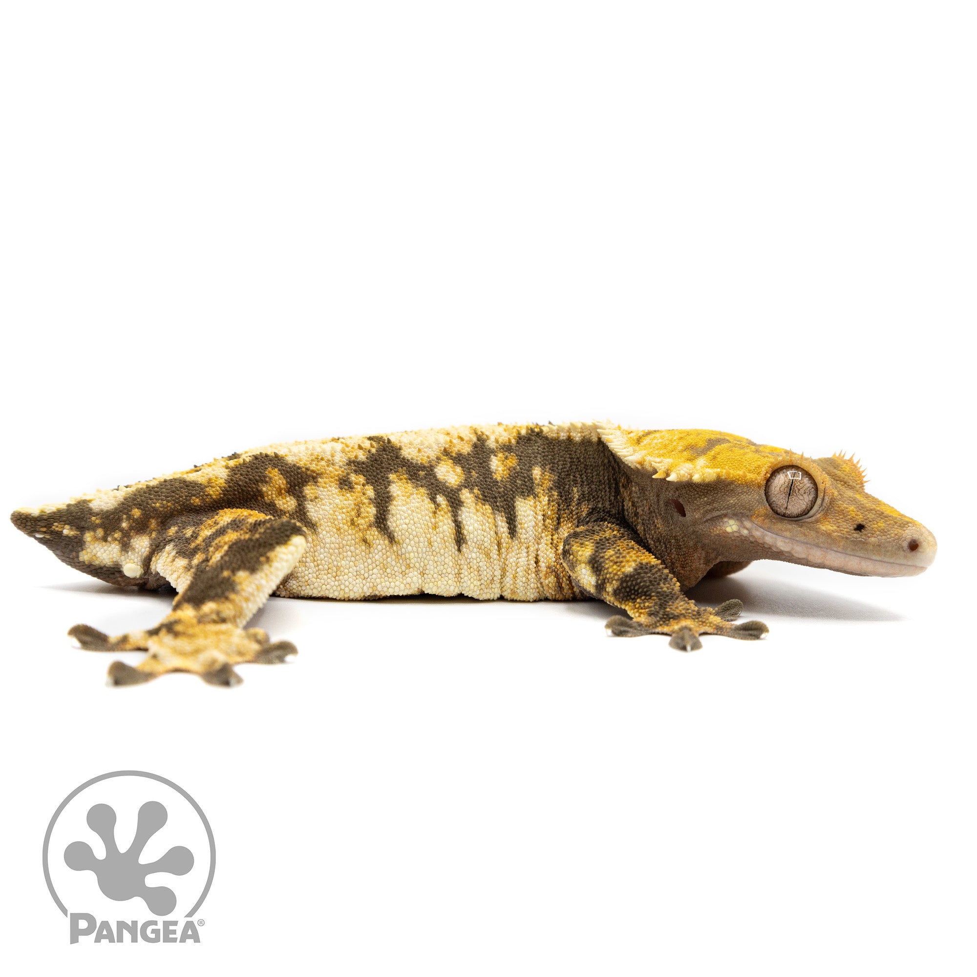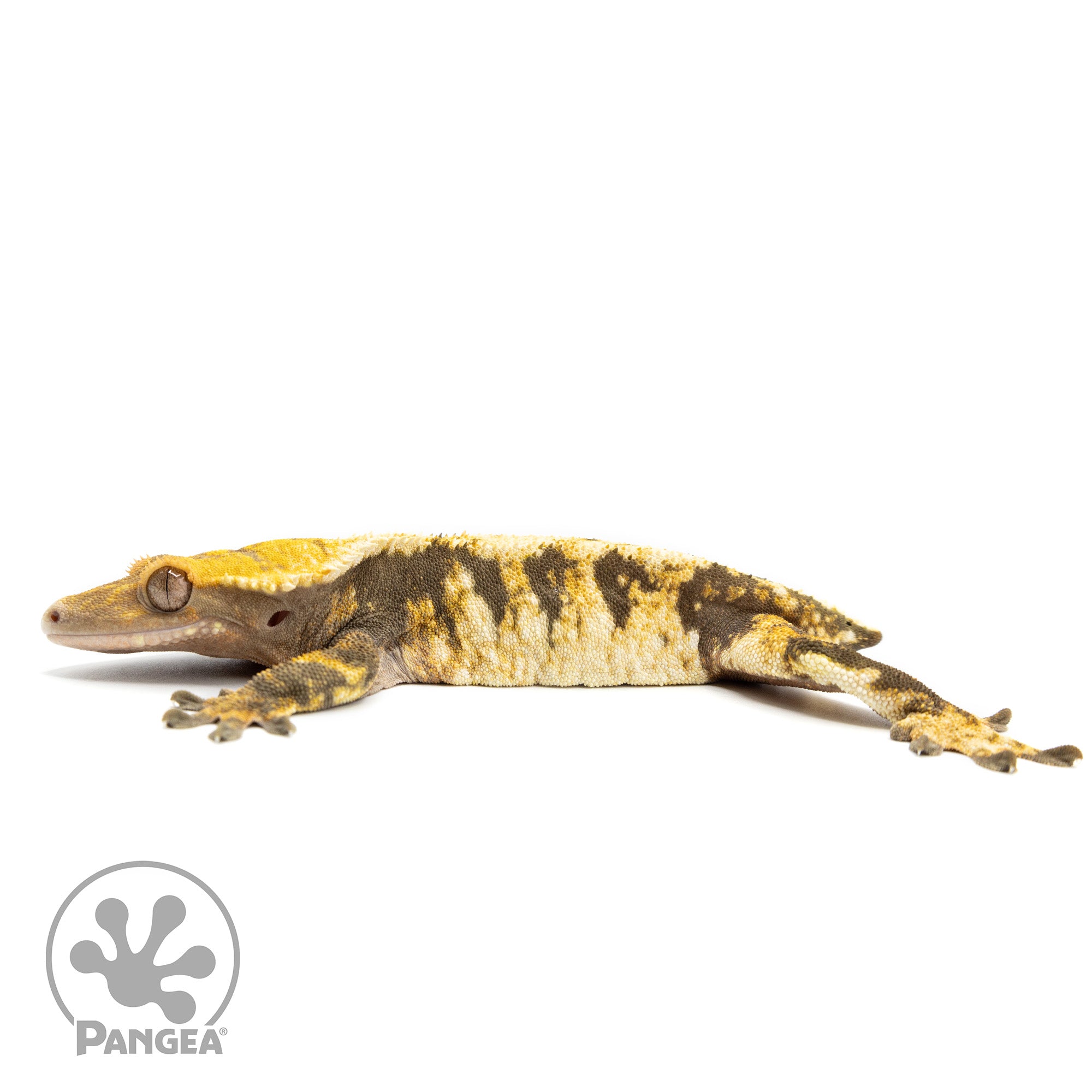 This Female Tricolor Extreme Harlequin Crested Gecko (CR-2462) features an extreme tricolor pattern in a striking yellow and cream on a dark base. This gecko is also ready to breed, perfect for any reptile enthusiast looking for a visually stunning addition to their collection.