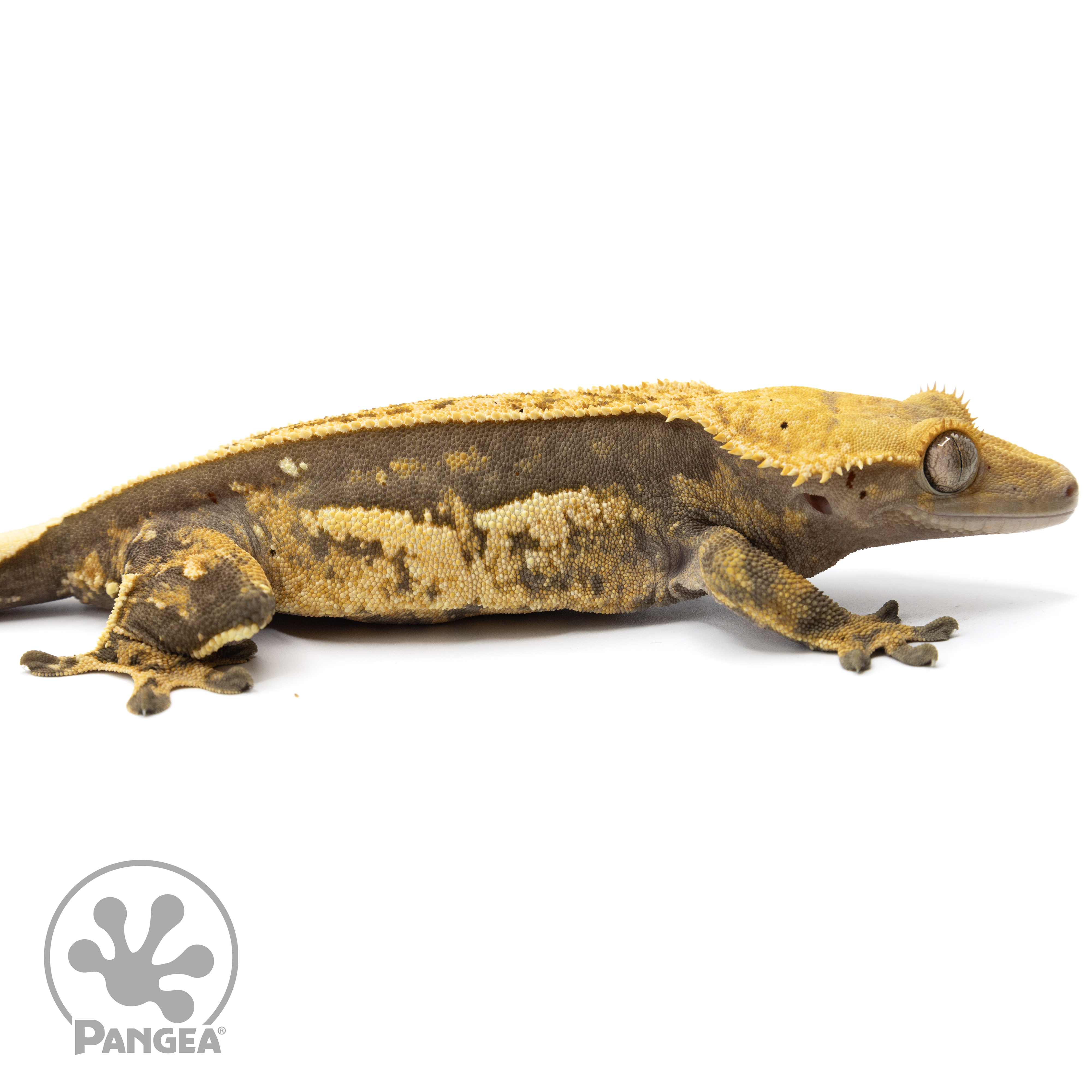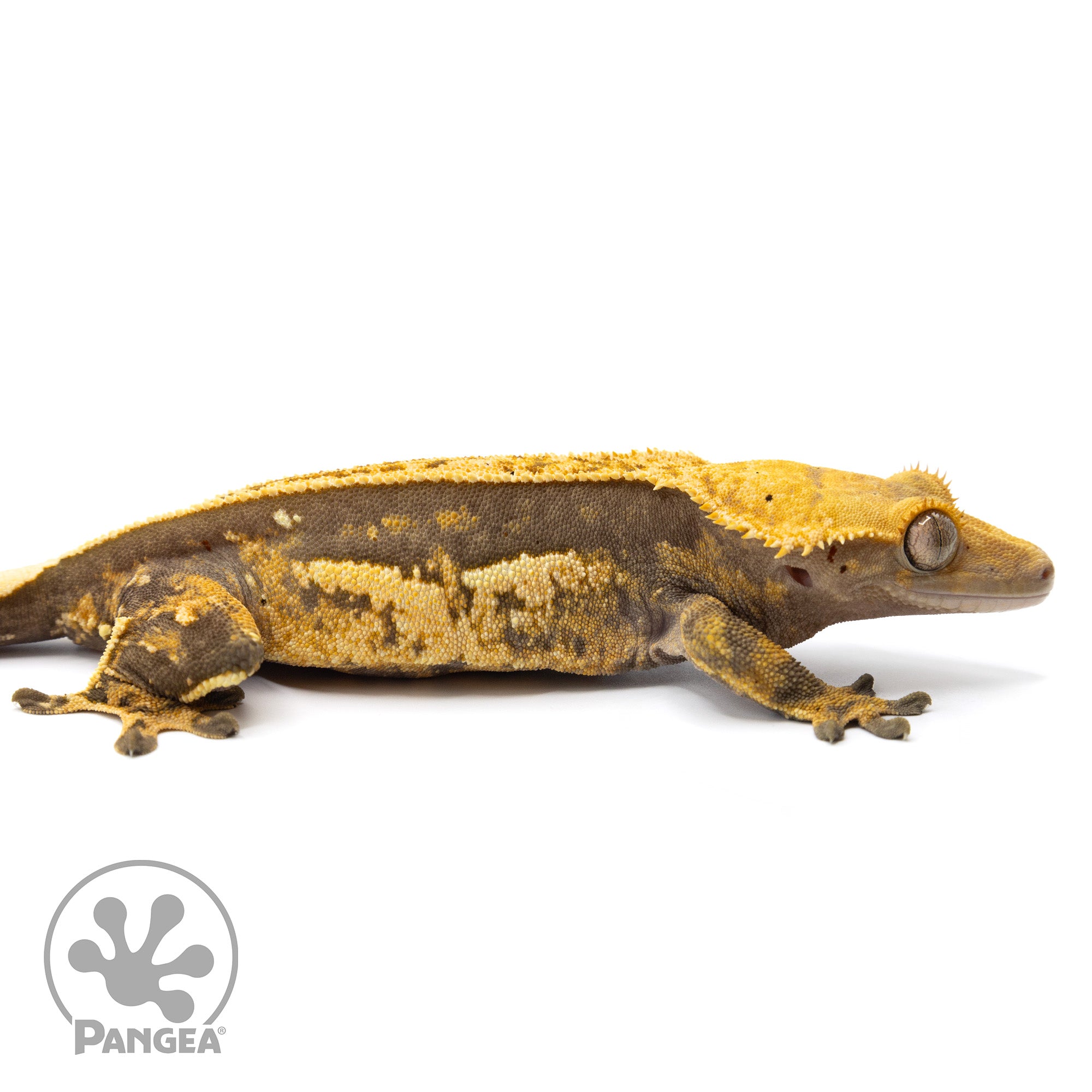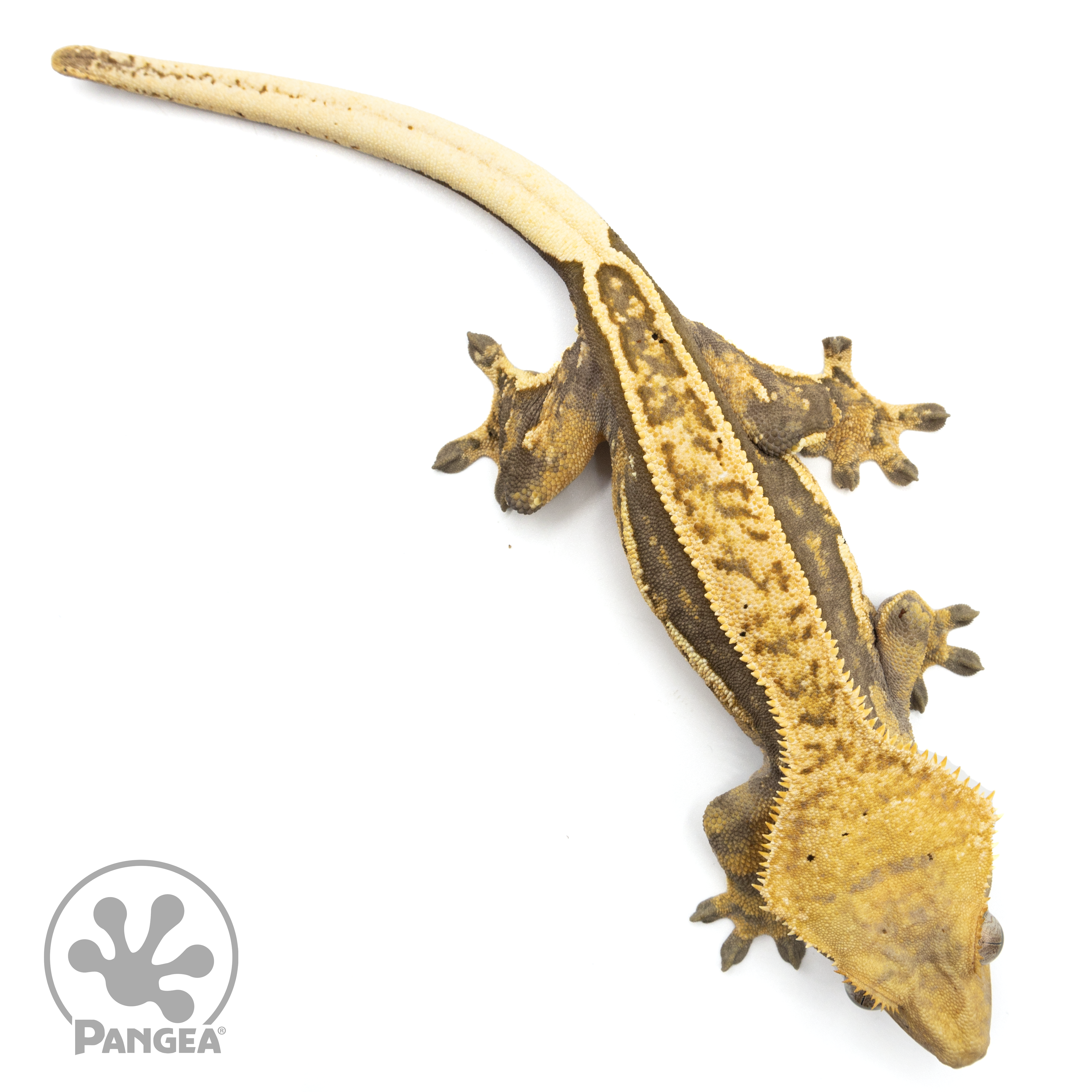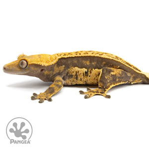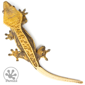 This female Pinstripe Crested Gecko, Cr-1629, features an eye-catching yellow pinstripe pattern down her dorsal set against a dark base. She is ready to breed and would make a great addition to any gecko enthusiast's collection.