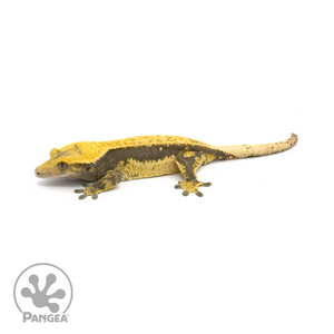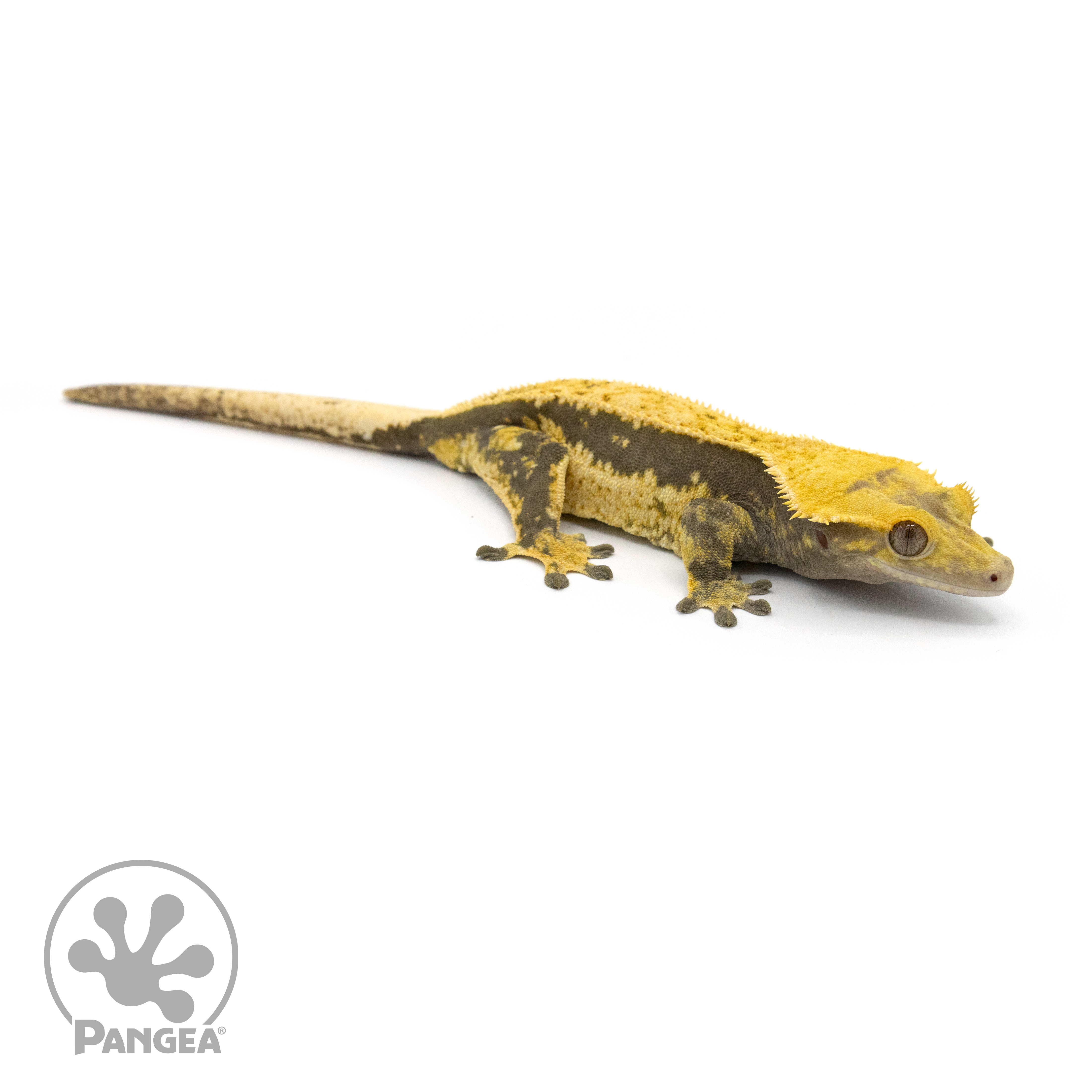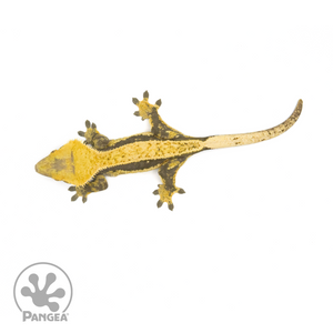 The Female Quadstripe Crested Gecko Cr-1358 boasts a striking quadstripe pattern on her dorsal and laterals with vibrant yellow white wall pattern set upon a dark base. She also features drippy and is ready for breeding, a perfect addition for any gecko enthusiast looking to add variety to their collection!