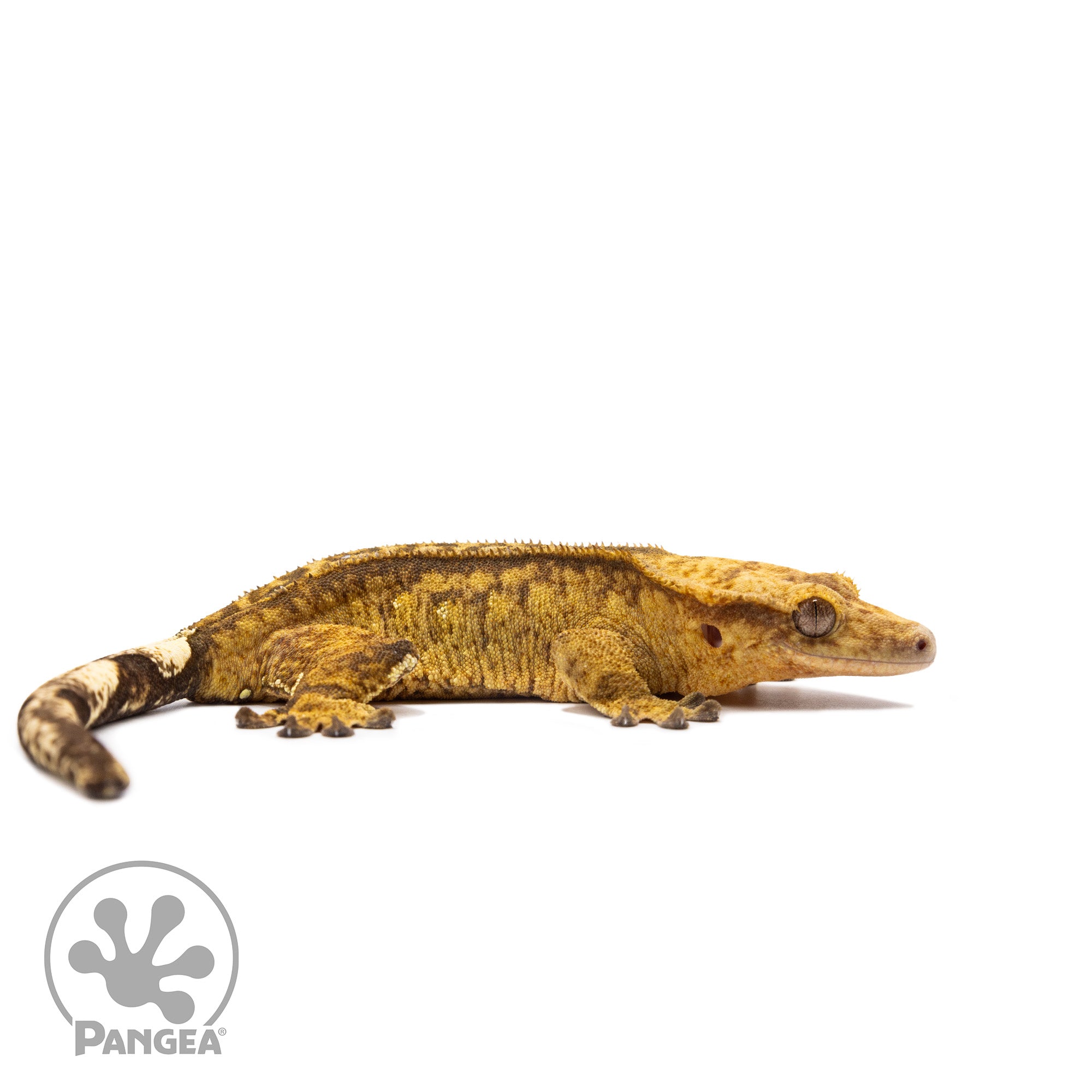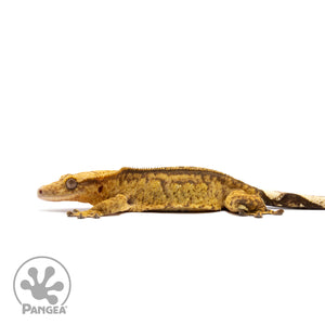 The Female Reverse Pinstripe Crested Gecko Cr-2751 boasts a bold red reverse pinstripe pattern on a yellowish-orange base. She also features bright cream colored portholes and unique snowflake markings. She is ready to breed and will make a stunning addition to any collection!