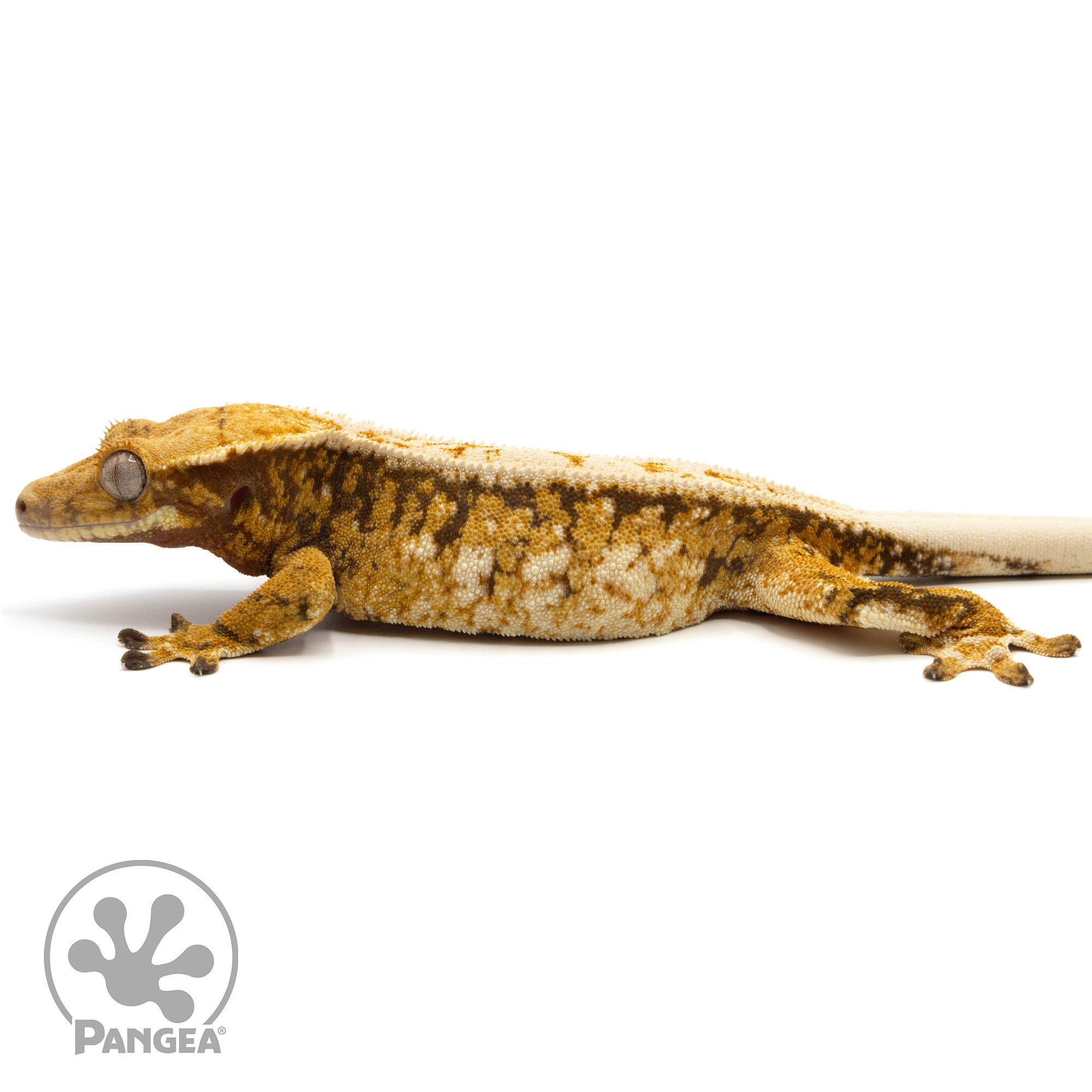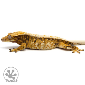 This Female Tricolor Extreme Crested Gecko Cr-2112 features a striking extreme tricolor pattern in vibrant orange and white set on a dark base. This gecko is also ready to breed, making her a perfect addition to your collection.