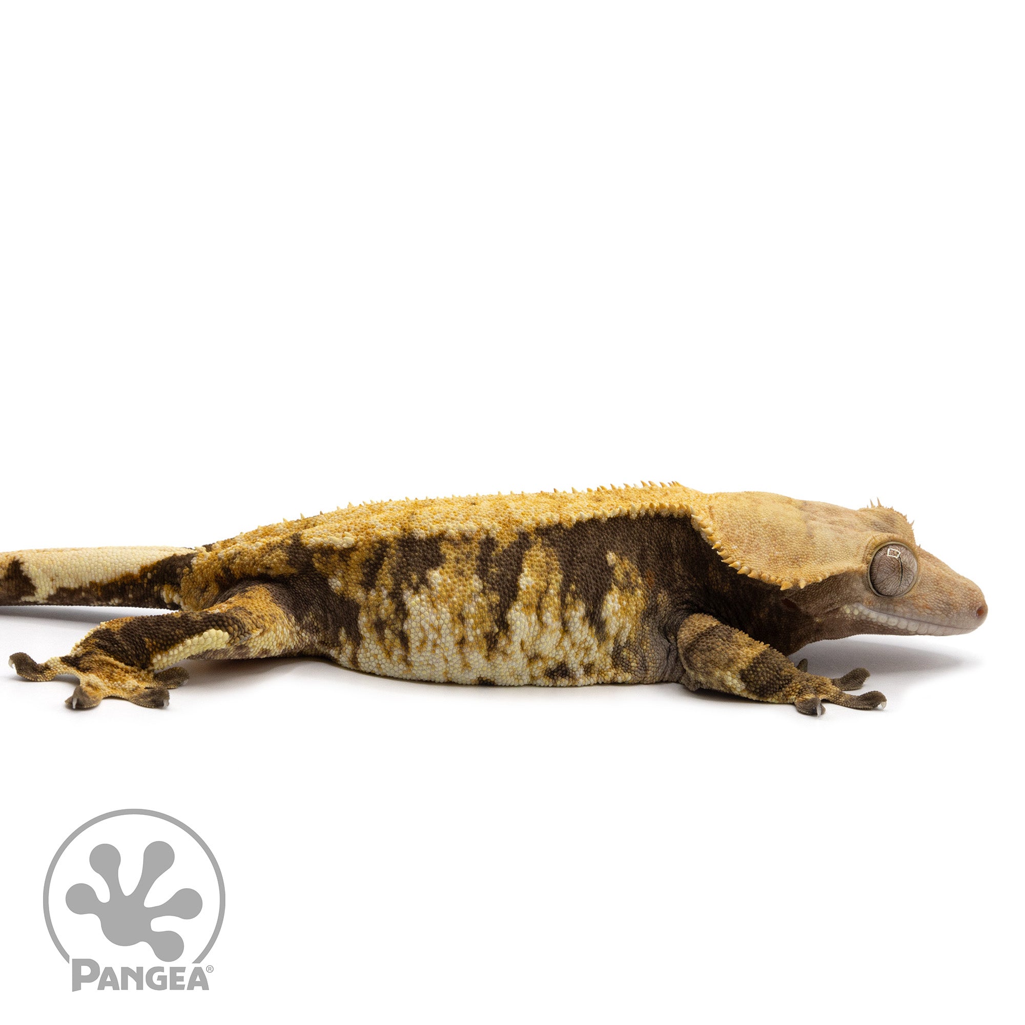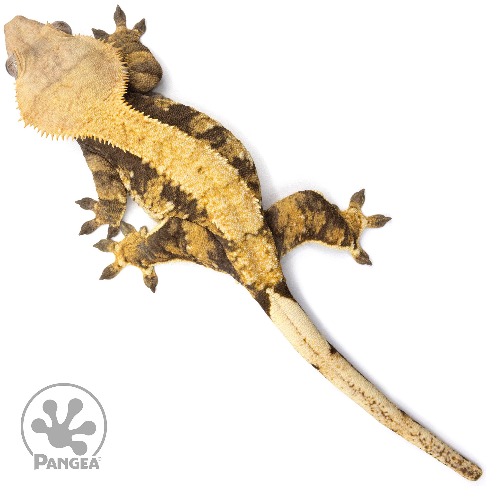 This female Crested Gecko Cr-2360 boasts an extreme tricolor pattern in a vibrant mix of yellow and cream on a dark base. Plus, with her ability to breed, this gecko is ready to join your collection!