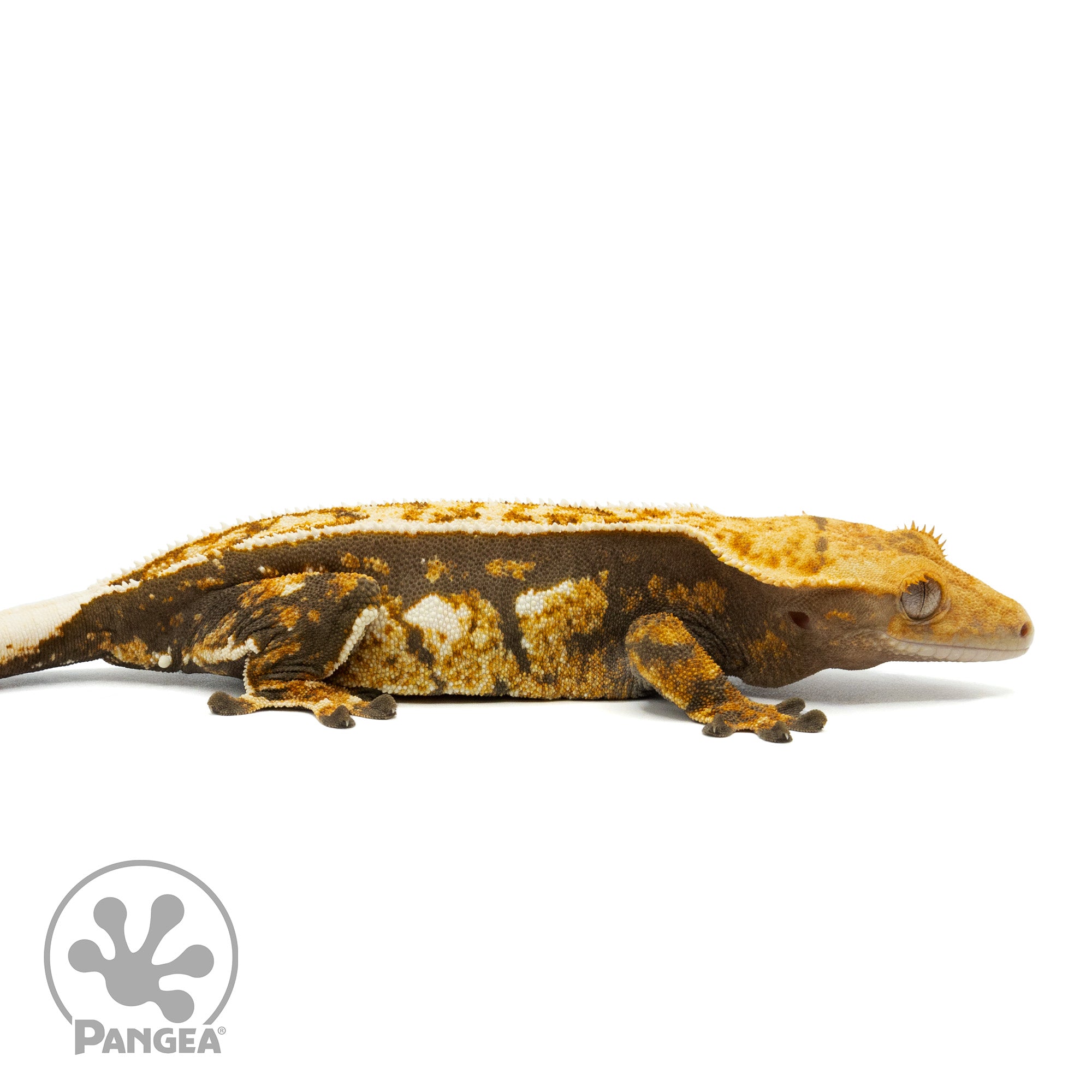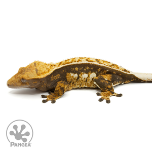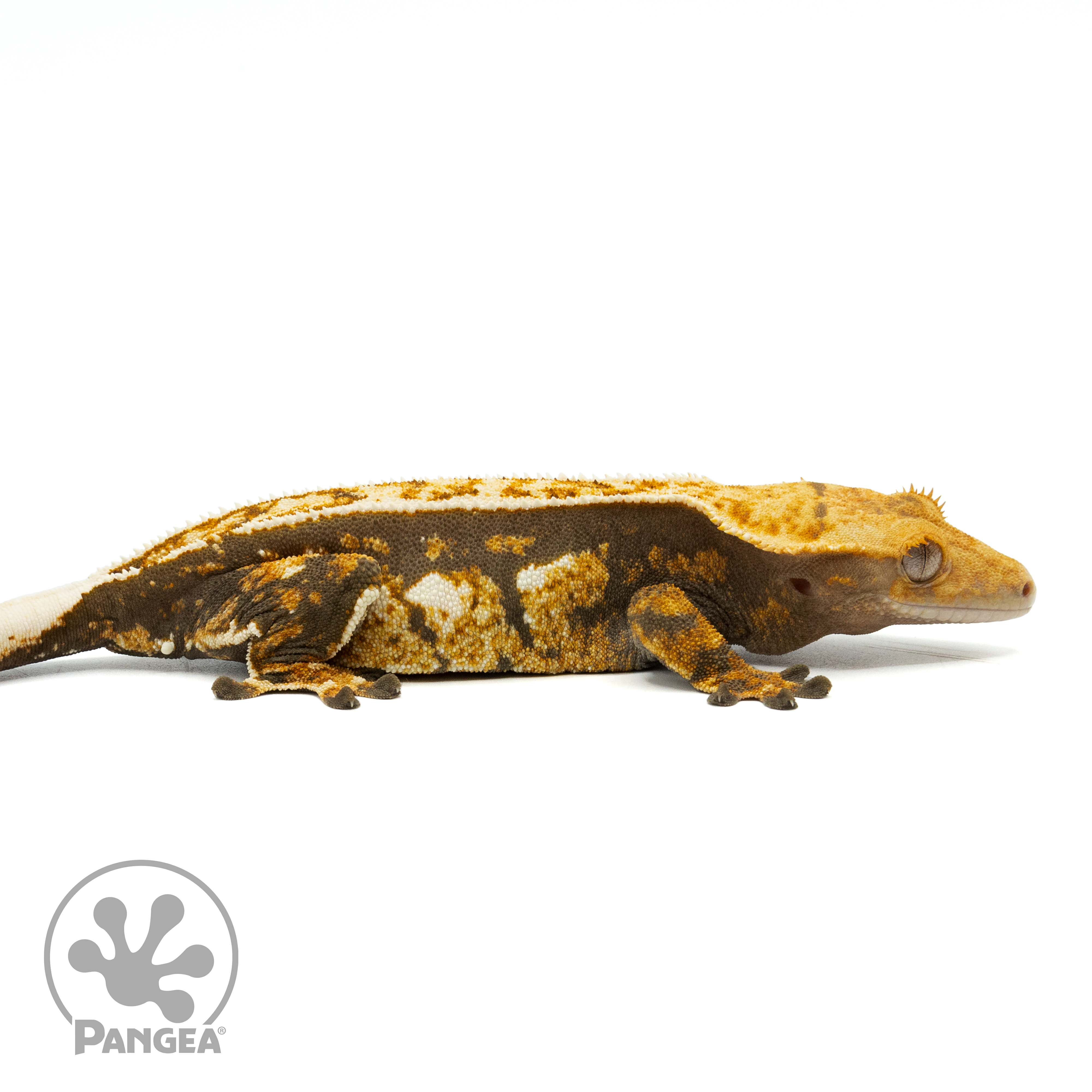 This Female Tricolor Crested Gecko Cr-1461 has a stunning tricolor pattern make up of vibrant orange and white set upon a dark base, accented by partial pinstriping down her dorsal. With the ability to breed, this gecko is an ideal choice for any reptile enthusiast looking to add some color to their collection!
