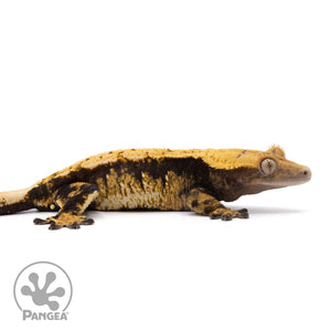 This Female Tricolor Harlequin Crested Gecko CR-2018 is the perfect addition to any reptile enthusiast's collection. With her striking yellow and white patterns on a black base, this gecko is sure to make a statement. Plus, this gecko is ready to breed, making her a valuable addition for any breeder.