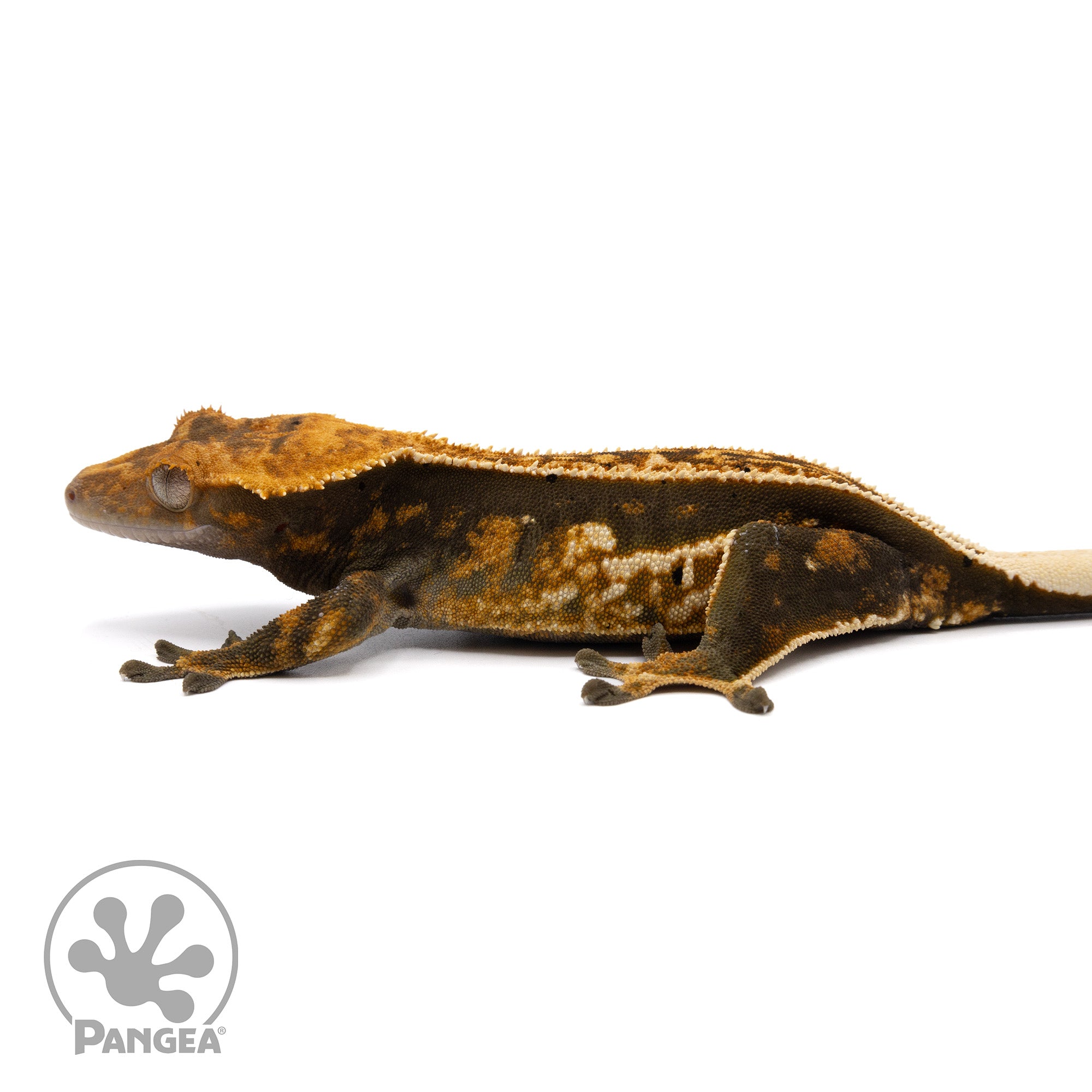 Discover the stunning Female Tricolor Pinstripe Crested Gecko Cr-2165. With a striking combination of pinstriping, an orange and cream tricolor pattern, and a sleek dark base, this gecko is a showstopper. Ready to breed, don't miss out on adding this one-of-a-kind addition to your collection!