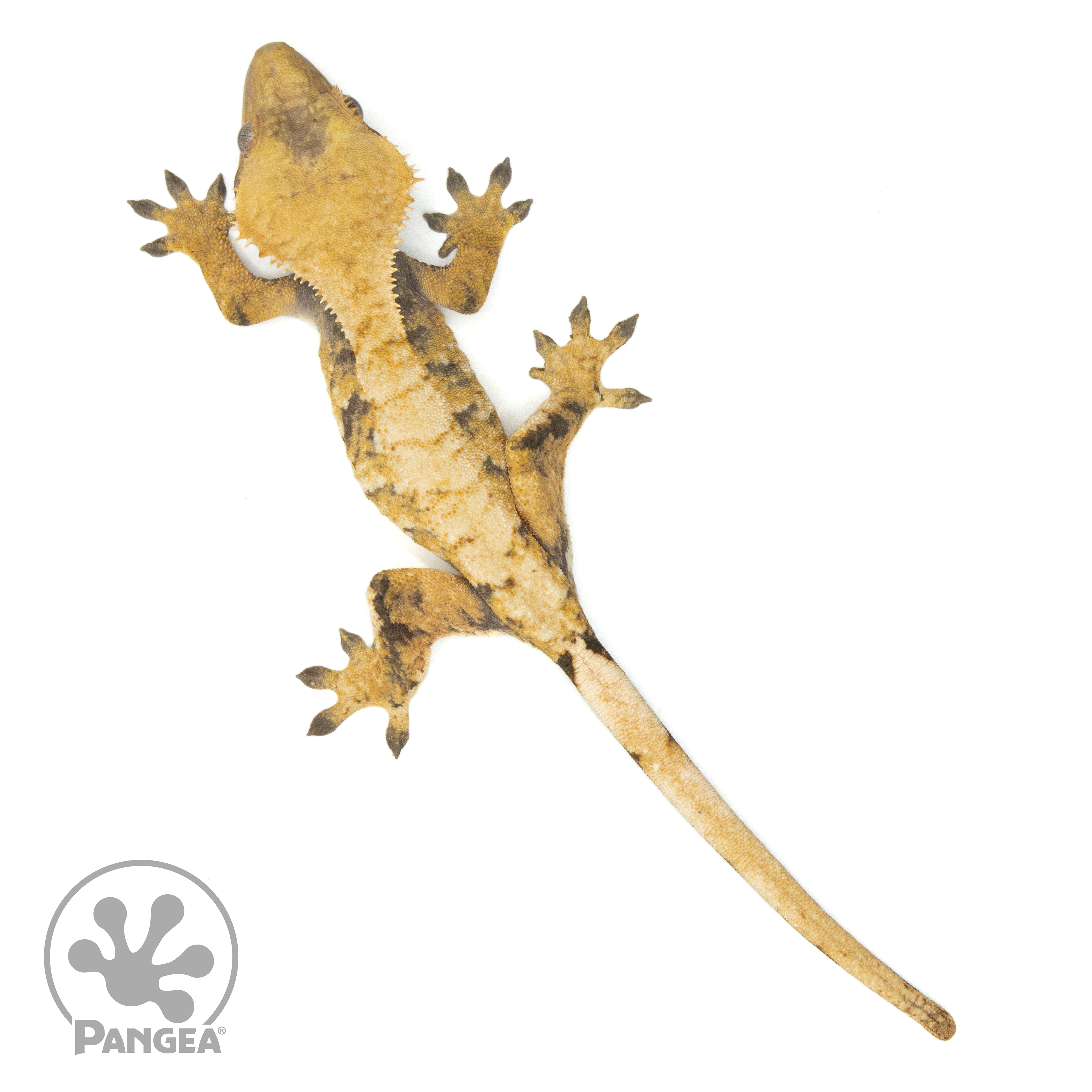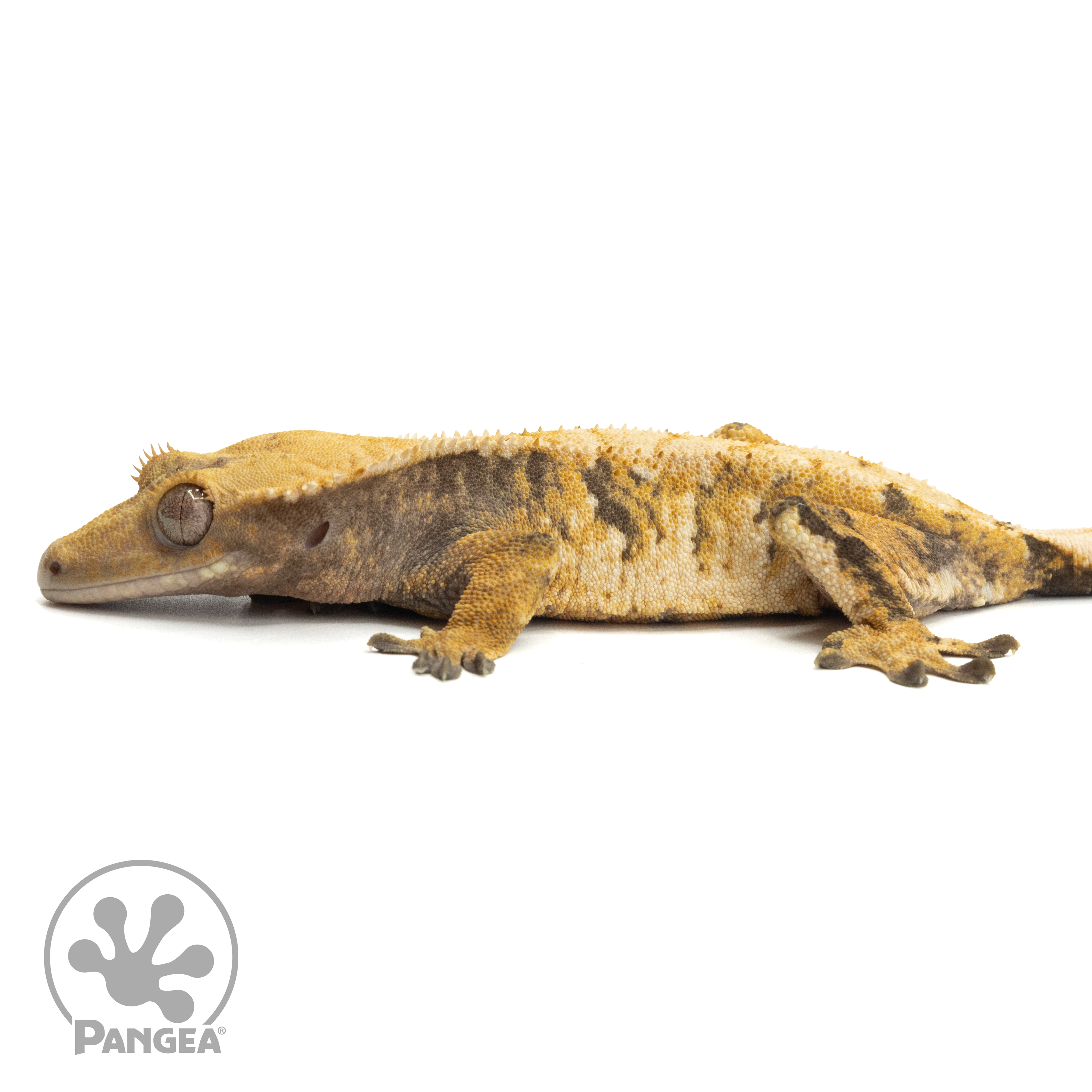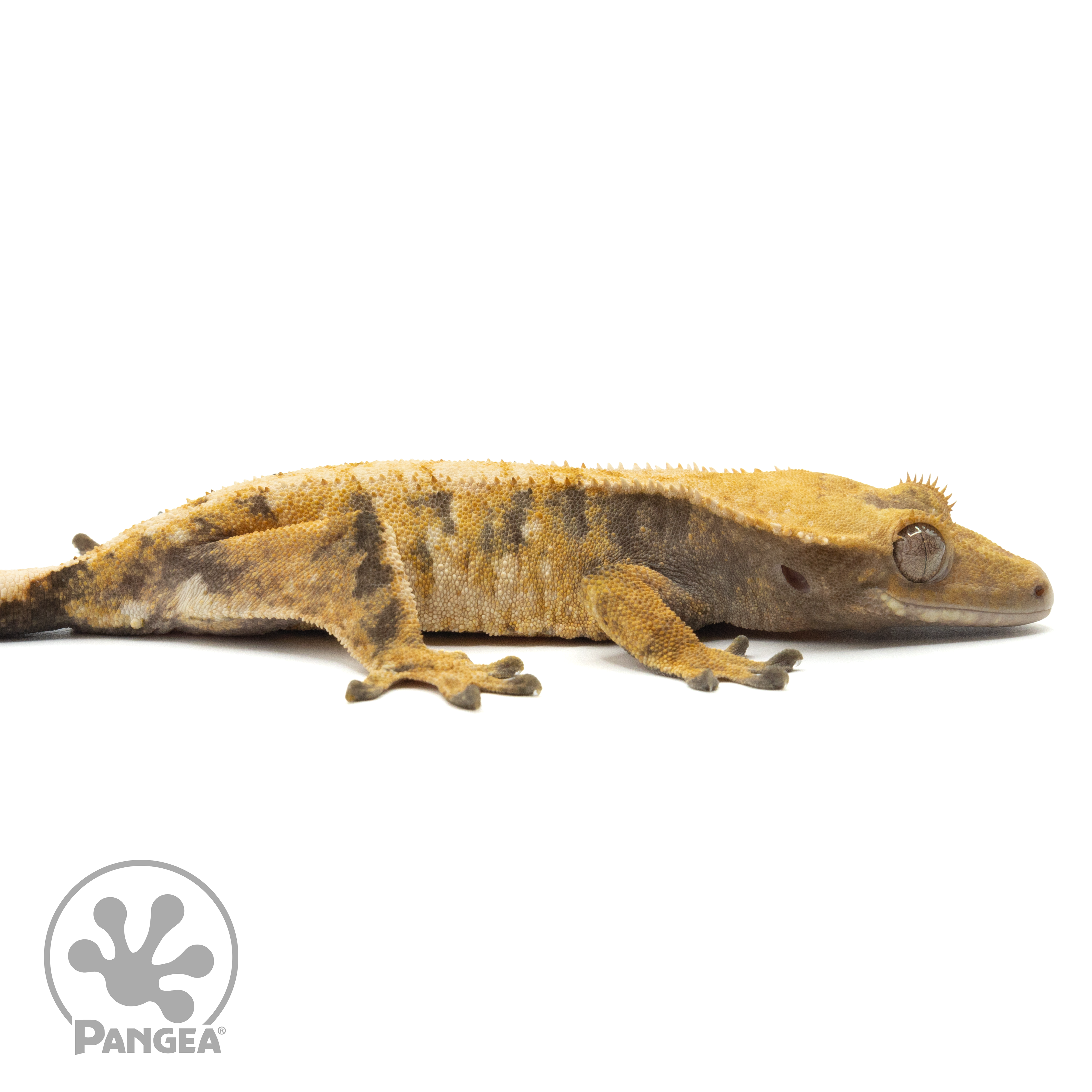 As a female XXX Tricolor Crested Gecko, she boats an extreme harlequin pattern in tricolors cream and orange set upon a dark base. These traits make her unique and ready for breeding. A must-have for any Gecko enthusiast or breeder!