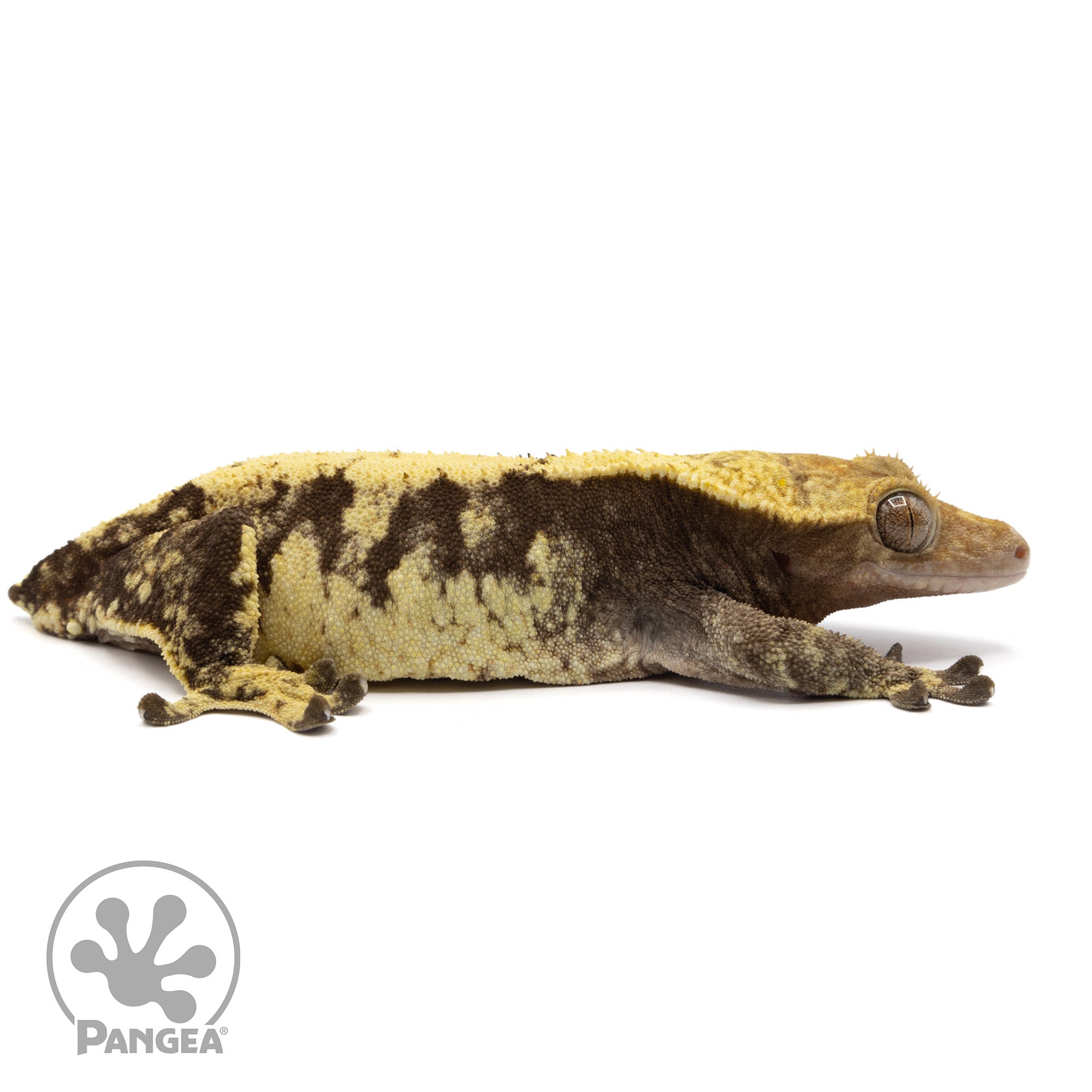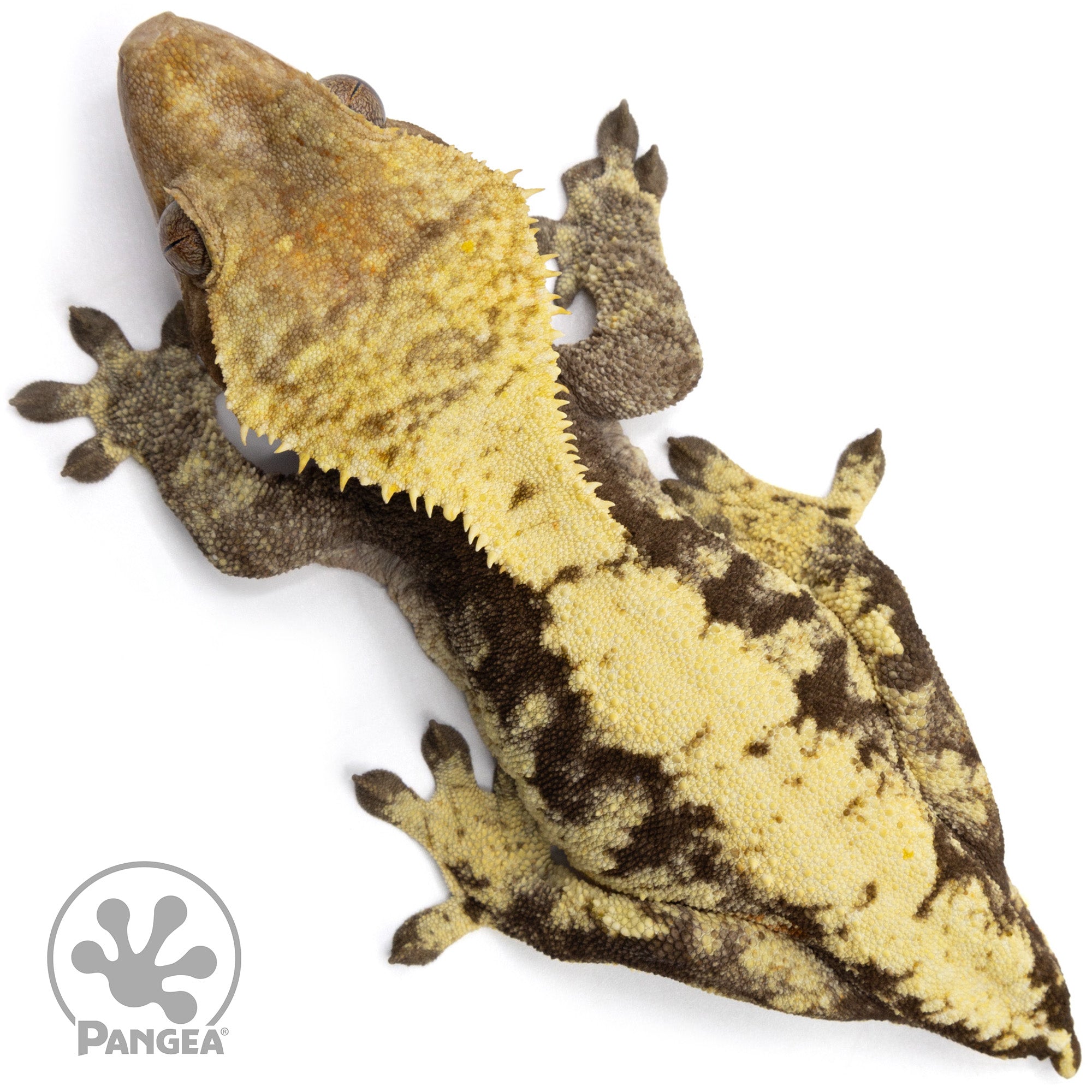 The Female XXX Crested Gecko Cr-2290 boasts a striking yellow XXX pattern set upon a dark base. Plus, she is ready to breed, making her a must-have addition to any reptile breeding program!