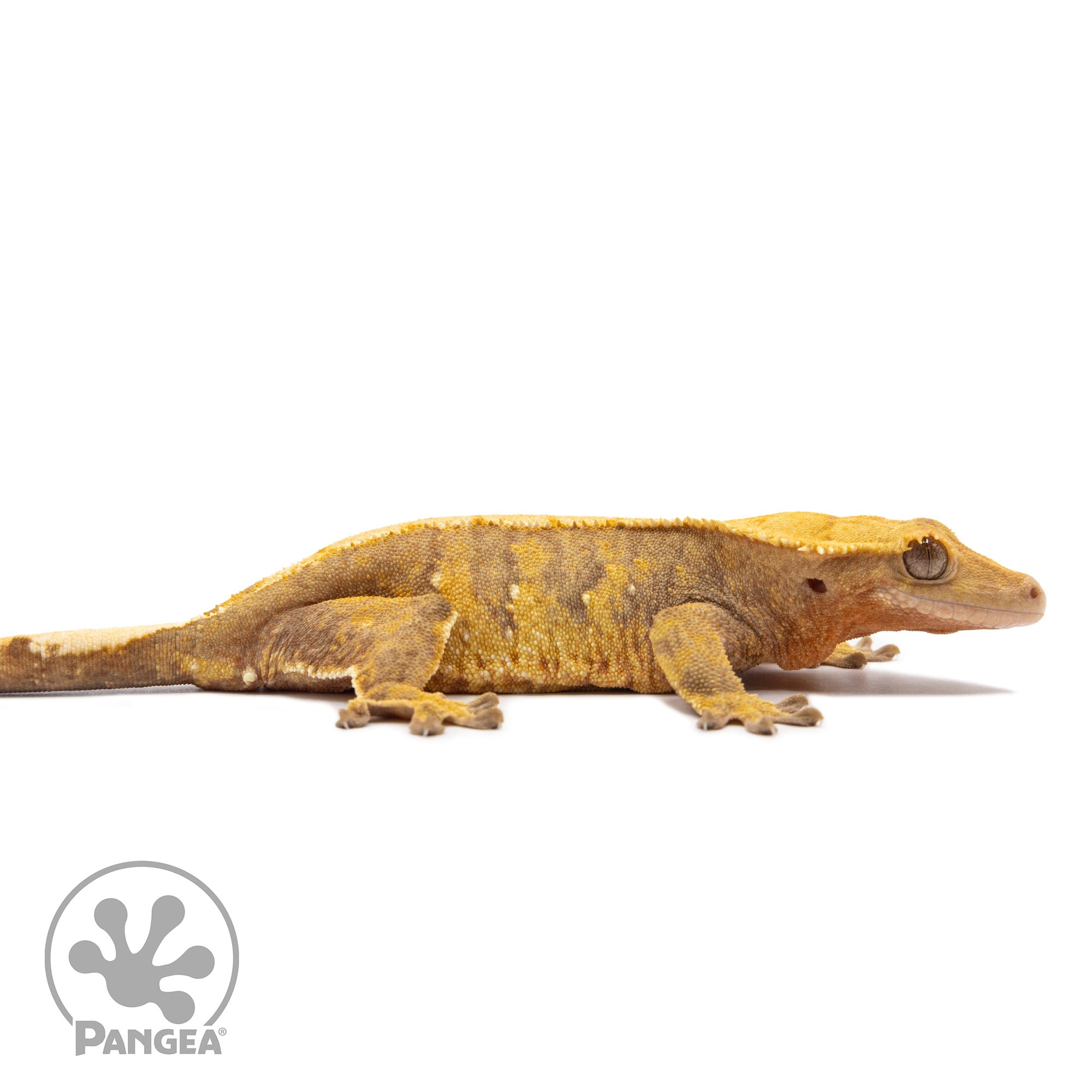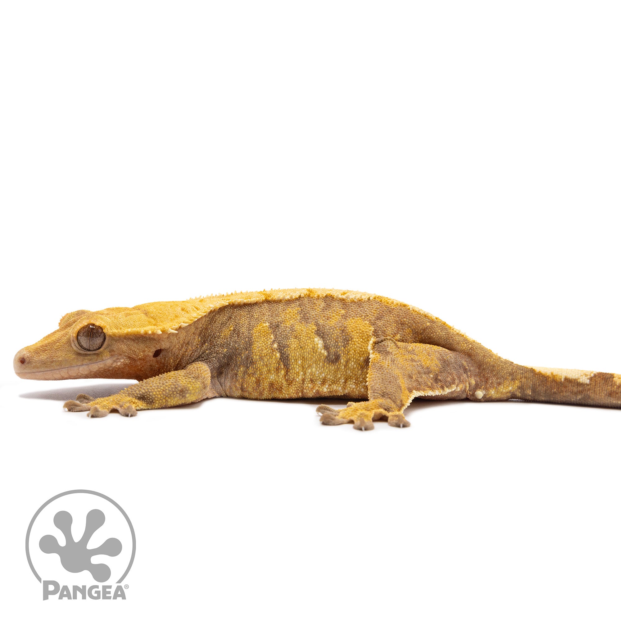 This female Crested Gecko (Cr-2758) boasts a unique Extreme Harlequin pattern featuring vibrant yellow, cream portholes, and a soft red base. Ready to breed, she makes the perfect addition for anyone looking for a yellow crestie!