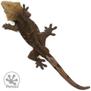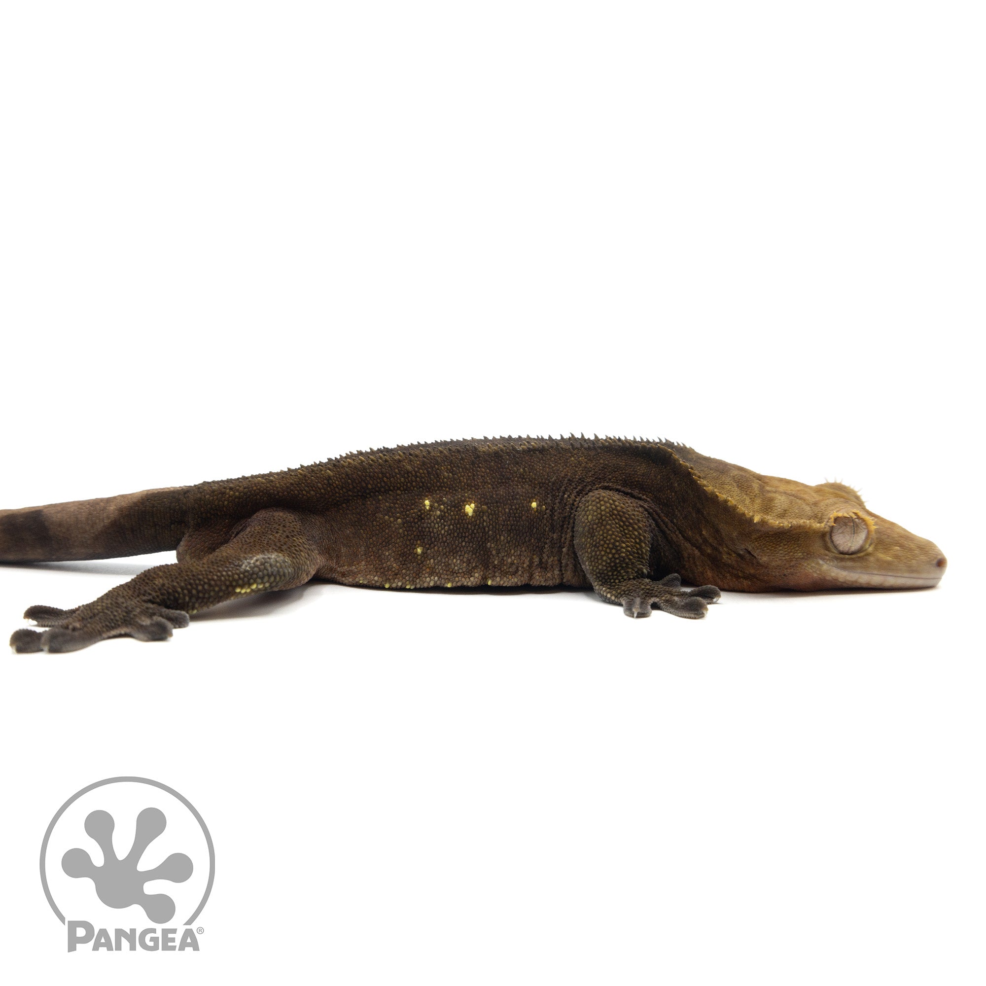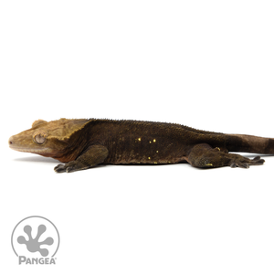 This male Black Patternless Crested Gecko Cr-1826 is ready to breed with his phantom pattern and striking black base with portholes. He's ready to breed, making him a desirable addition to any collection.
