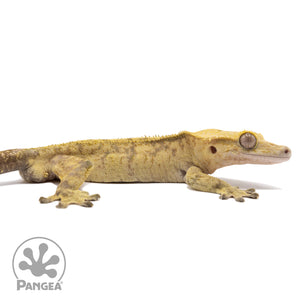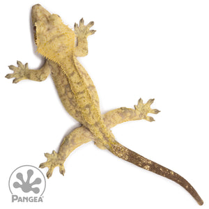 The Male Brindle Crested Gecko Cr-2410 showcases a vibrant yellow base with a distinctive brindle pattern. Ready to breed, this gecko is an excellent choice for anyone wanting to enhance their breeding program or add a stunning gecko to their collection!