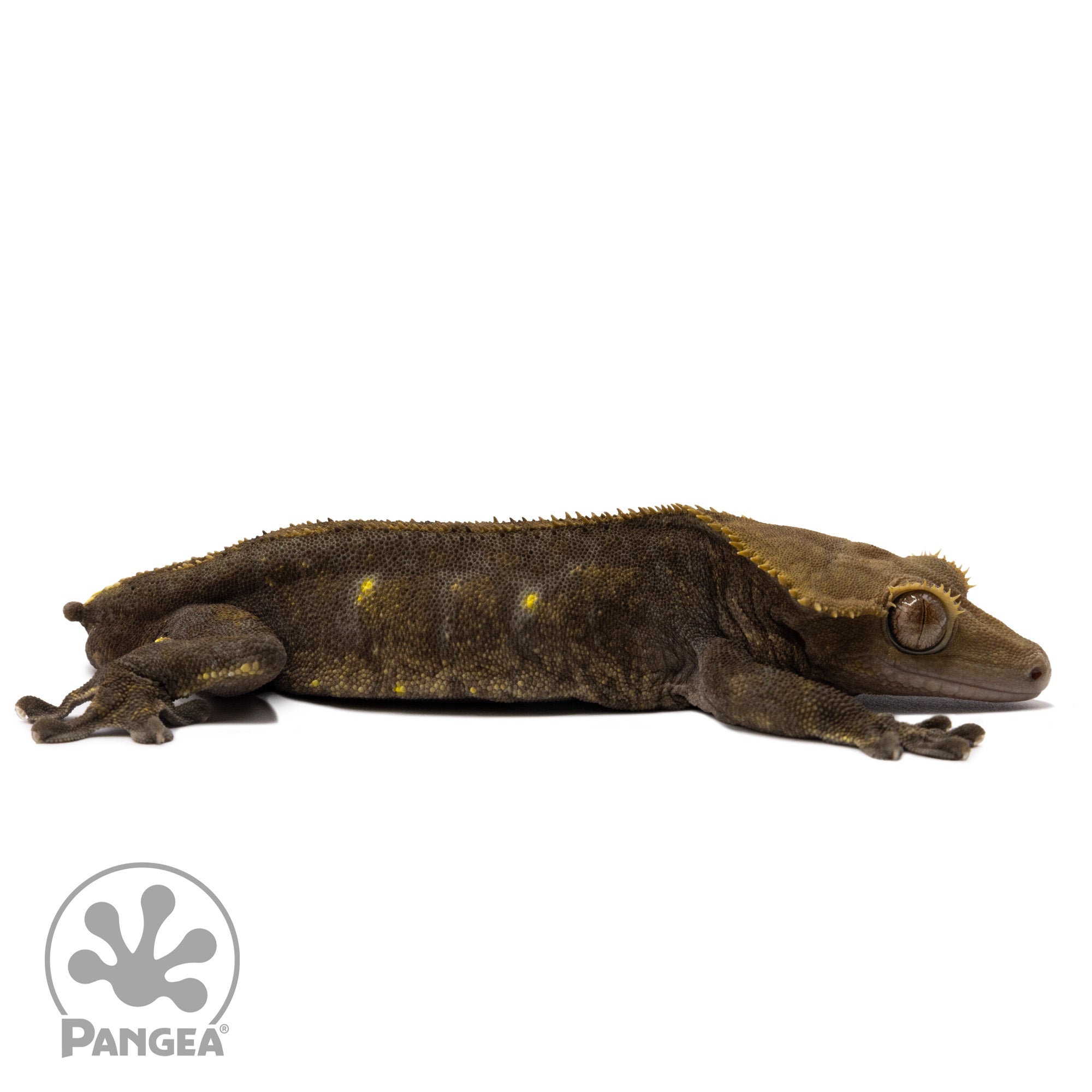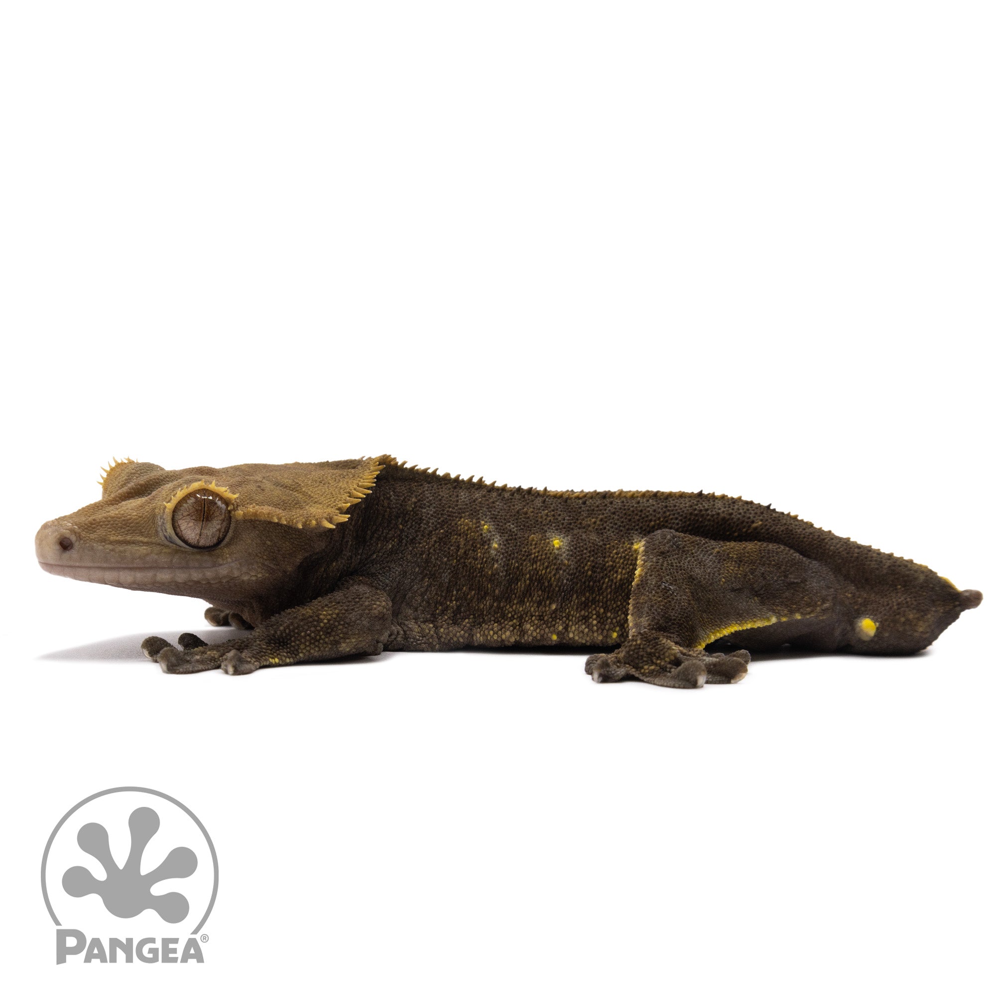 The Male Dark Phantom Crested Gecko Cr-2324 features a striking phantom pattern and dark base. With unique porthole markings and the ability to breed, this gecko is a valuable addition to any collection.