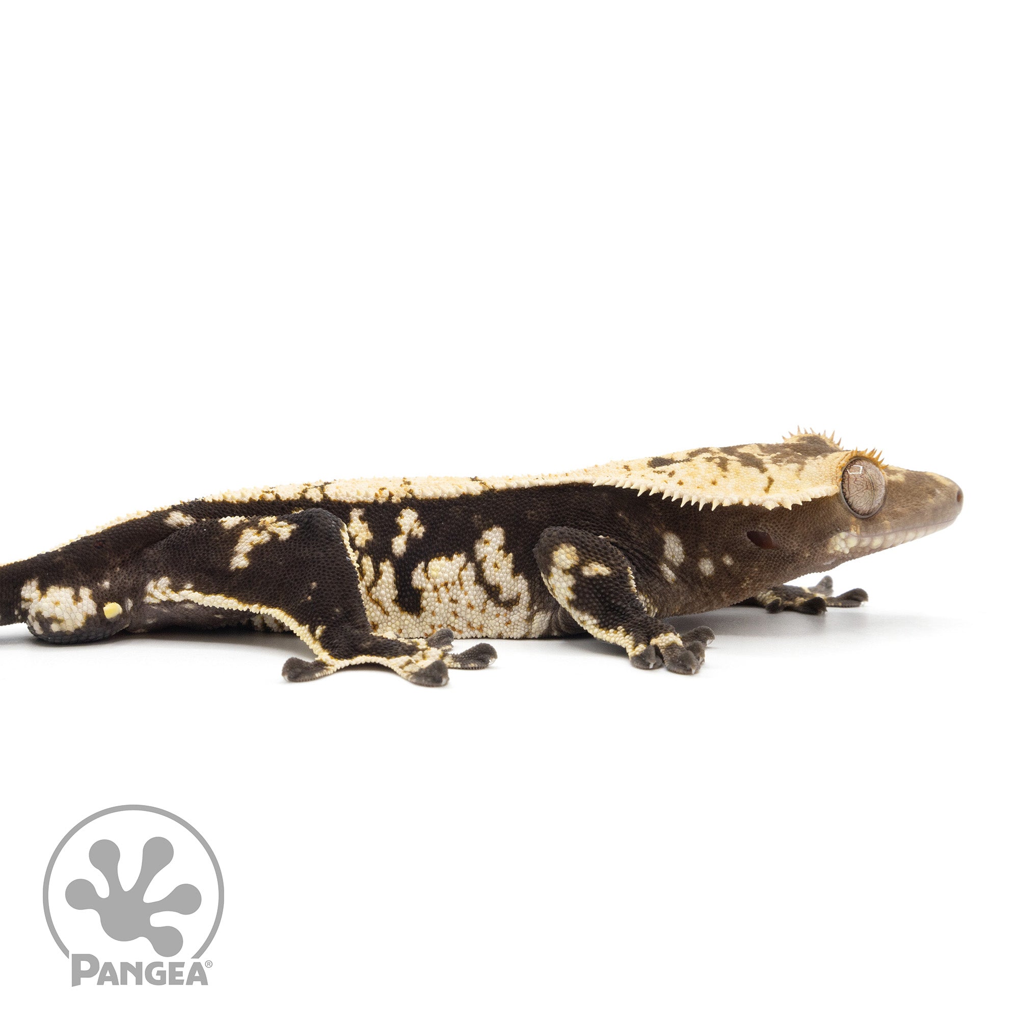 Discover the beauty of the Male Harlequin Crested Gecko Cr-2097. With a harlequin pattern in cream set upon a black base, this gecko stands out from the rest. As a bonus, he is ready to breed!