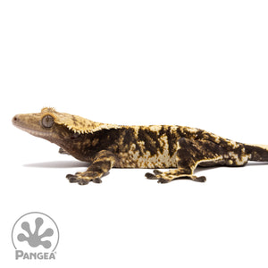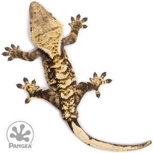 This Male Extreme Harlequin Crested Gecko (Cr-1645) features an intense yellow and white pattern with a dark base. His vibrant hues and ability to breed make him the perfect choice for any crested gecko enthusiast.