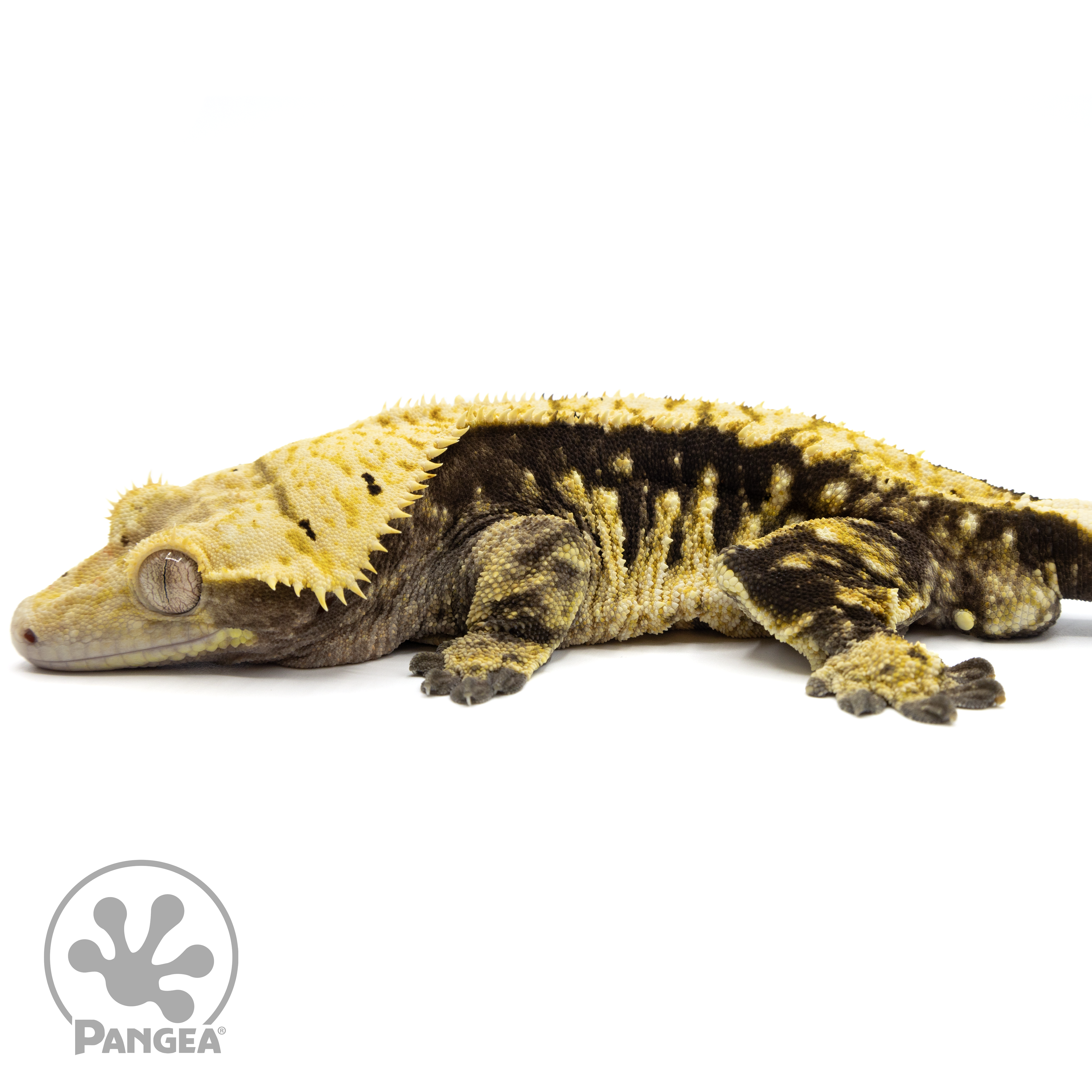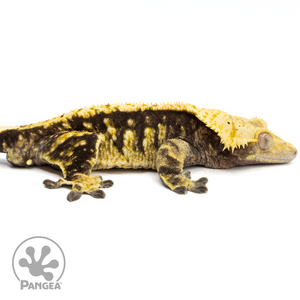 This Male Extreme Harlequin Crested Gecko features an incredible yellow pattern, a black base, and snowflake markings that make him an outstanding choice for breeding. Get your hands on this beautiful gecko today!