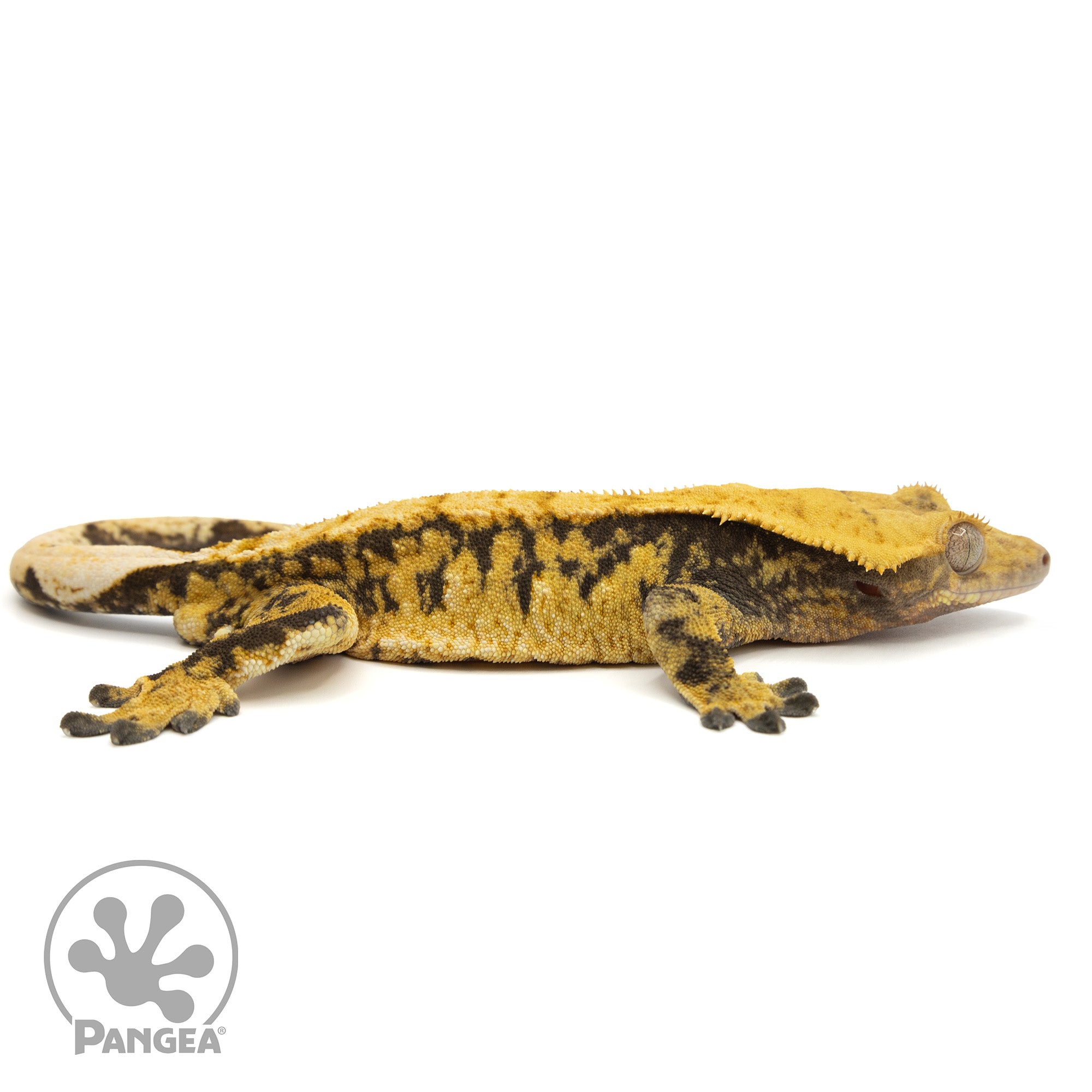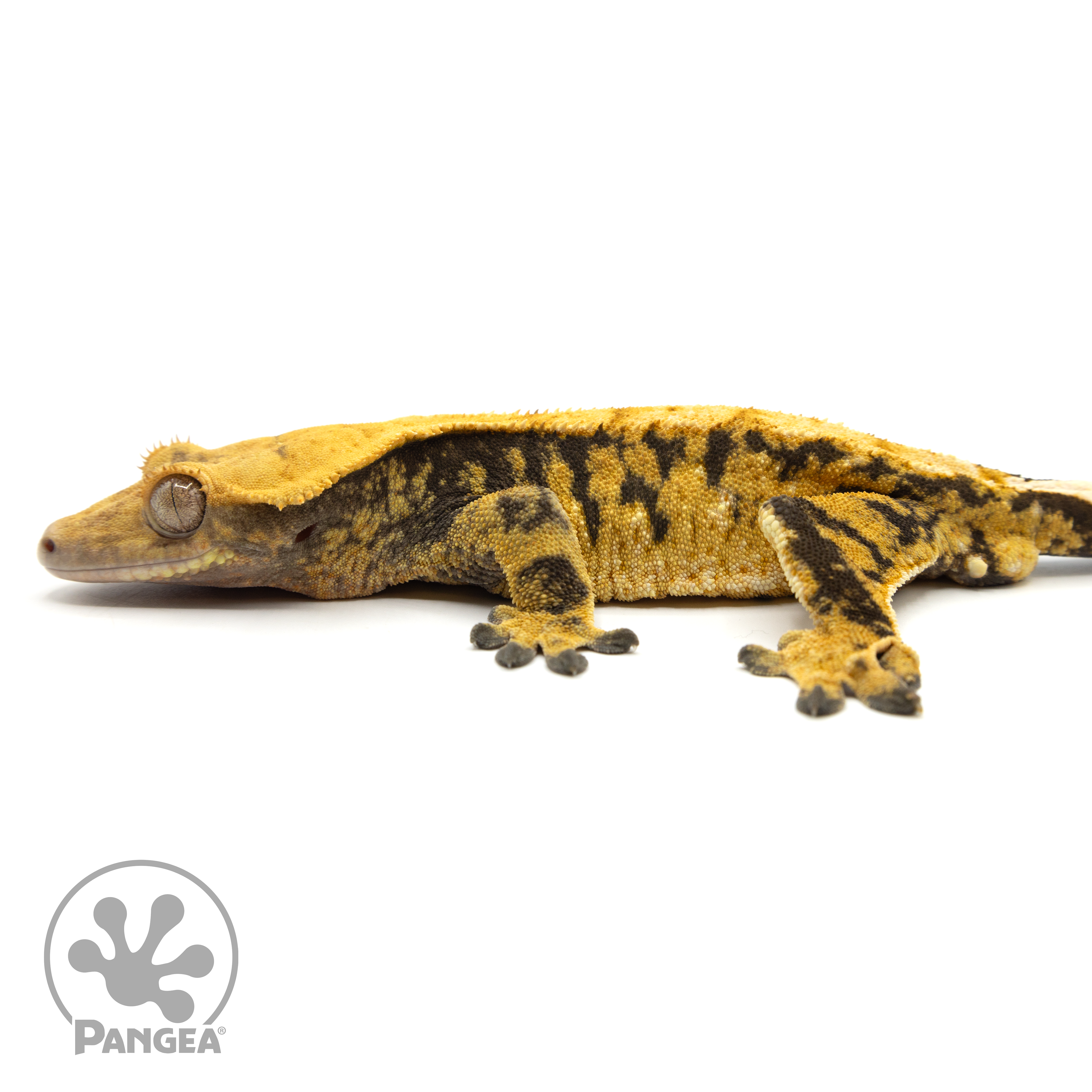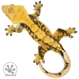 The Male Extreme Harlequin Crested Gecko Cr-1825 boasts a striking pattern of yellow and cream on a black base. With his ready-to-breed status, this gecko is perfect for those looking to expand their breeding program. Add an eye-catching addition to your collection with this beautiful gecko.