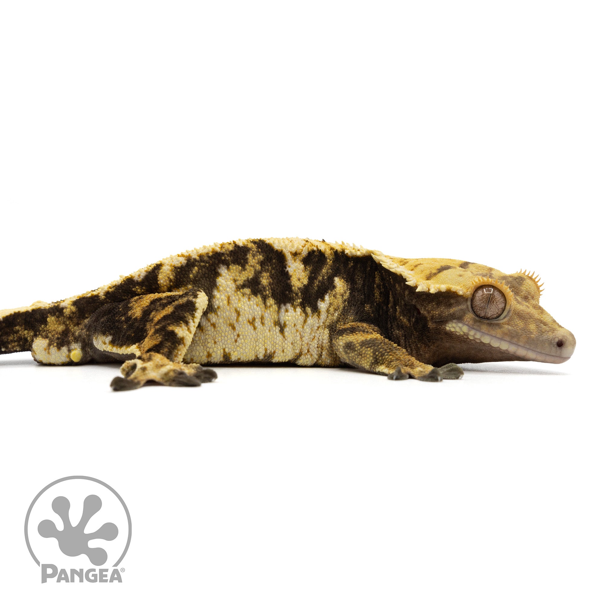 The Male Extreme Harlequin Crested Gecko Cr-1843 boasts a beautiful extreme yellow and cream pattern over a black base. With his striking features, this gecko is ready to breed and will make a stunning addition to any collection.