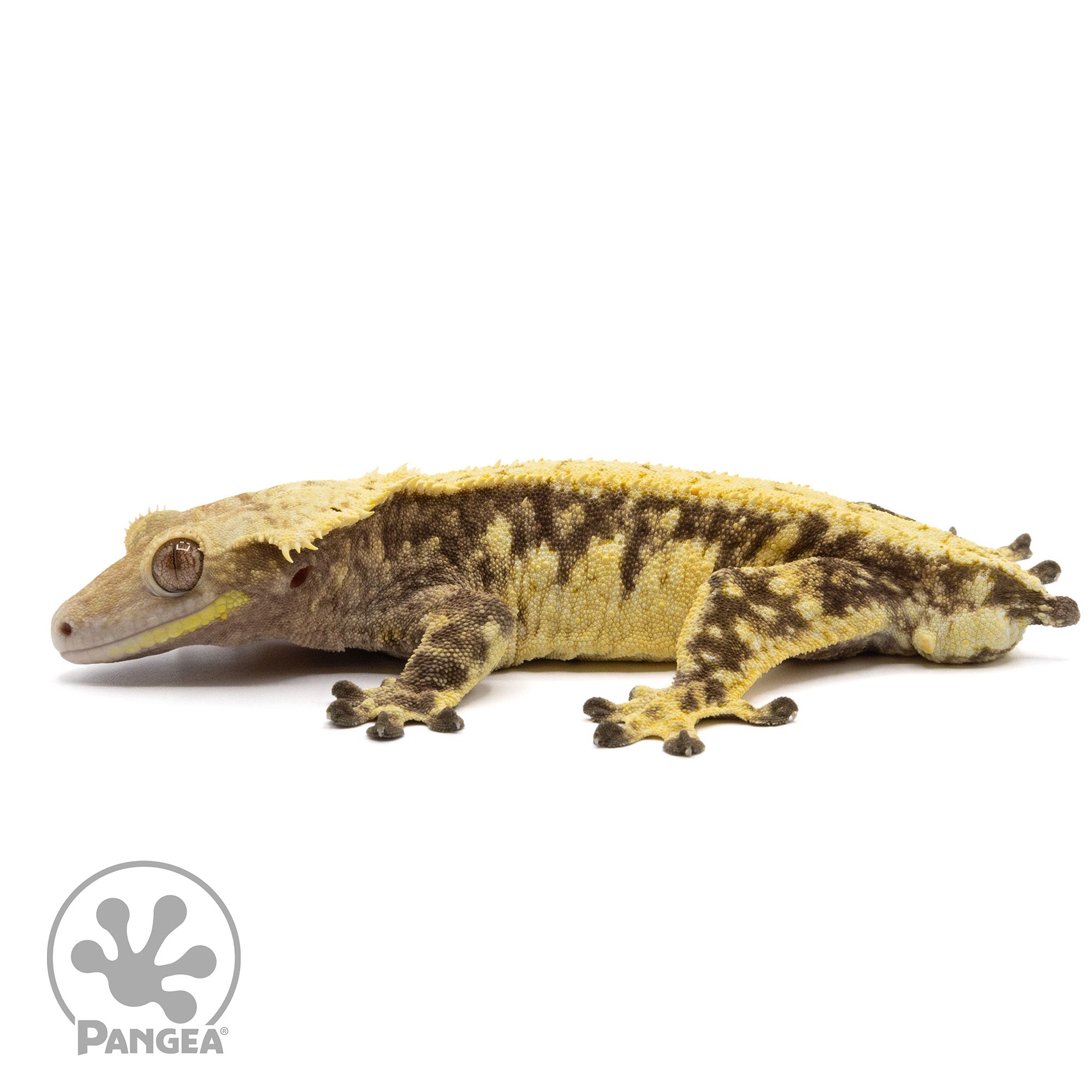 The Male Extreme Harlequin Crested Gecko Cr-2025 features a stunning yellow pattern and a dark base, giving him an eye-catching look. This gecko is ready to breed and make a statement in any collection!