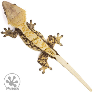This Male Extreme Harlequin Crested Gecko offers a striking combination of yellow and cream patterns on a dark base. This gecko is ready to breed and is perfect for any reptile enthusiast looking to add a distinctive and eye-catching addition to their collection.