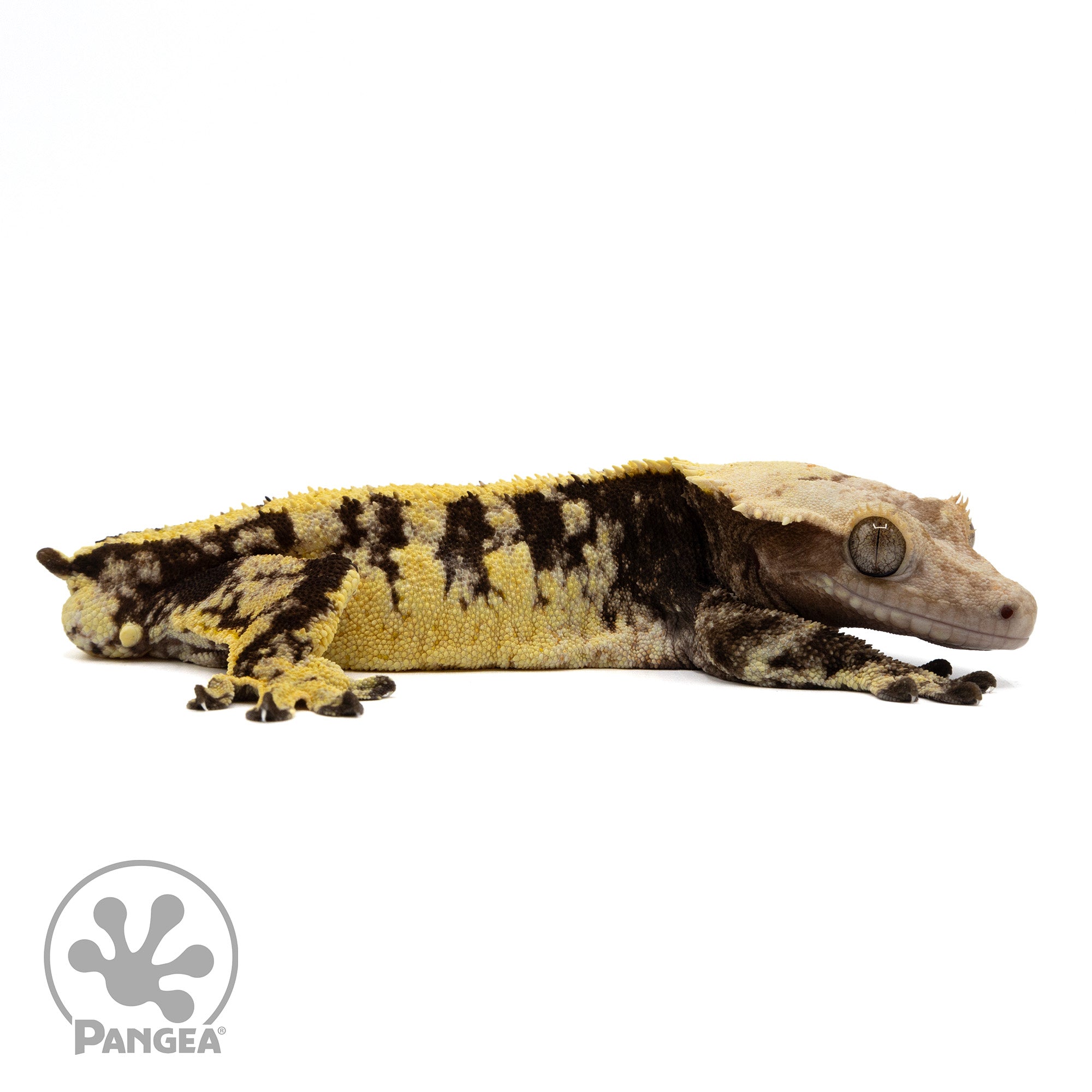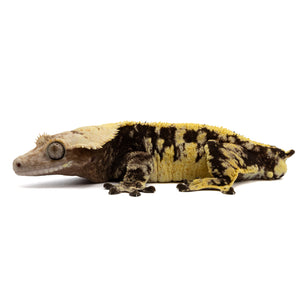 Introducing the Male Extreme Harlequin Crested Gecko Cr-2332. With his stunning yellow extreme pattern and striking black base, this gecko will surely stand out. Not only is this gecko a beautiful addition to any reptile collection but he's also ready for breeding!