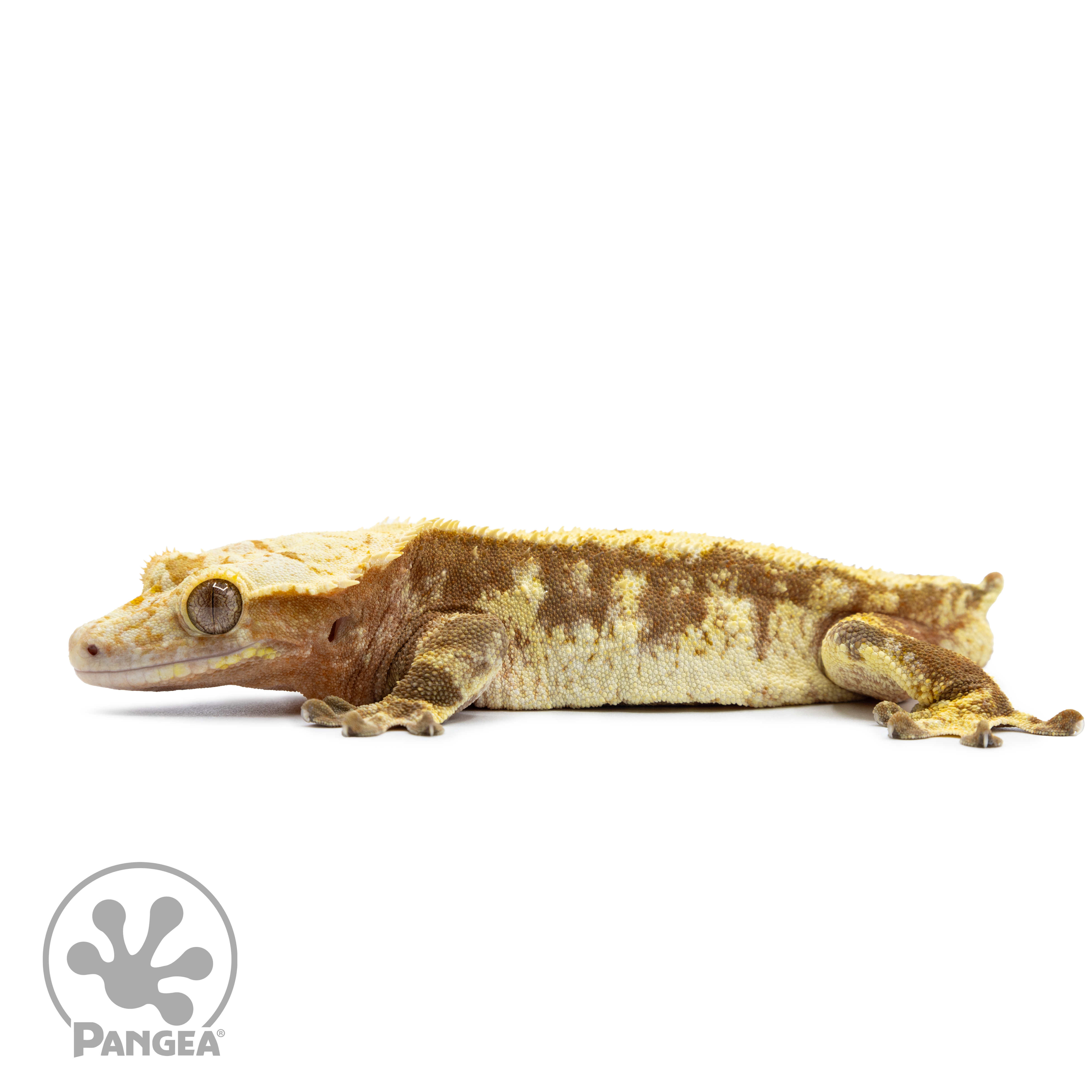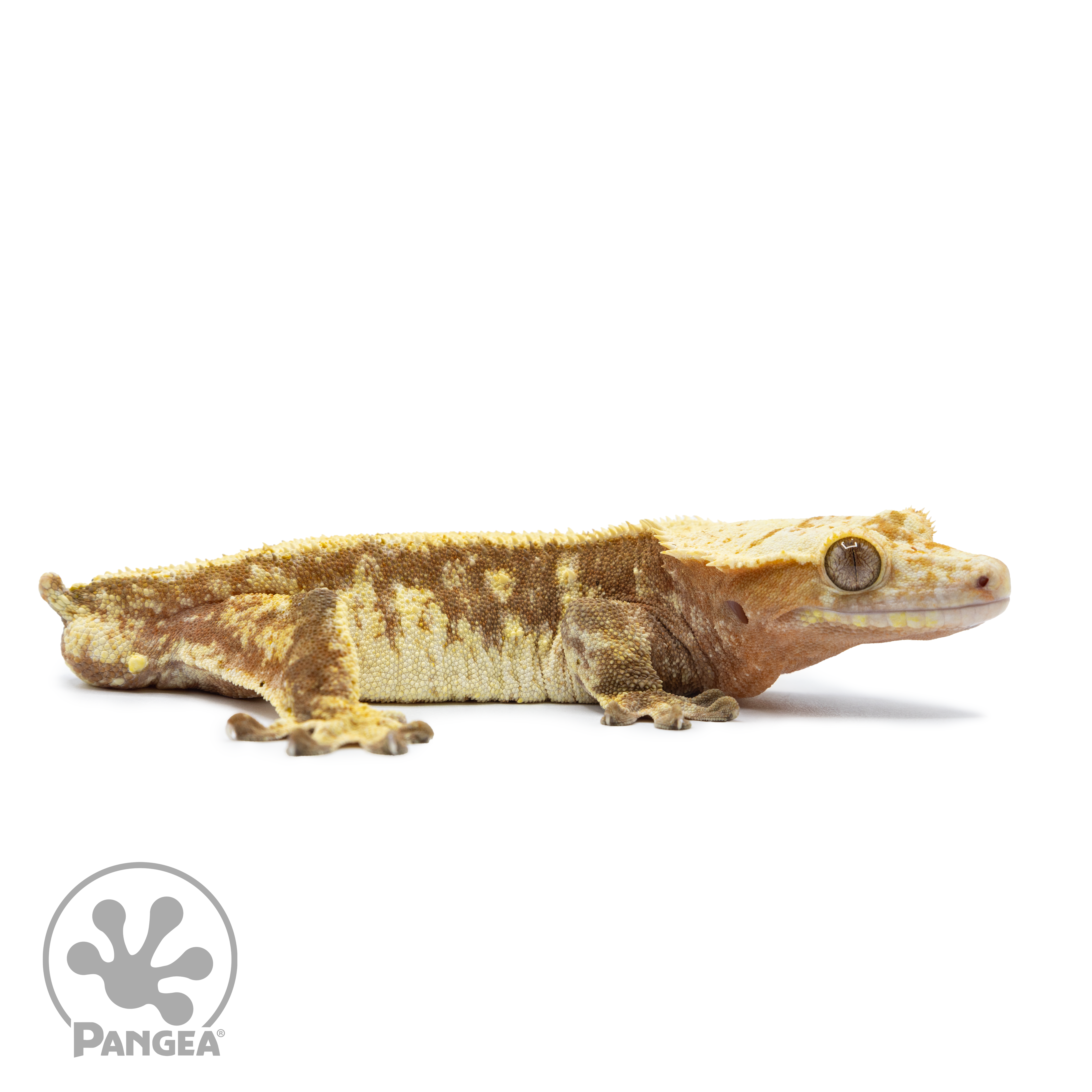 The Male Extreme Harlequin Crested Gecko Cr-2532 features a striking white and yellow pattern with hints of cream and a red base, truly making it a standout in any collection. This gecko is also ready to breed, making him a valuable addition to any collection.