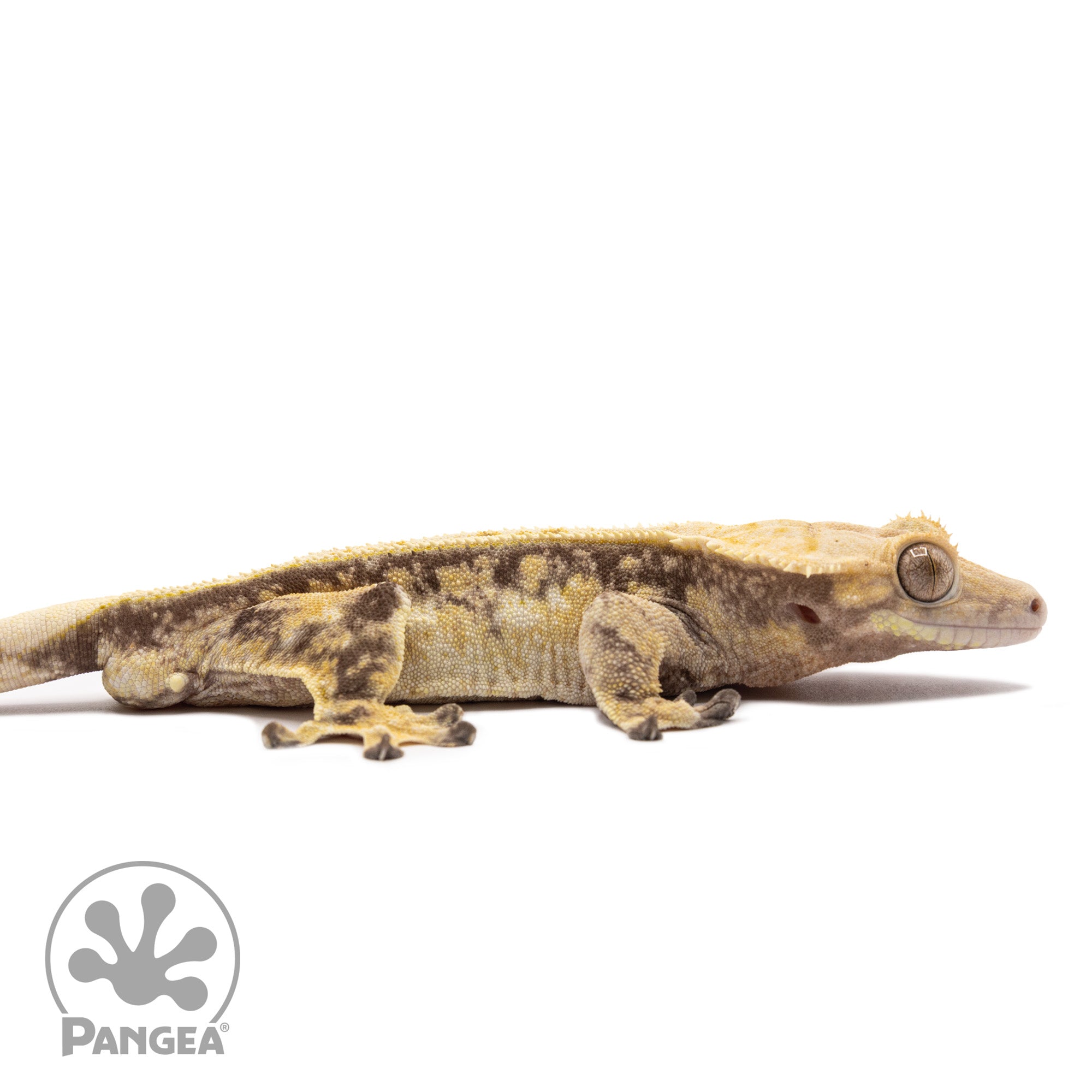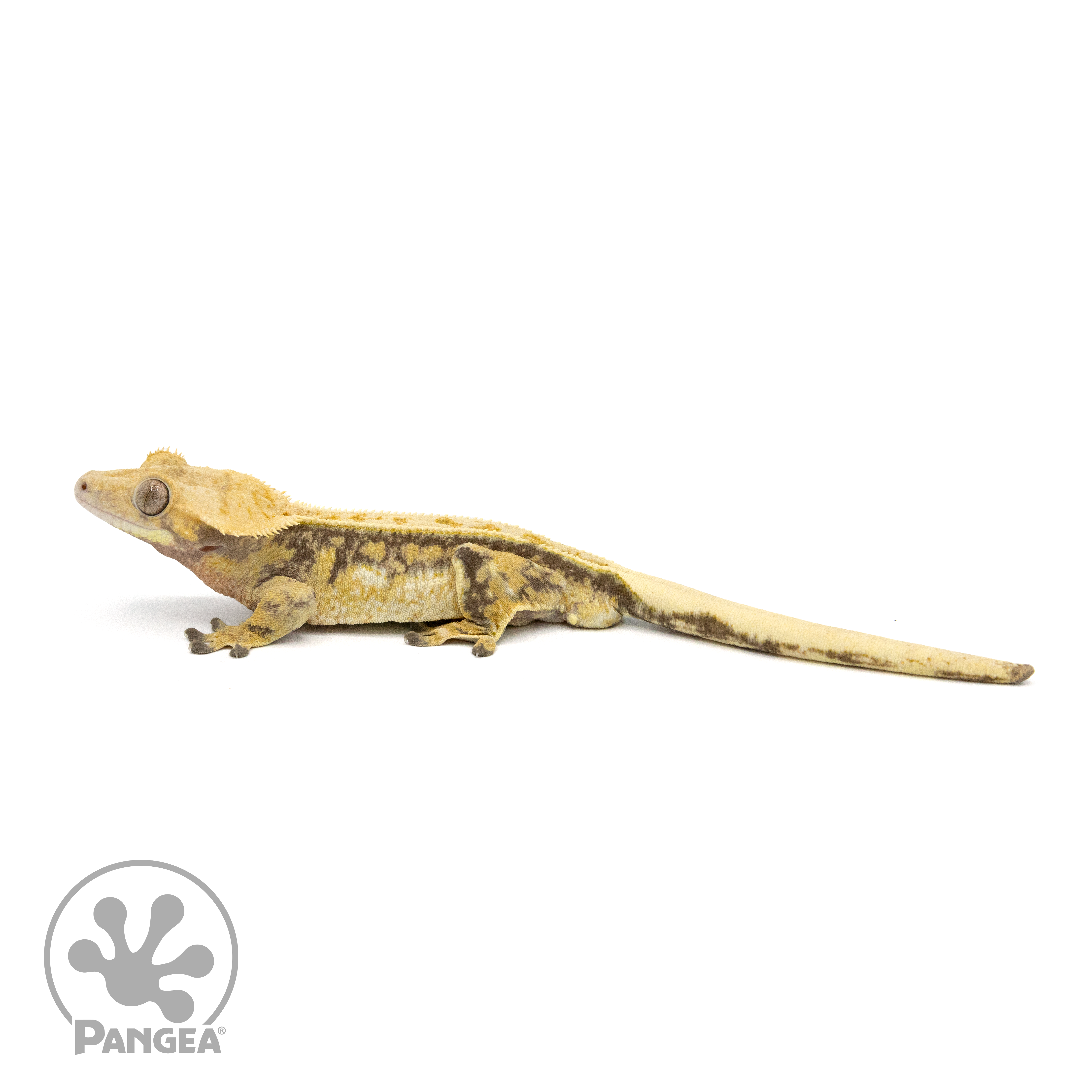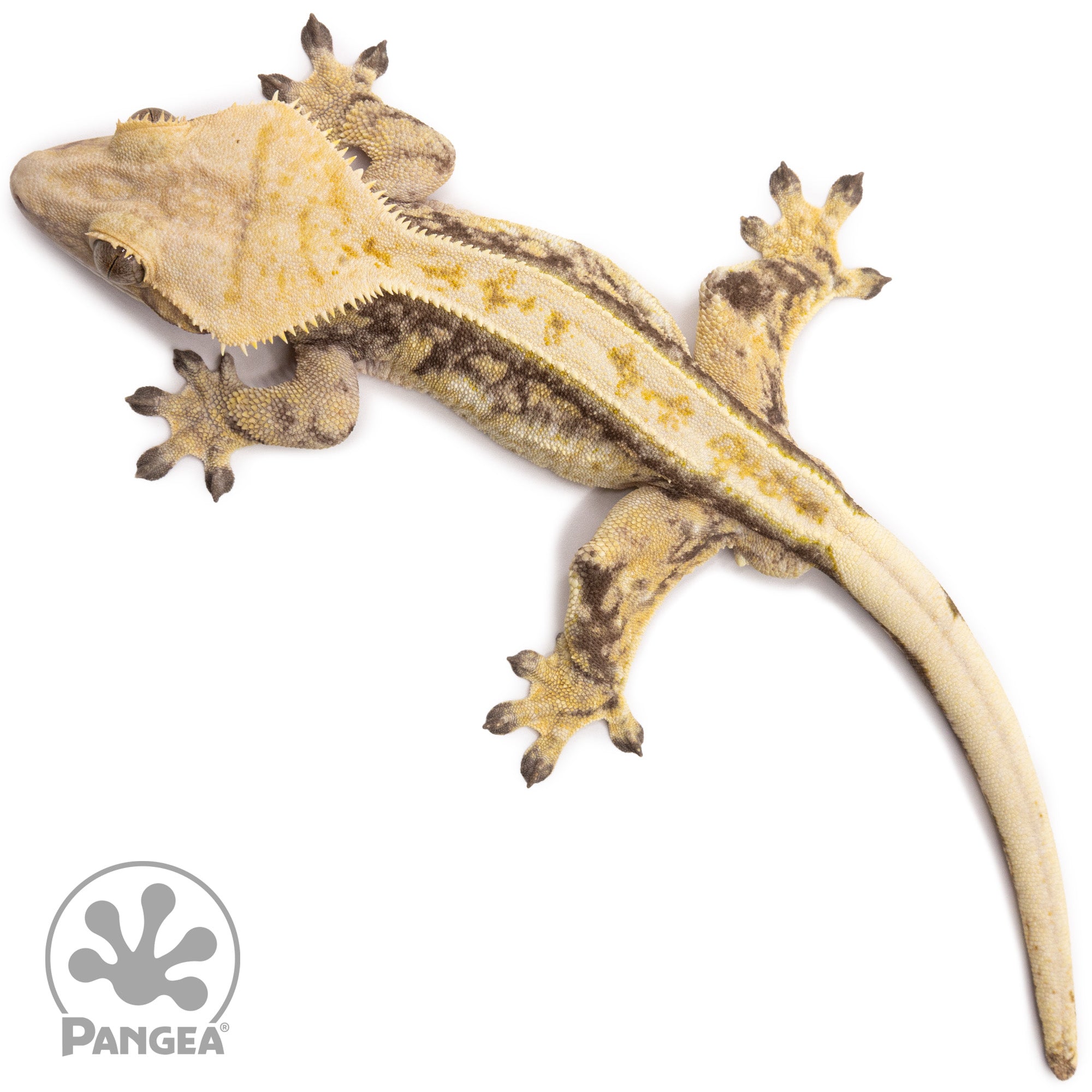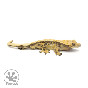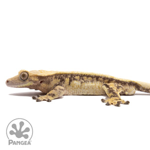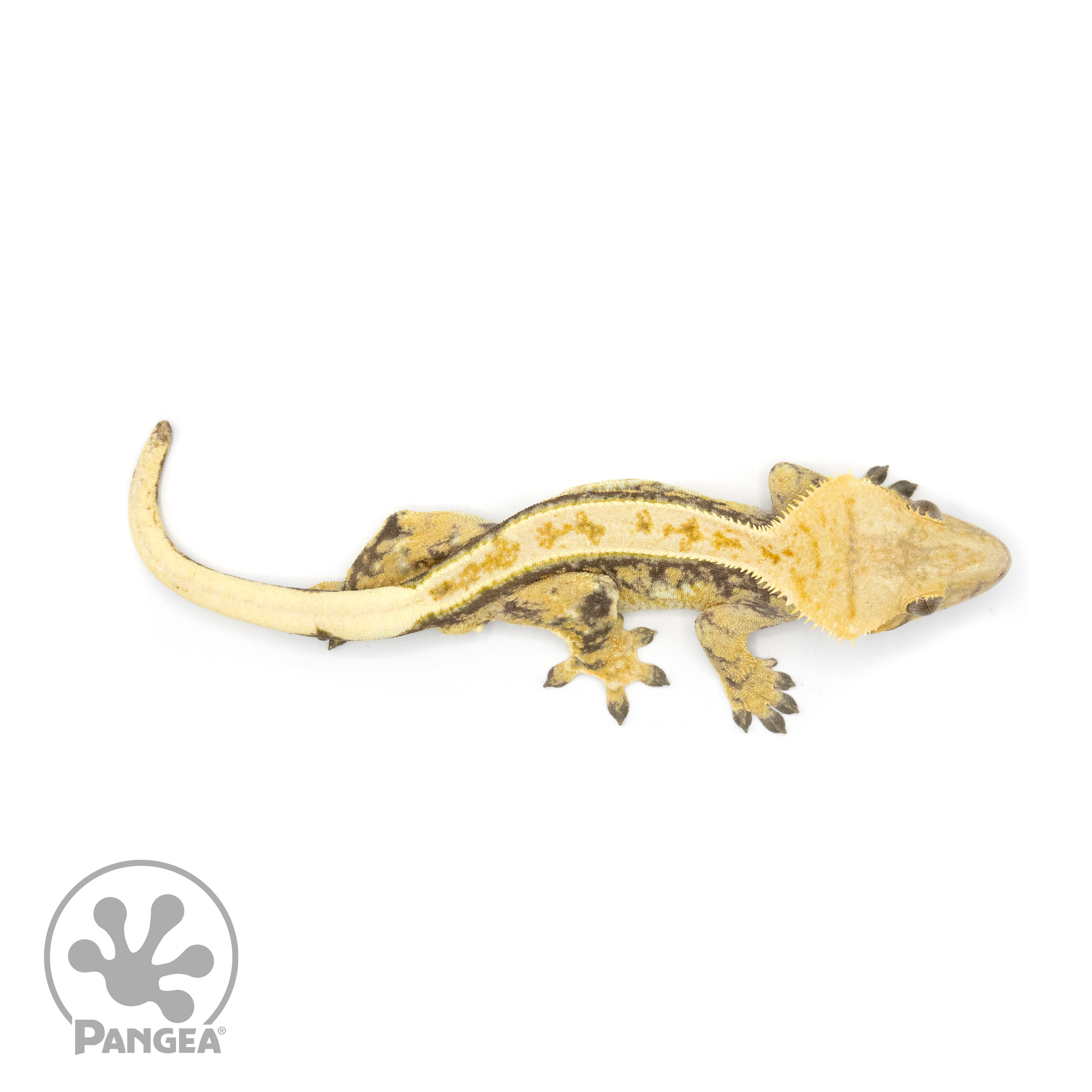 The Male Tricolor Extreme Harlequin Crested Gecko Cr-1339 has a striking tricolor combination of dark, cream, and yellow extreme pattern enhanced by full pinstriping down his dorsal. He also features snowflake markings and is ready to breed, making him a perfect addition to any gecko breeding program!