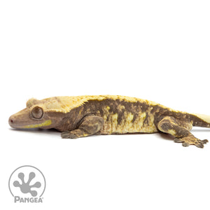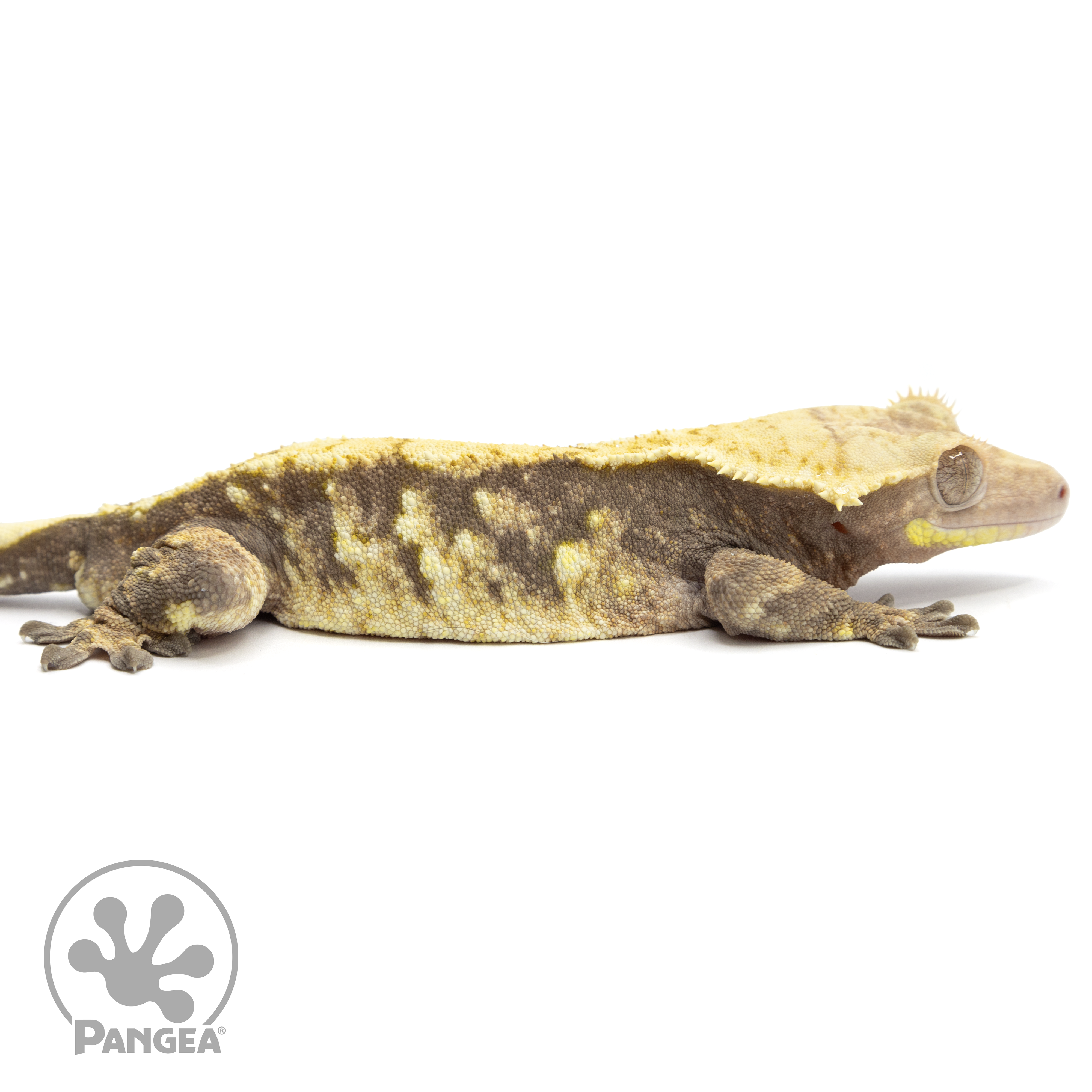 This Male Harlequin Crested Gecko Cr-1767 Boasts a beautiful cream harlequin pattern on a dark base. He is ready to breed, making him an ideal addition to any gecko collection!