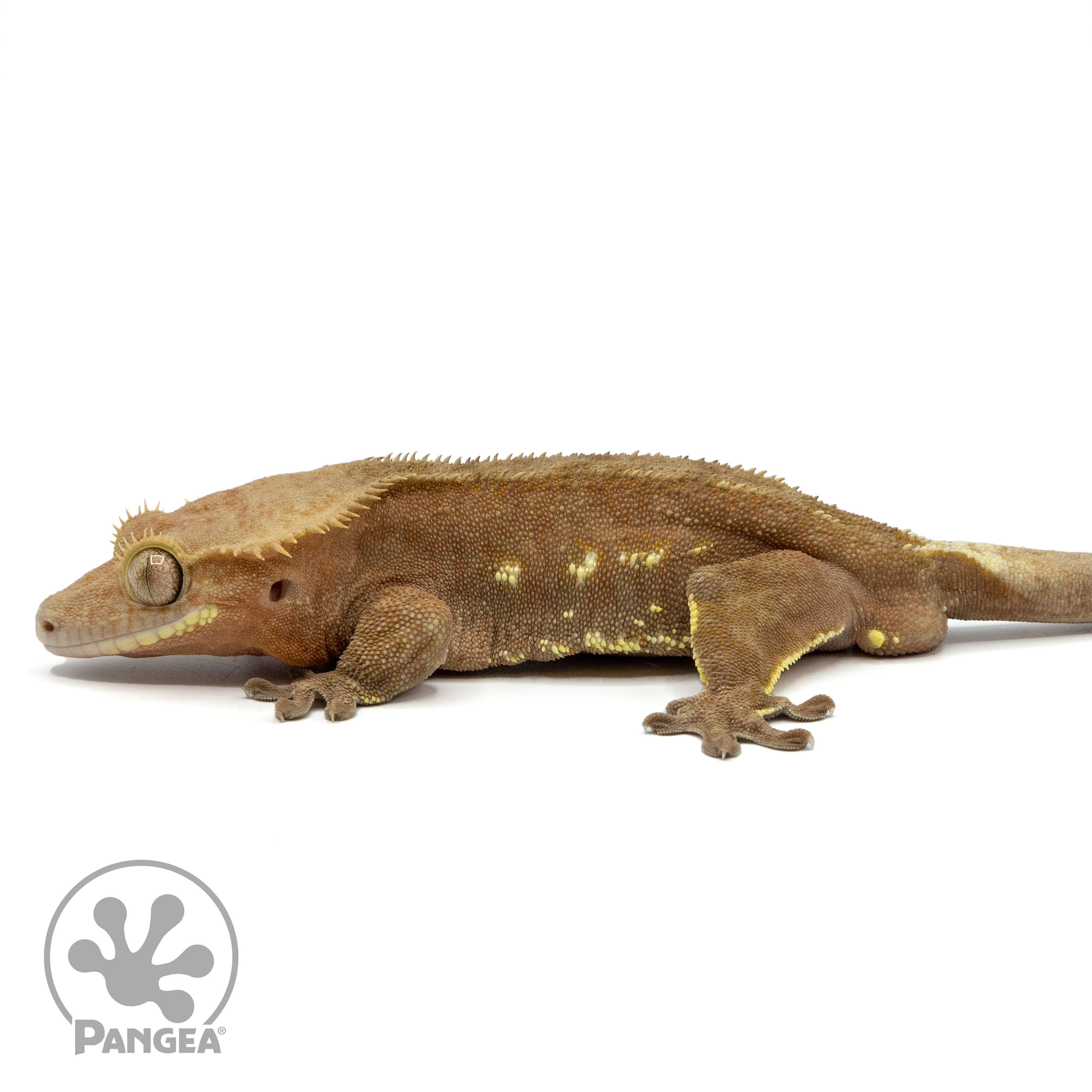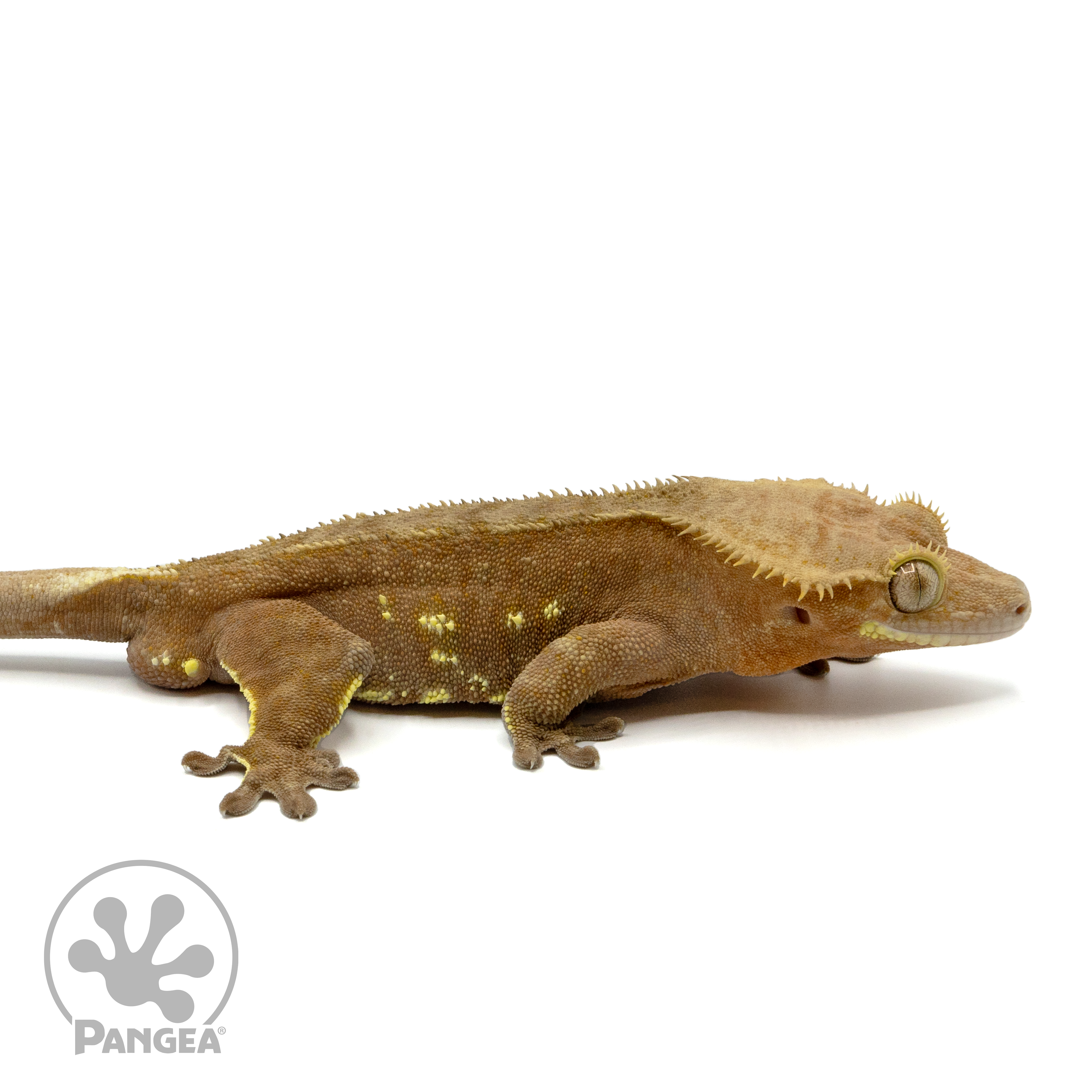 This male Red Phantom Crested Gecko Cr-1440 boasts a striking red base with unique yellow portholes and a desirable phantom pattern. He is ready to breed, making him a valuable addition to any breeding program!