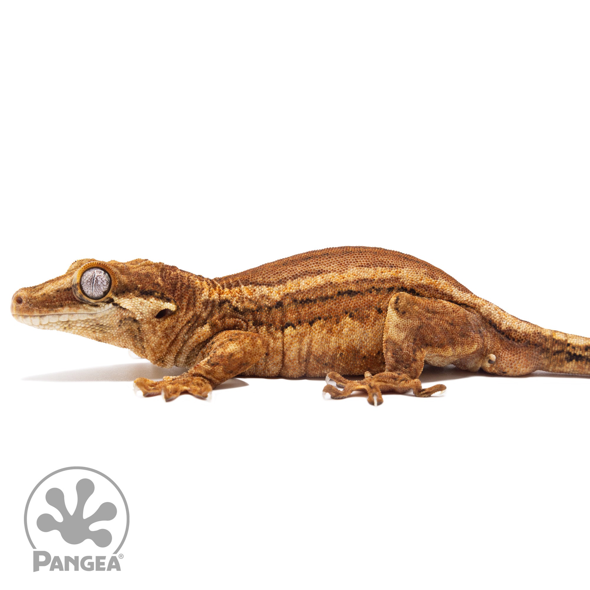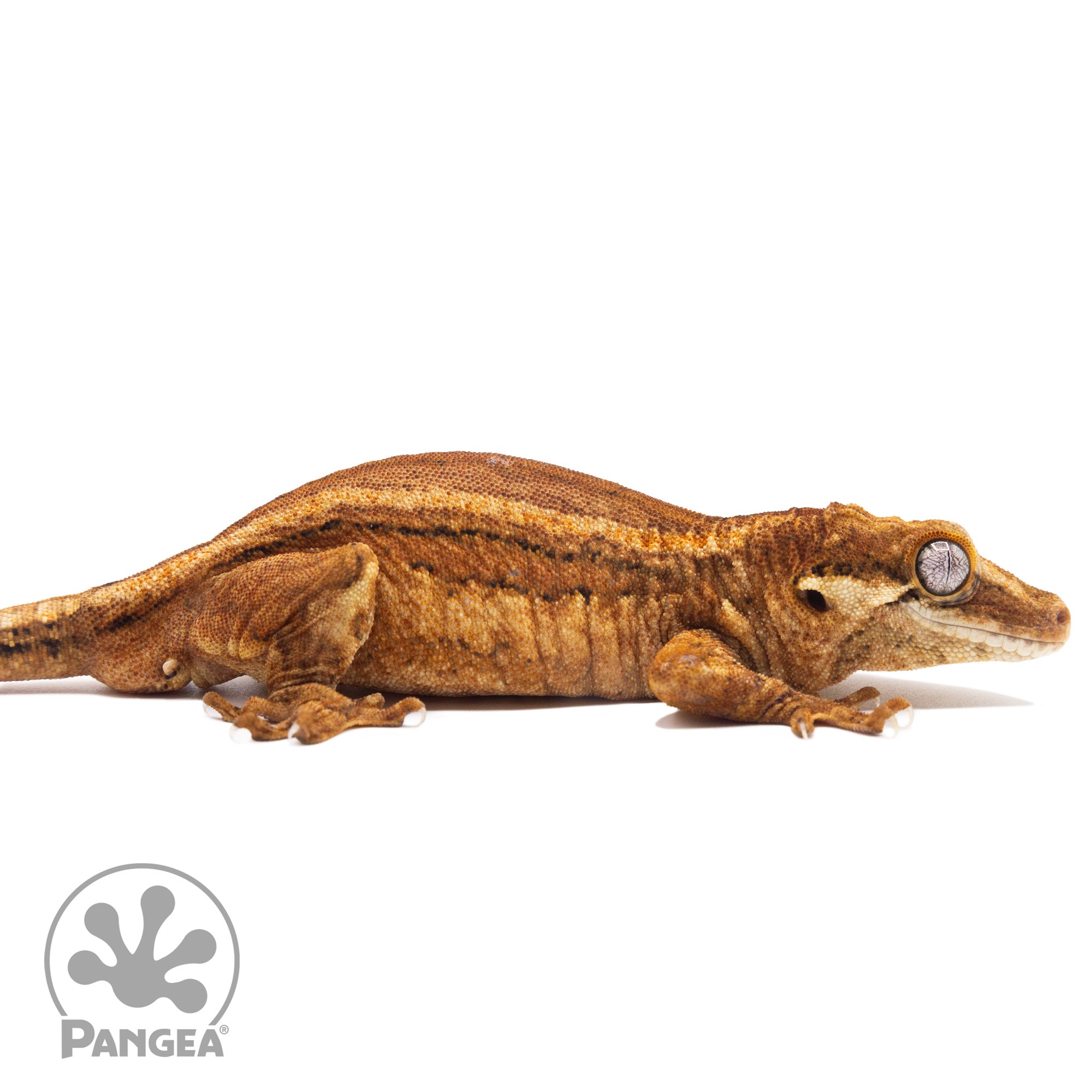 Meet the Male Red Striped Gargoyle Gecko, showcasing a vibrant combination of orange and red hues on a bright yellow base, accented by distinctive orange spectacles. He is ready to breed and is a perfect addition to any breeder or keeper's collection!