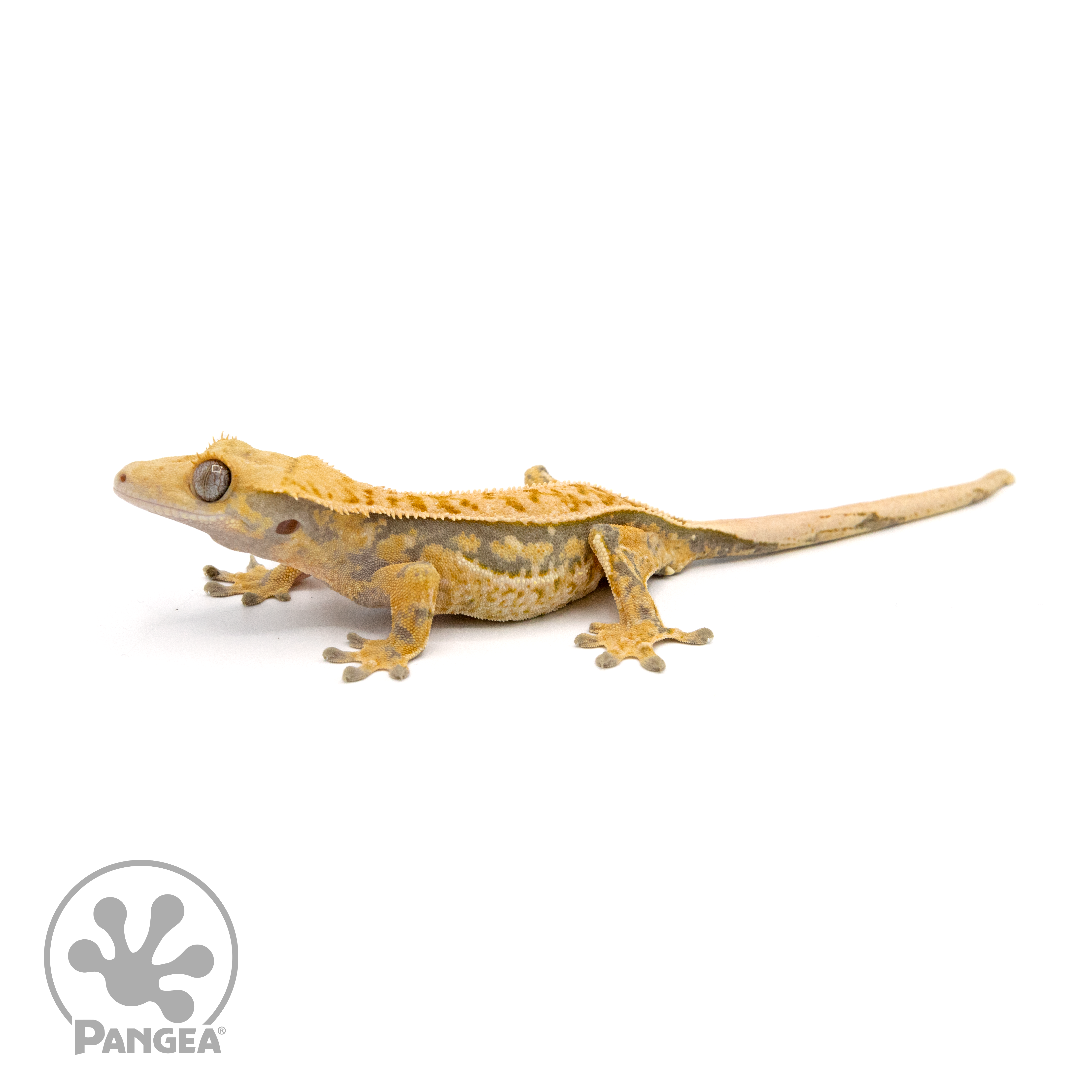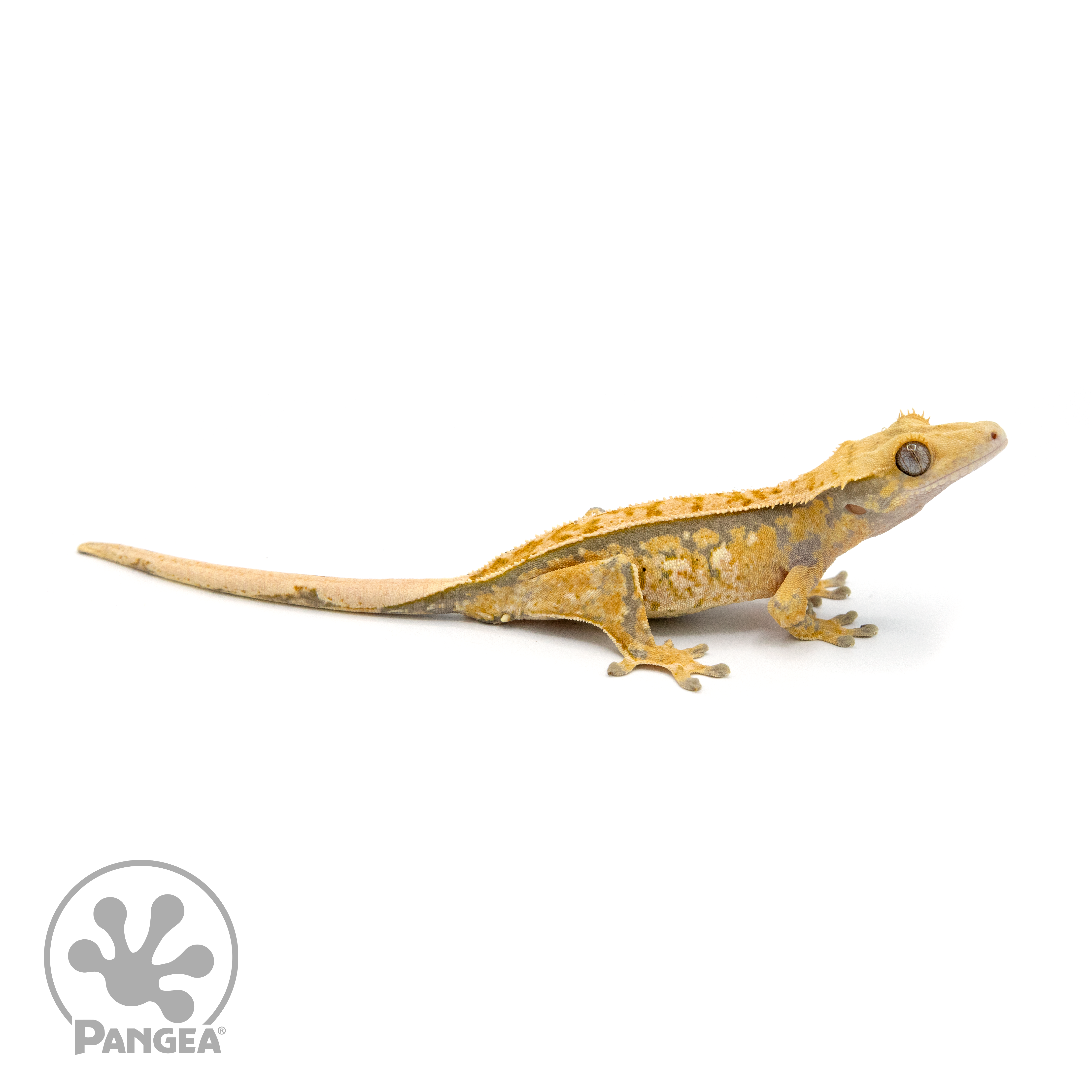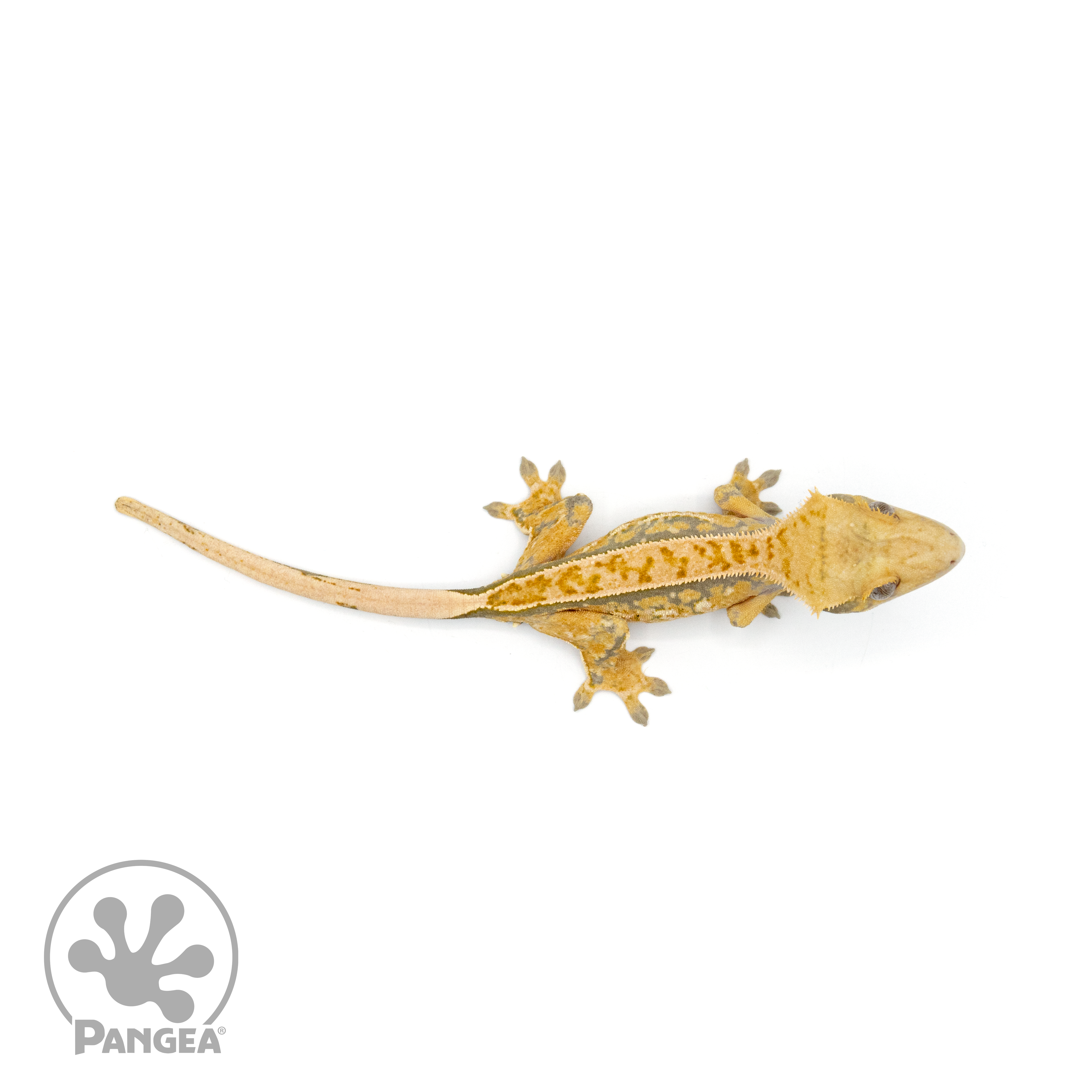 This Male Tricolor Extreme Harlequin Crested Gecko Cr-1362 is a sight to behold with an extreme tricolor pattern in vibrant orange and cream set upon a dark base. He also features full pinstriping down his dorsal. Ready to breed, he will make a stunning addition to any collection!