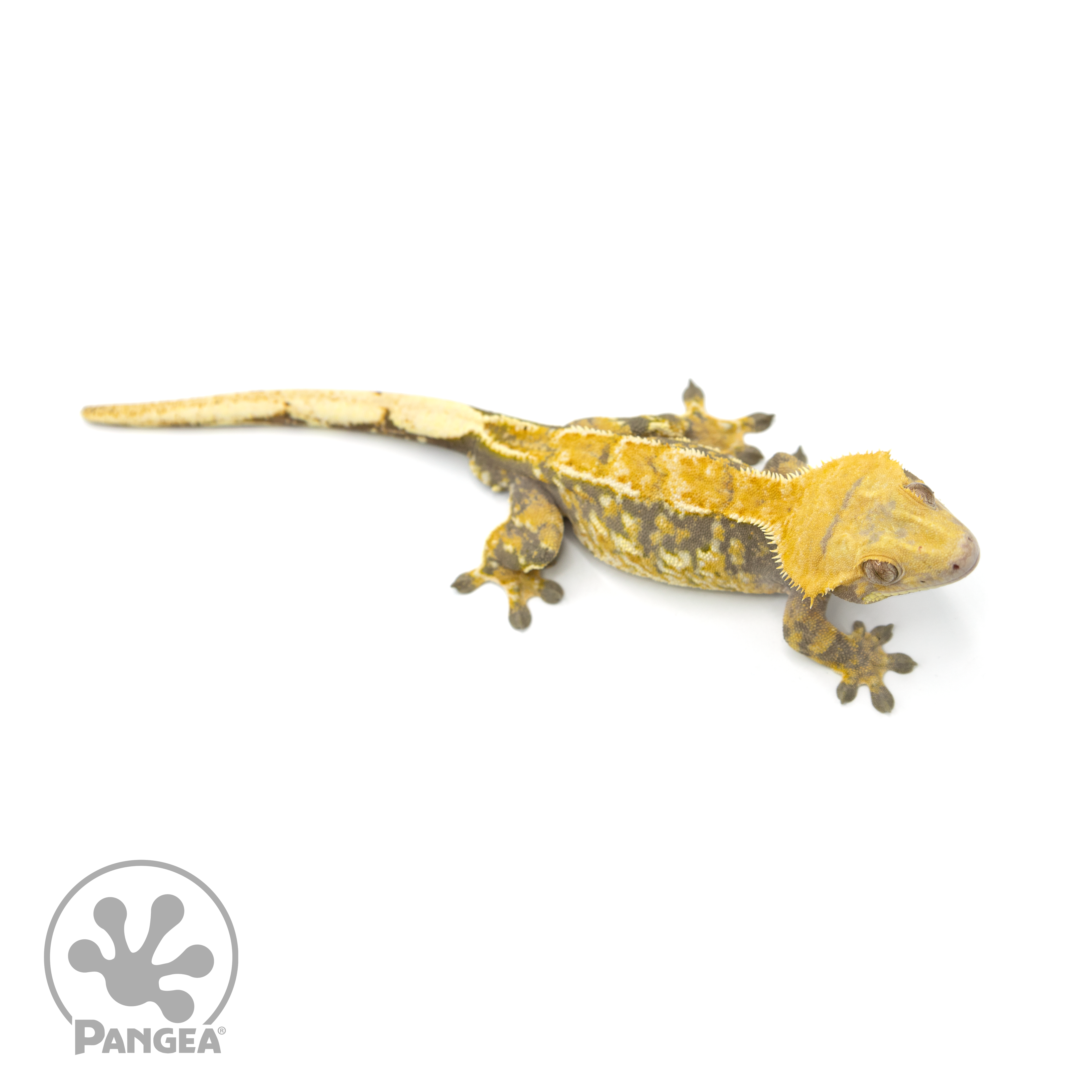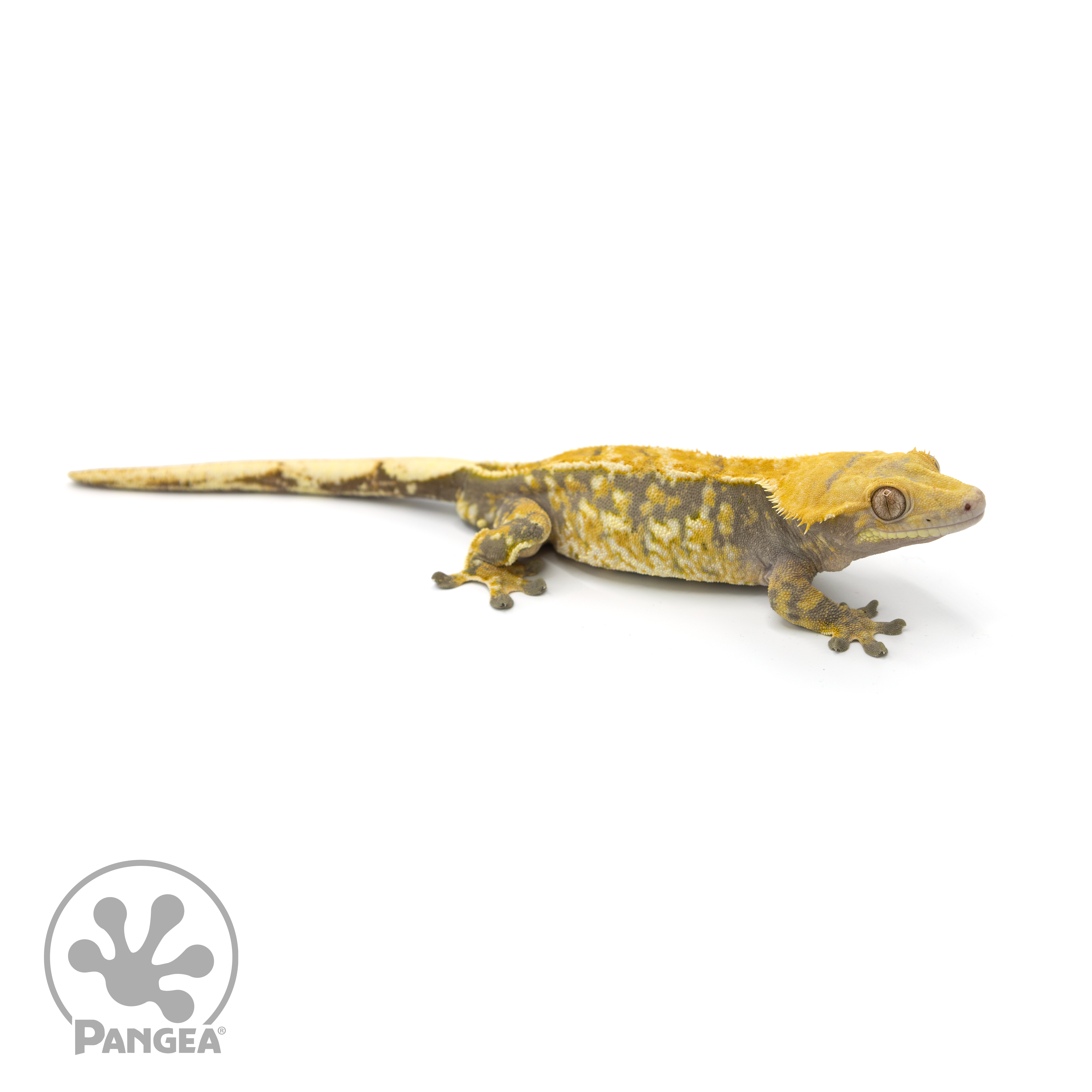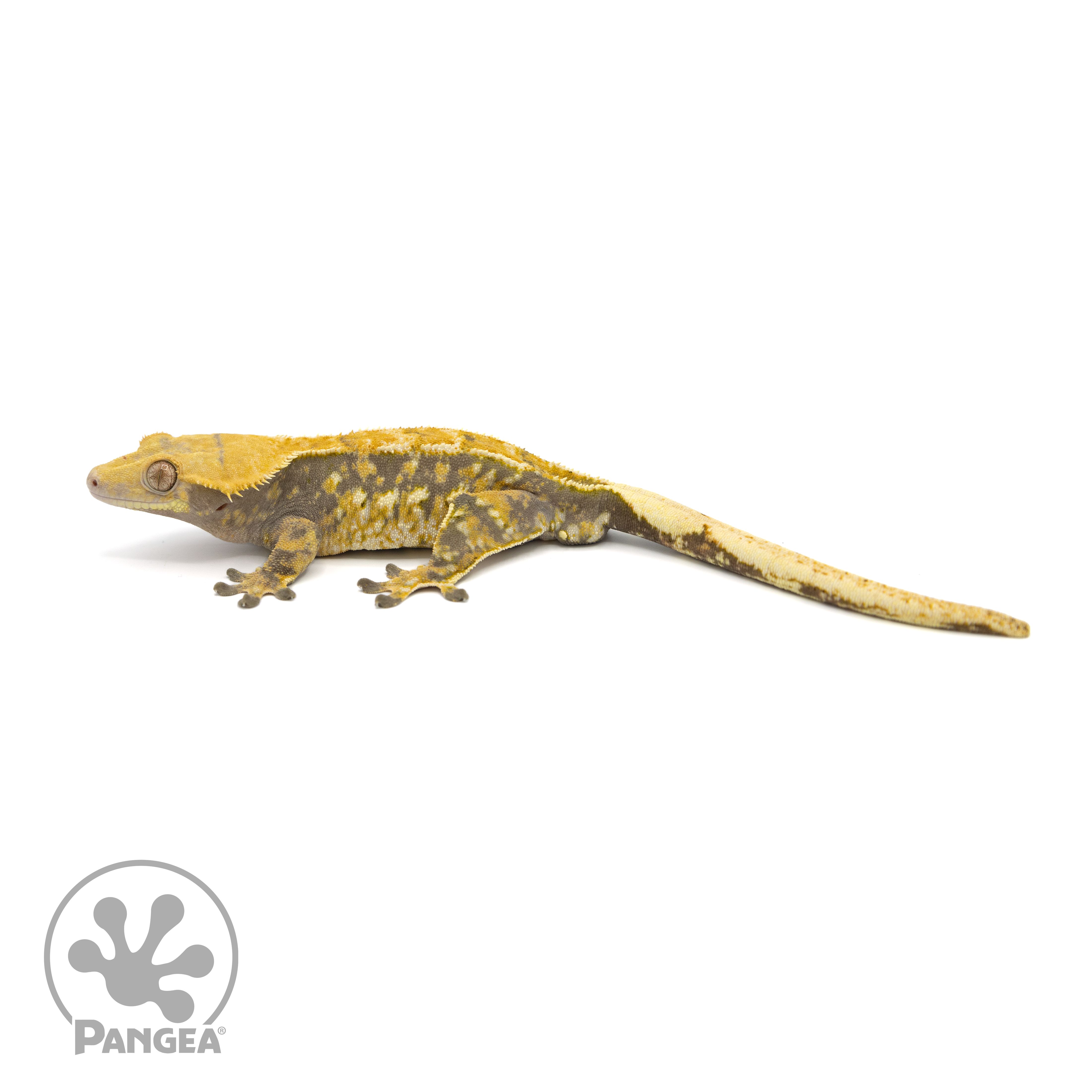 As a male Tricolor Extreme Harlequin Crested Gecko, this gecko boasts a stunning 3-color pattern made up of yellow and cream set upon a dark base giving way to his unique extreme harlequin pattern. His snowflake markings and readiness to breed makes him a top choice for any reptile enthusiast!
